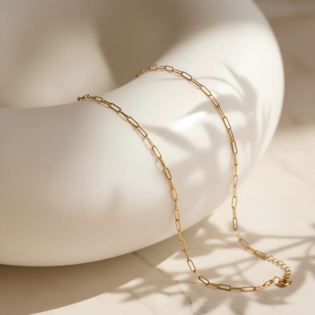 This Dainty Link Chain Necklace is a timeless and versatile accessory that adds a touch of elegance to any outfit. Featuring delicate interlocking links, this choker is crafted from high-quality gold, making it both durable and lightweight for comfortable, everyday wear.