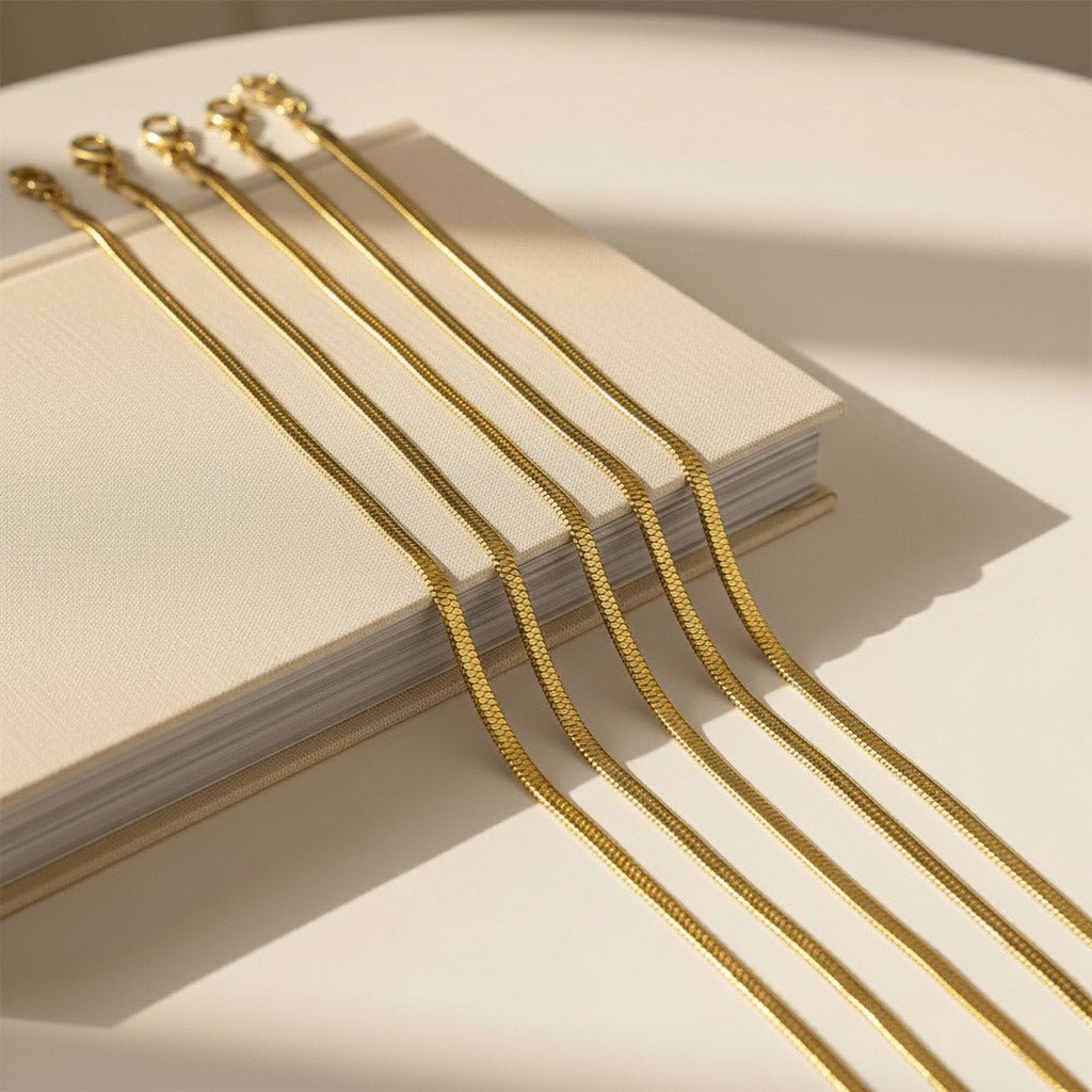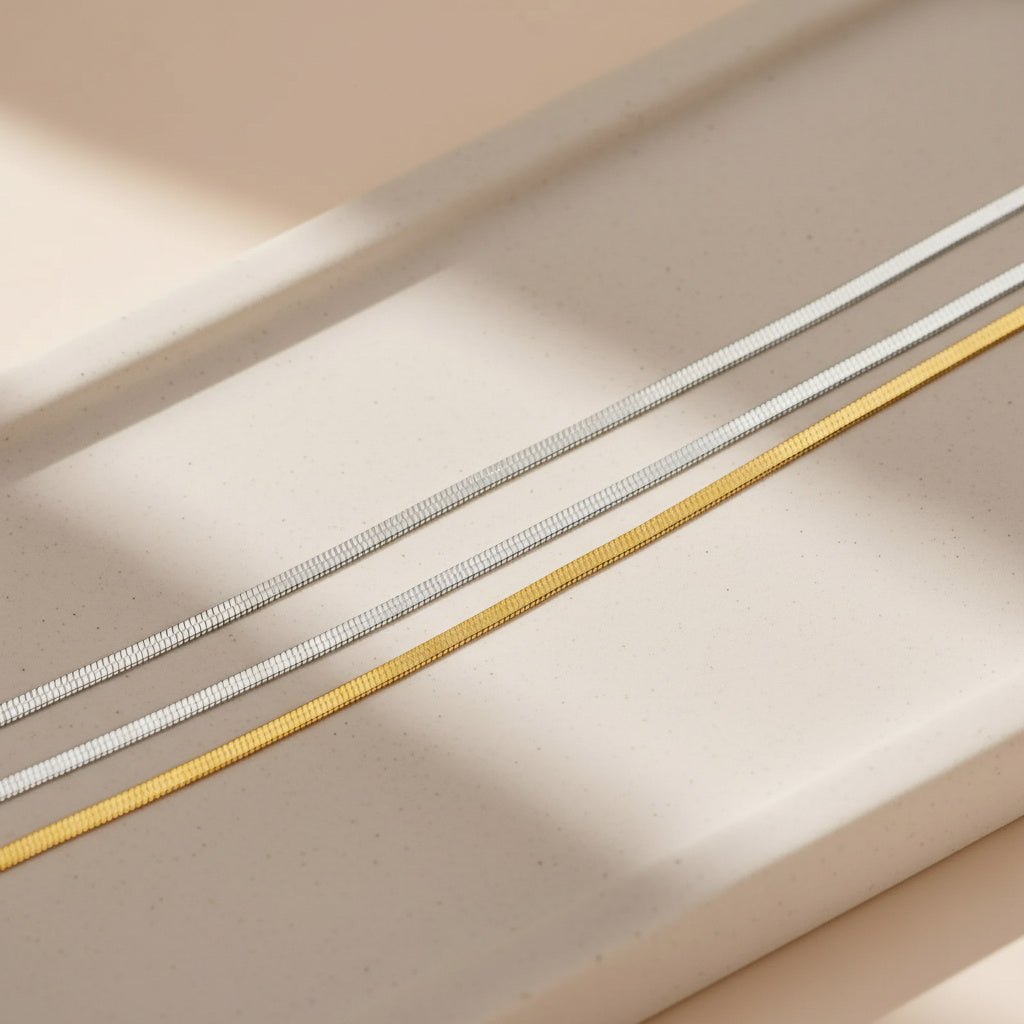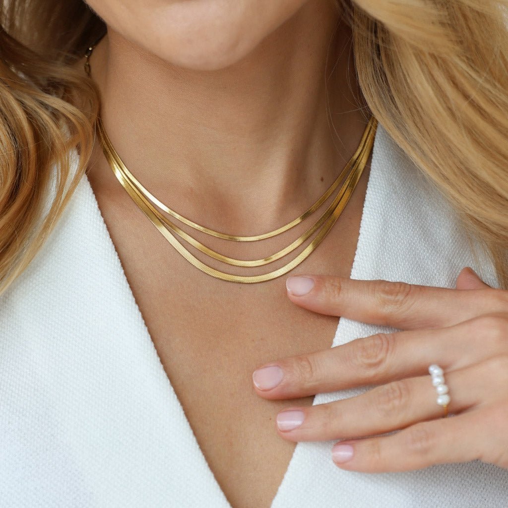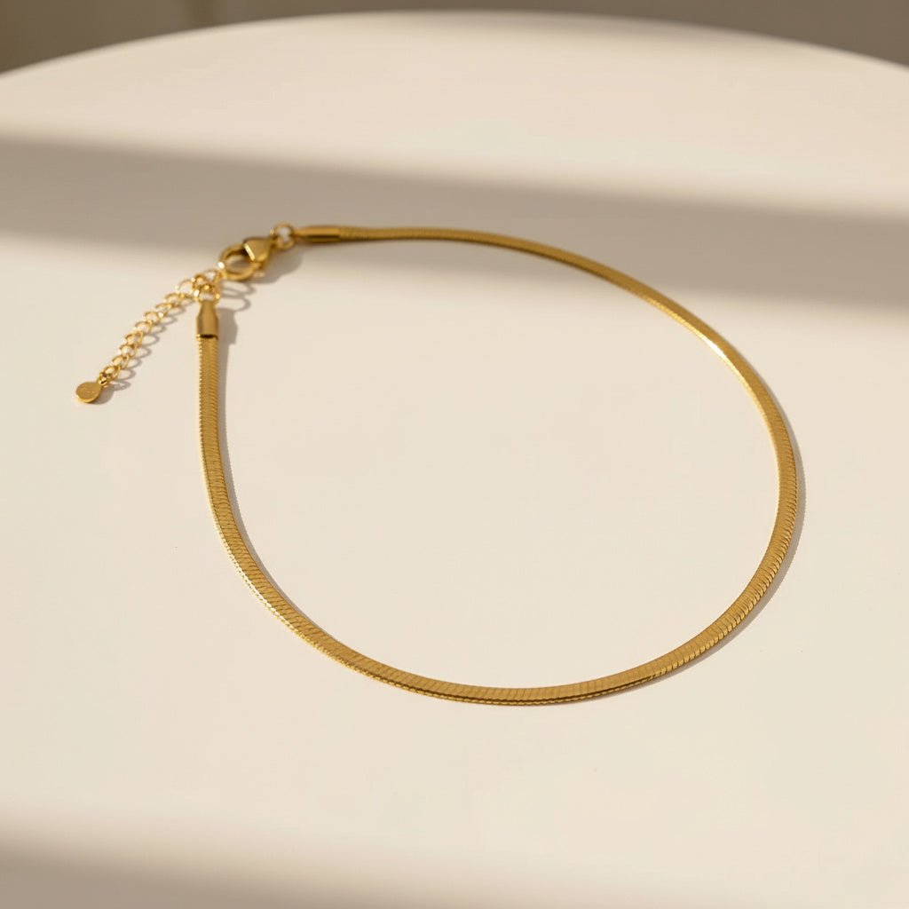 Our snake chain necklace Uka brings a sophisticated look to your neckline that capture the light and complement your skin tone along with a touch of texture. Perfect to wear your jewelry every day, everywhere, and stack with other necklaces.