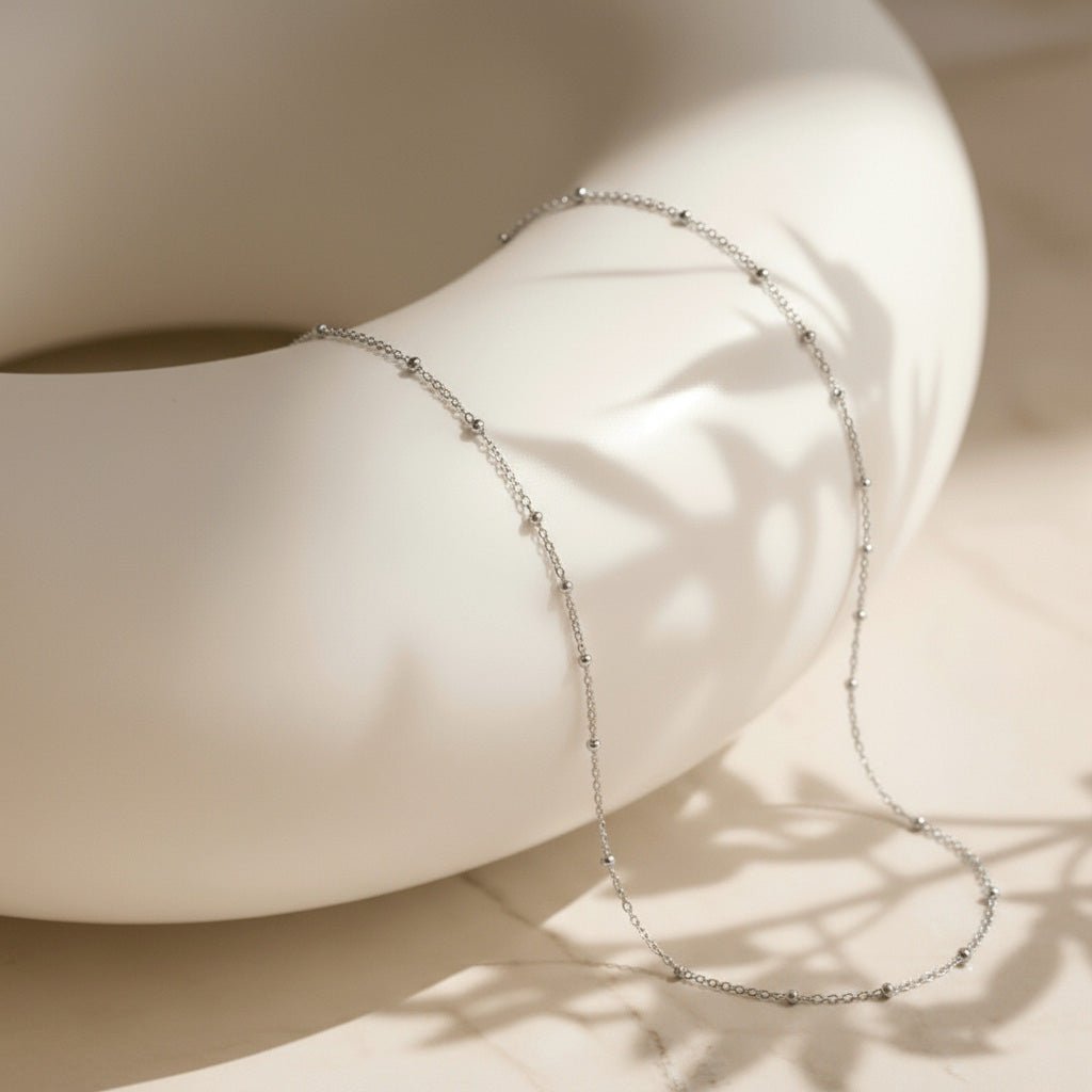 Make any outfit stand out! Our Tiny Dotted Chain offers at first glance look as if the simple chain, close-up, it’s clear that the choker is adorned with delicate dots for a unique design. A very special and minimalist chain to layer it perfectly with any other necklace.
