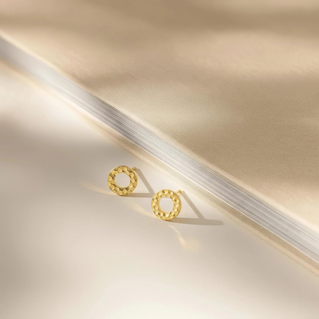 These Dainty Circle Stud Earrings offer a simple yet sophisticated touch to any look. Crafted from high-quality gold with a textured finish, the open circle design adds subtle elegance that is perfect for everyday wear. Their minimalist style makes them versatile, easy to pair with any outfit, whether casual or formal.