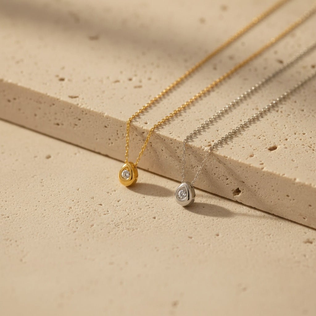 Embrace simplicity with our dainty single diamond necklace, available in gold and silver finishes. Featuring a petite diamond set in a delicate pendant, this elegant piece adds a touch of sparkle to any outfit. Perfect for layering or wearing alone, it’s a timeless accessory for any jewelry collection.