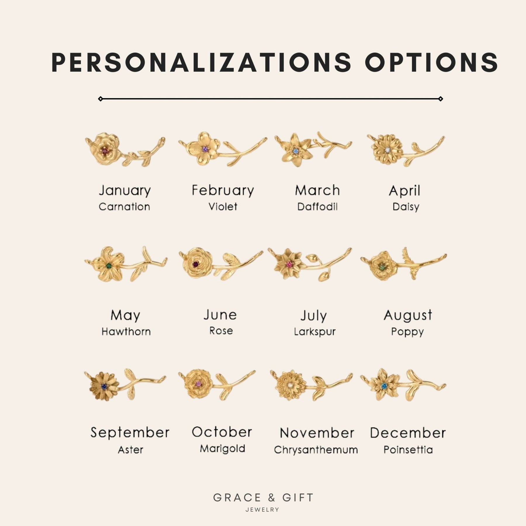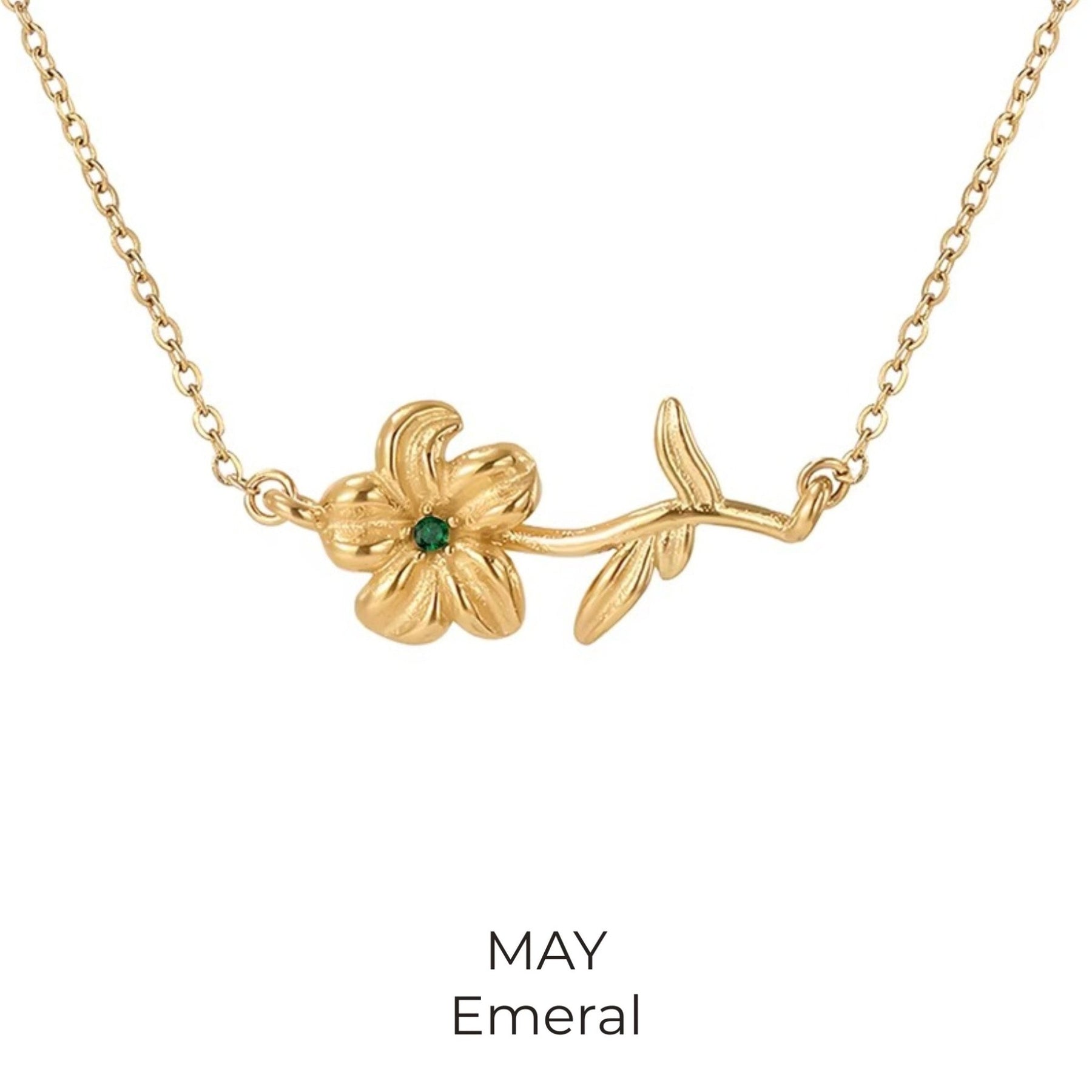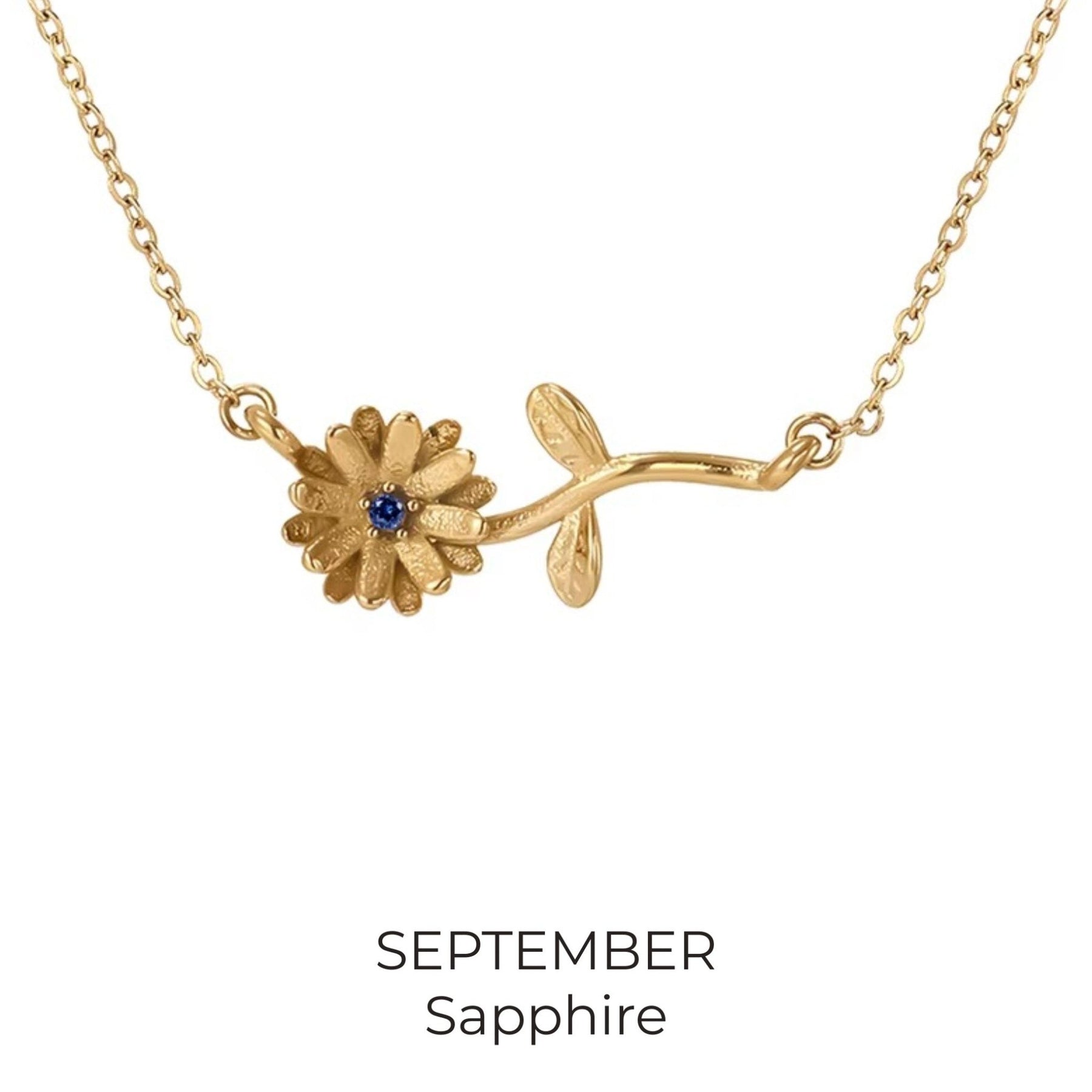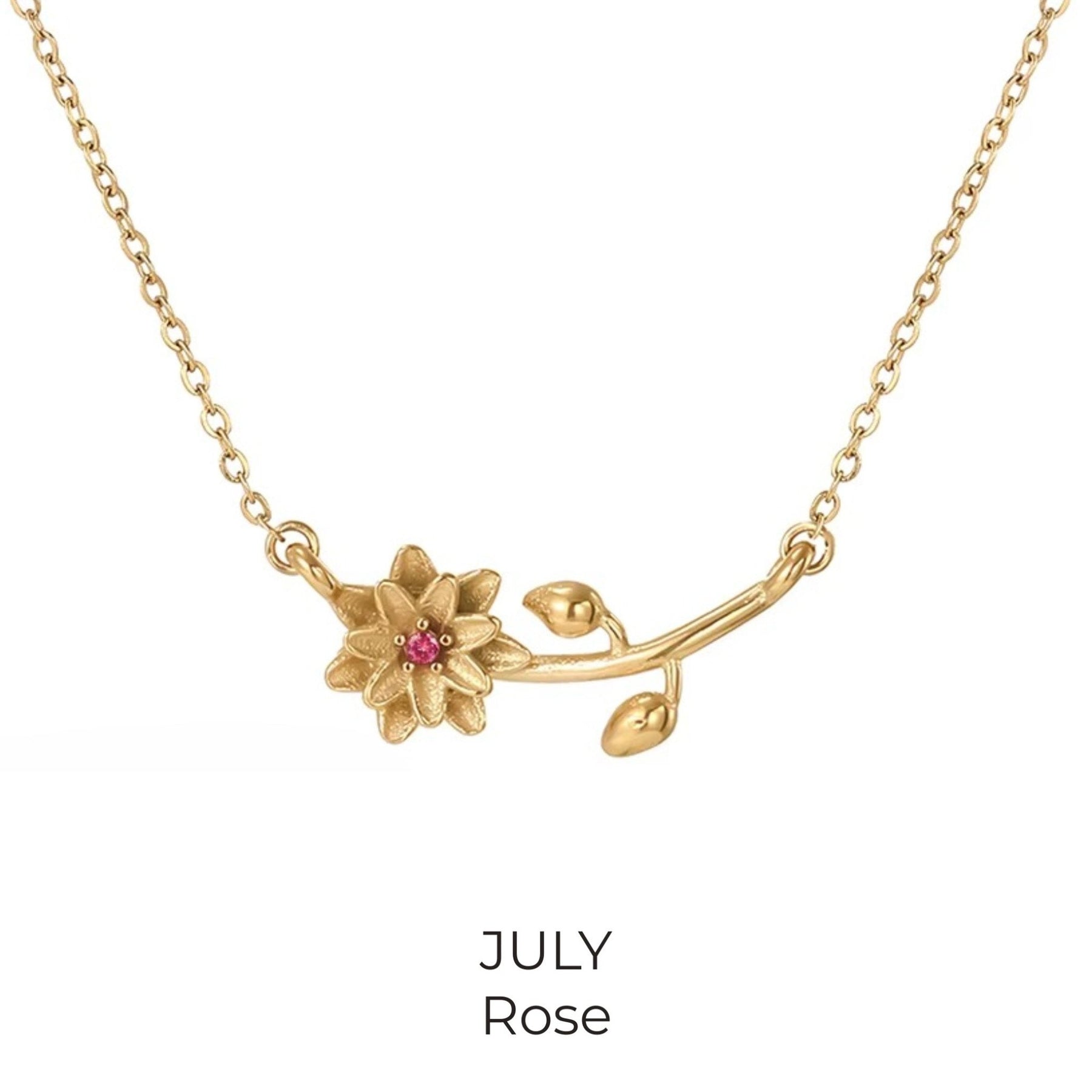 FLOWER NECKLACE WITH BIRTHSTONE ULA - Grace & Gift
