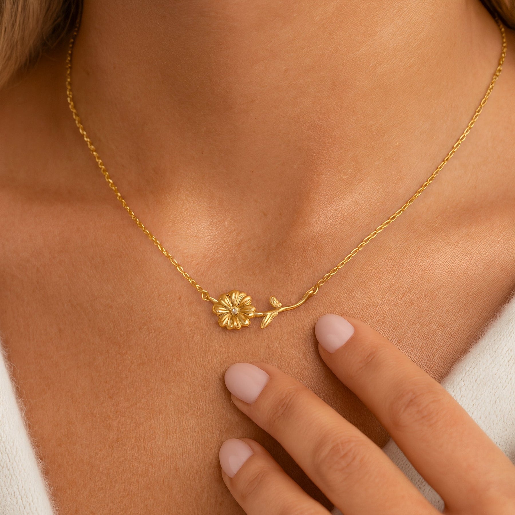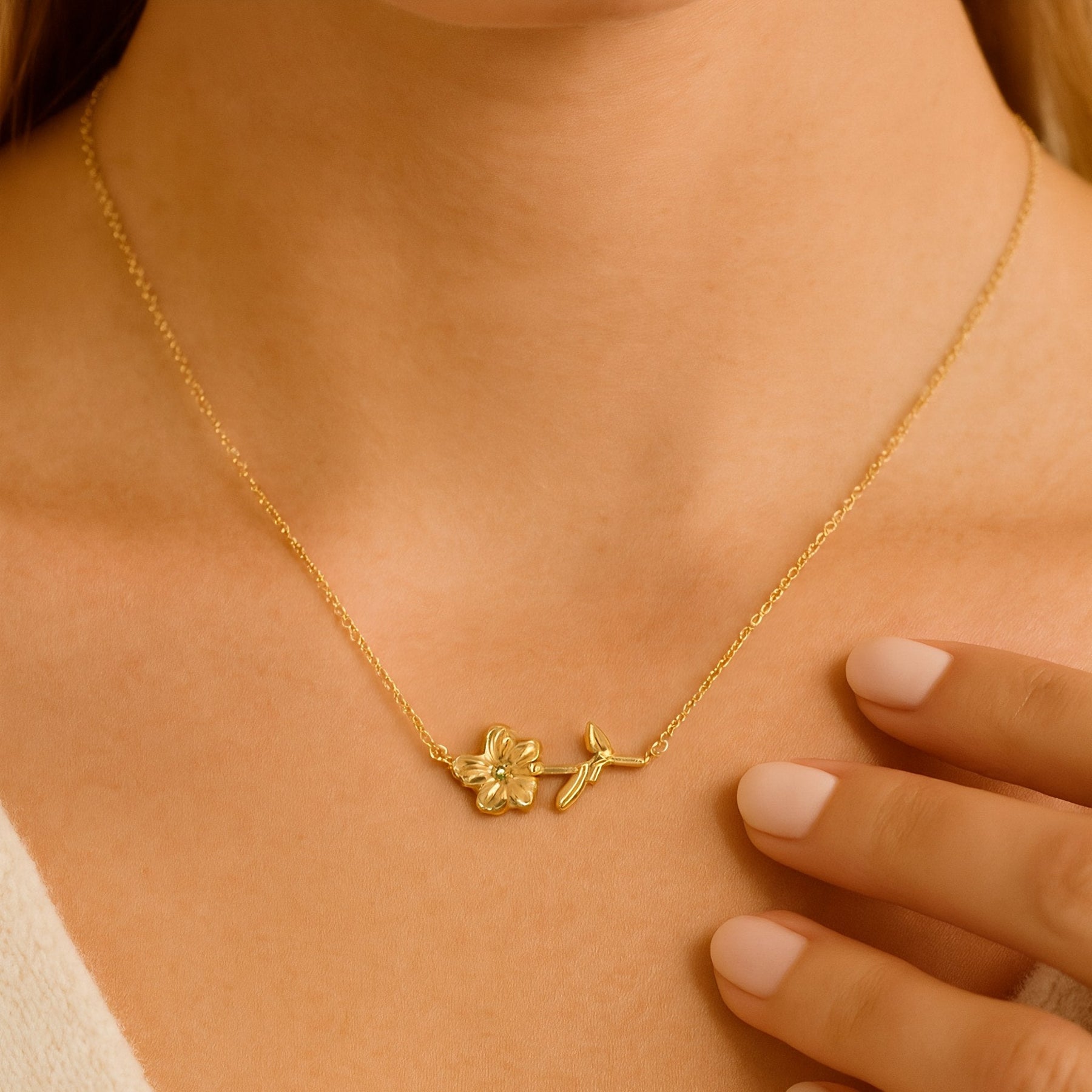 Celebrate life’s most meaningful moments with our Flower Necklace With Birthstone Ula, delicately crafted in shimmering gold and accented with a sparkling birthstone of your choice. This timeless piece captures the beauty of nature with its elegant floral design and makes the perfect personalized gift for birthdays, anniversaries, or special occasions.