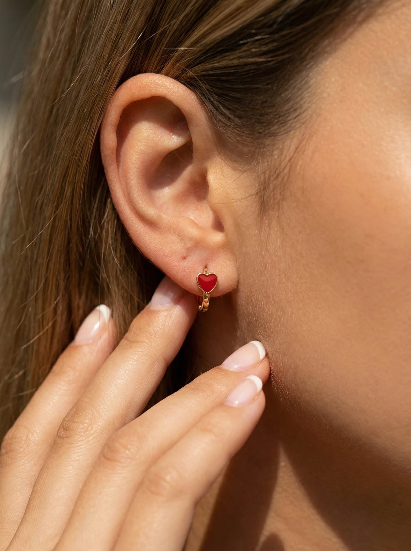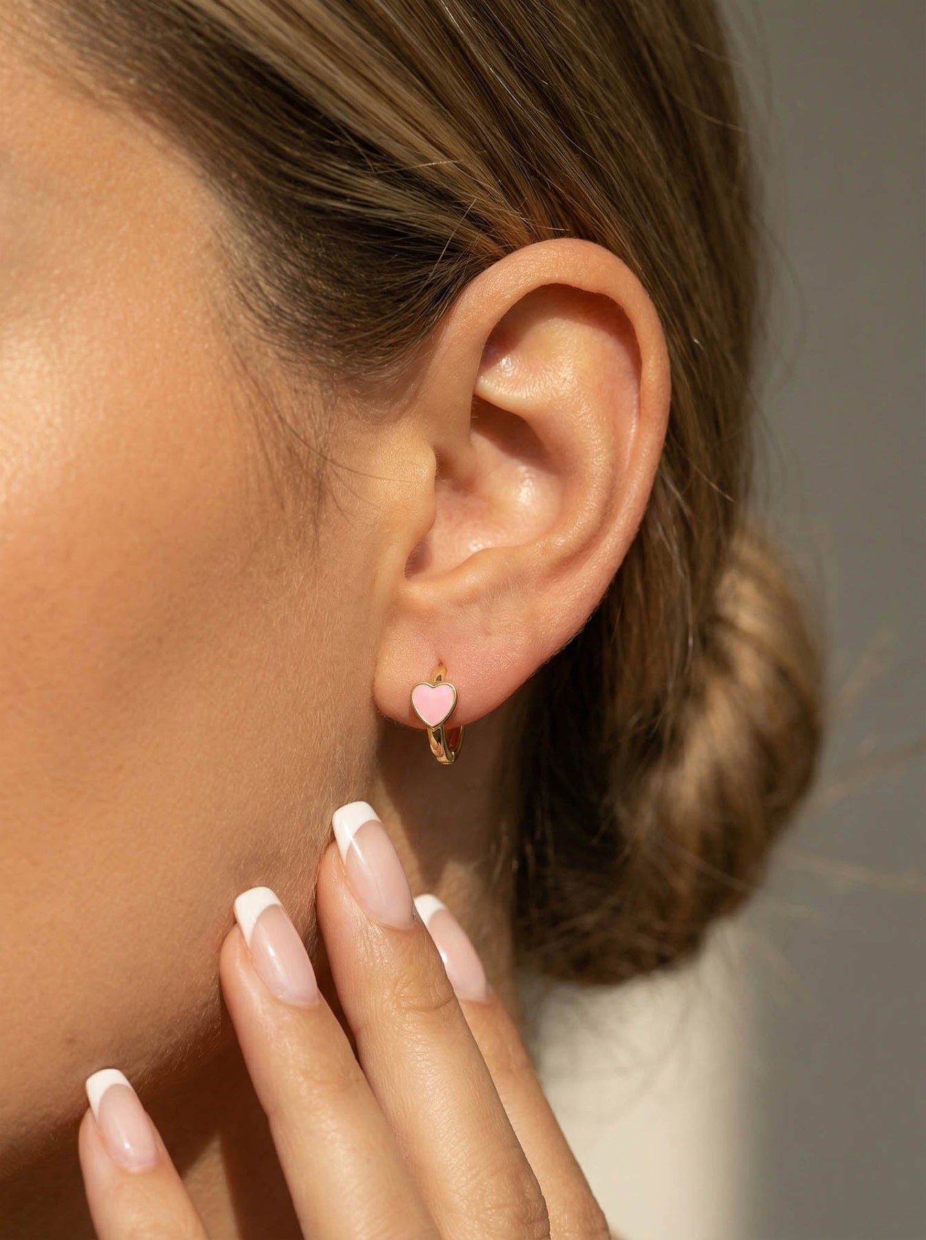 Add a sweet and stylish touch to your everyday look with these Charming Heart Hoop Earrings, crafted from premium 925 sterling silver and finished with a durable gold plating. Each hoop features a delicate enamel heart charm, creating a modern yet feminine accessory perfect for daily wear.