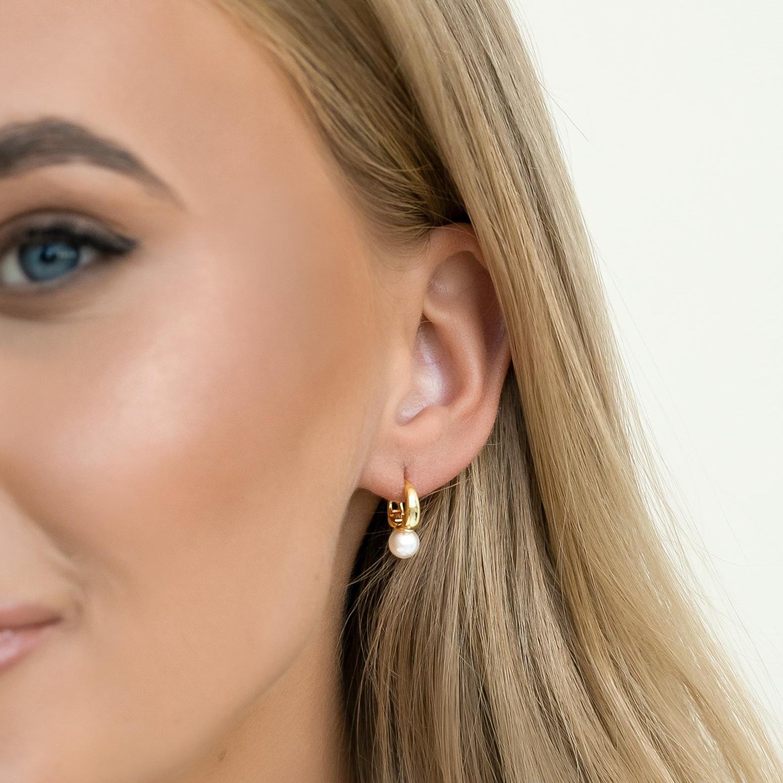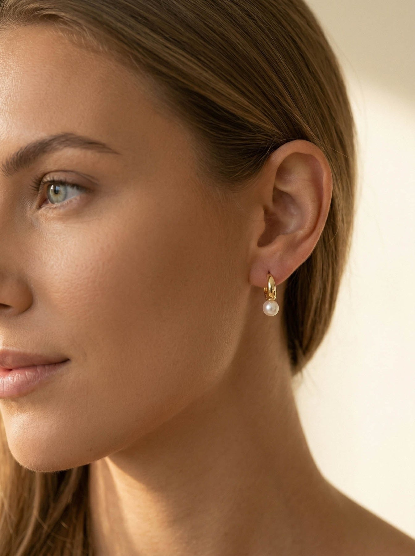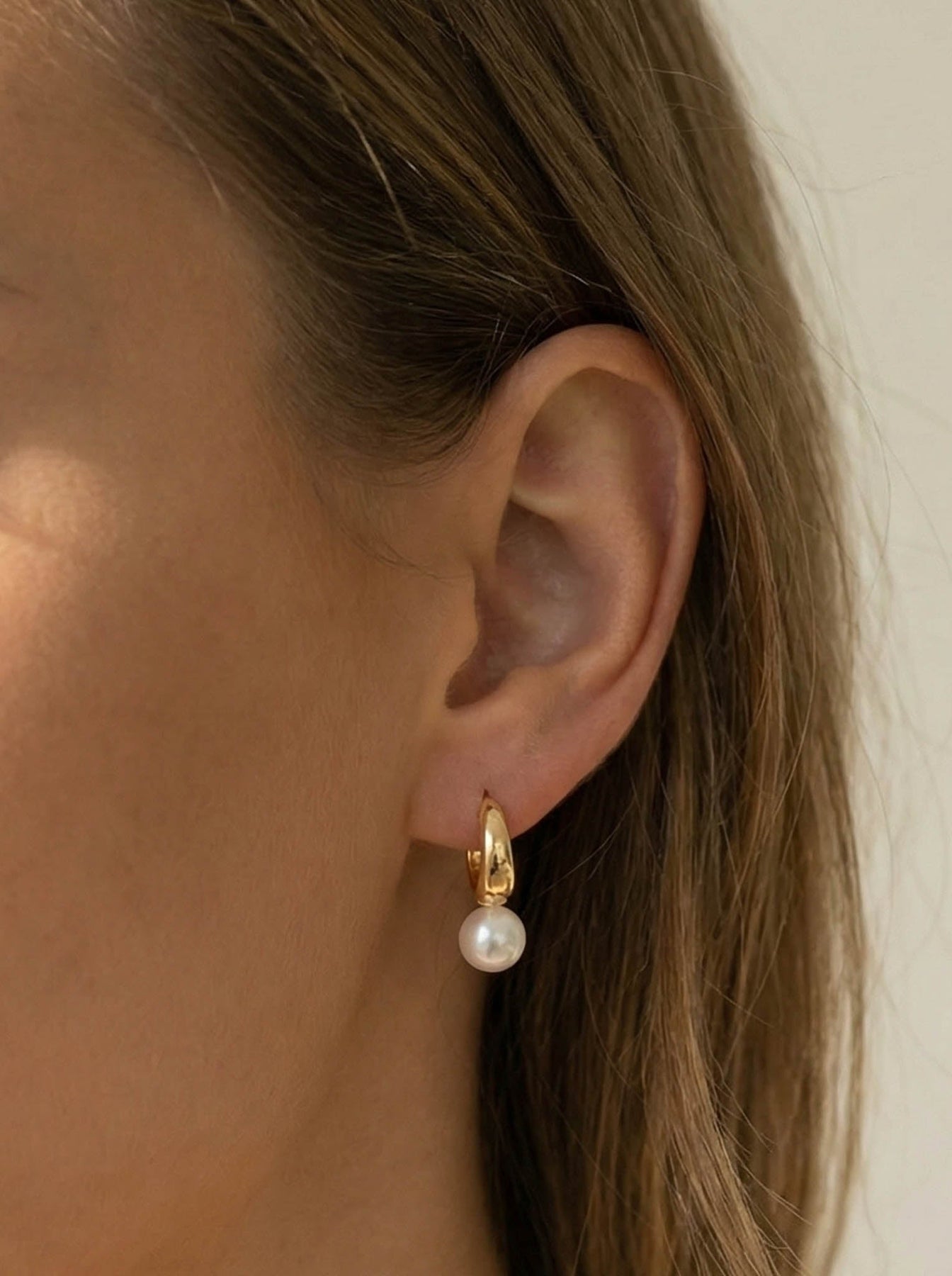 These Classic Freshwater Pearl Hoop Earrings are crafted from premium 925 sterling silver and finished with durable gold plating for a warm, elegant shine. Each hoop features a genuine freshwater pearl drop that adds timeless sophistication and effortless femininity. Lightweight, hypoallergenic, and comfortable for all-day wear, these earrings pair beautifully with both casual outfits and dressy occasions.