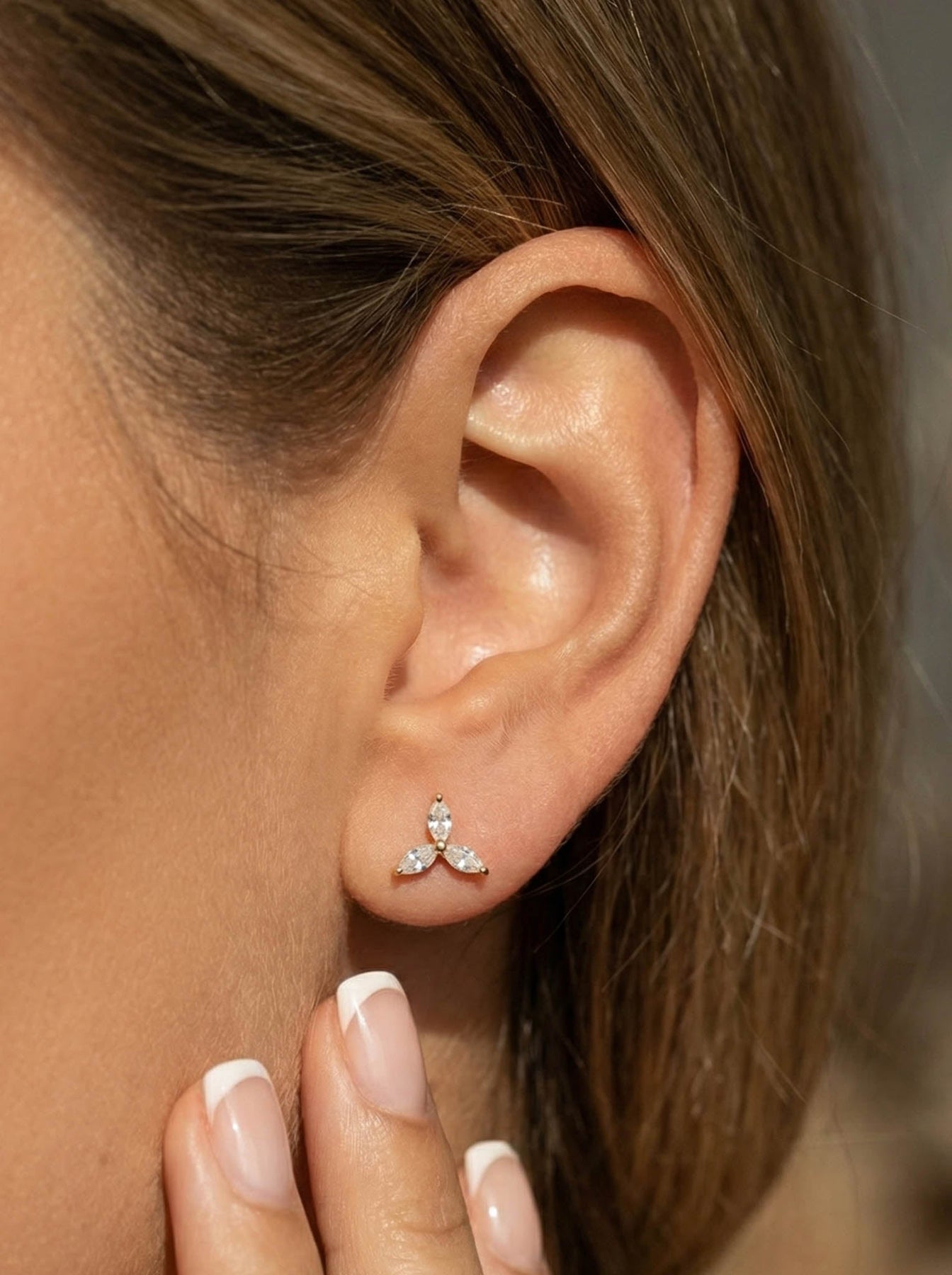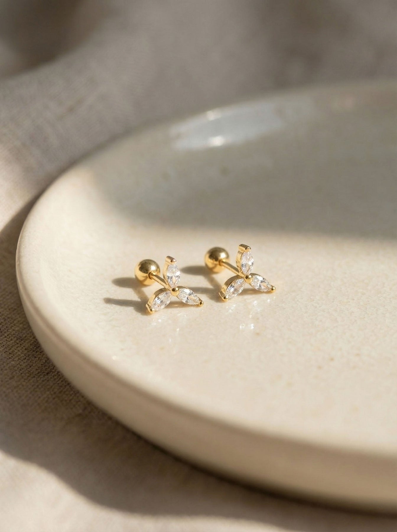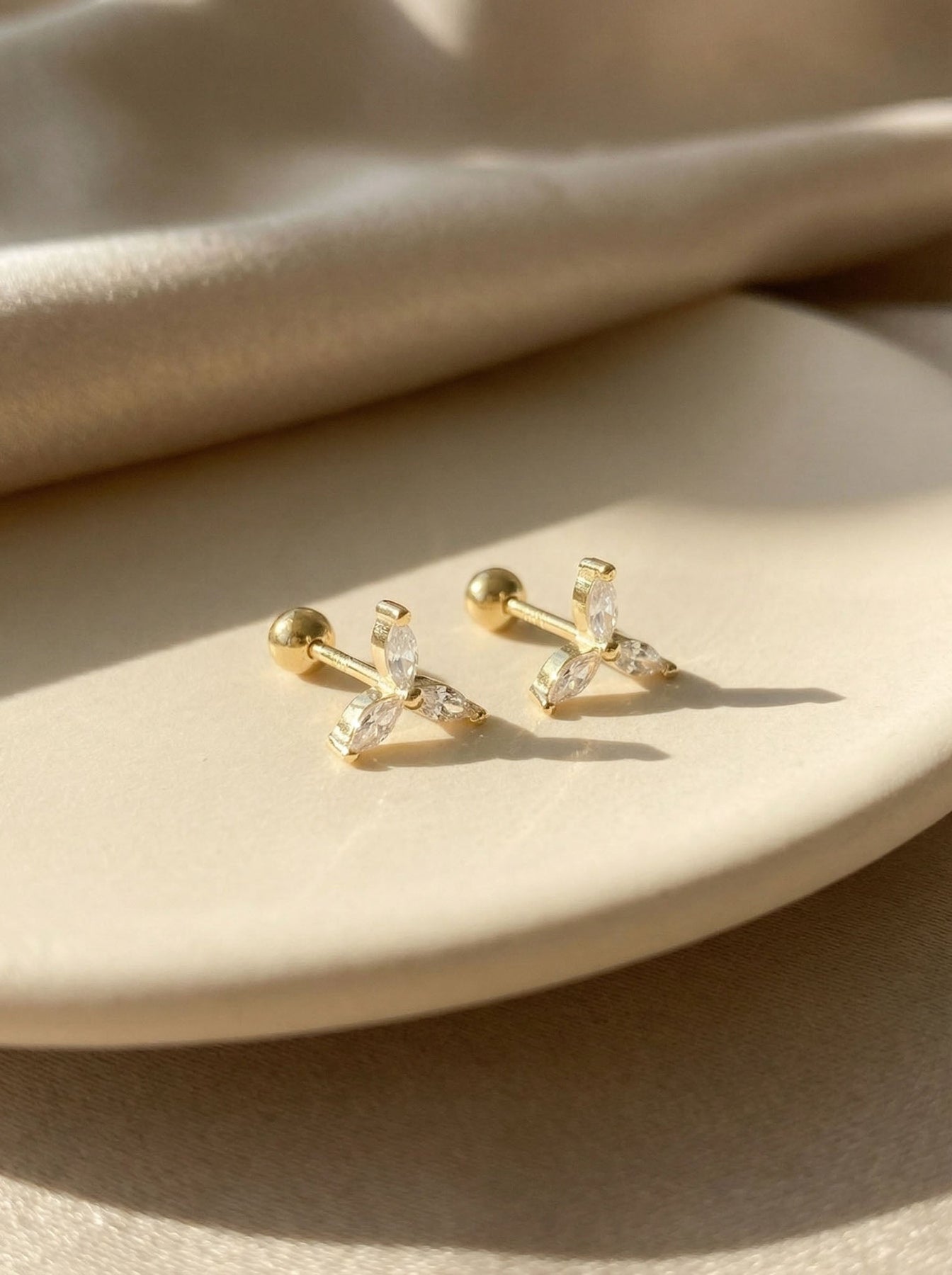 These Dainty Flower Earrings With Diamonds offer a delicate, feminine sparkle perfect for everyday elegance. Crafted from premium 925 sterling silver, each stud features three marquise-cut cubic zirconia stones arranged in a refined floral shape, creating a radiant and polished look.