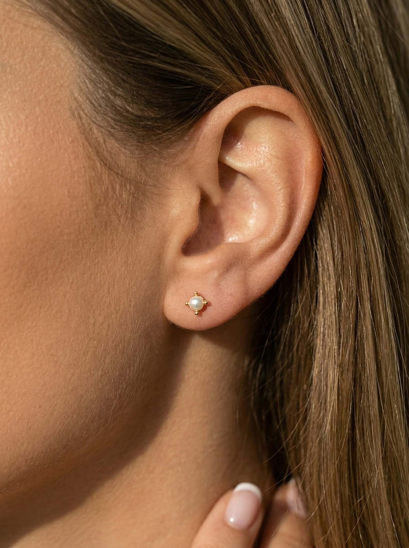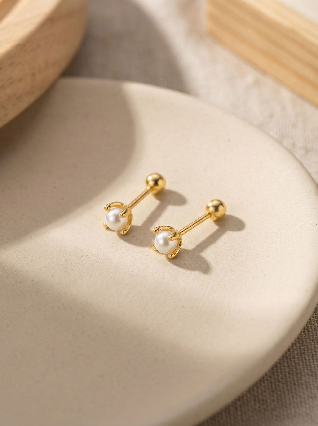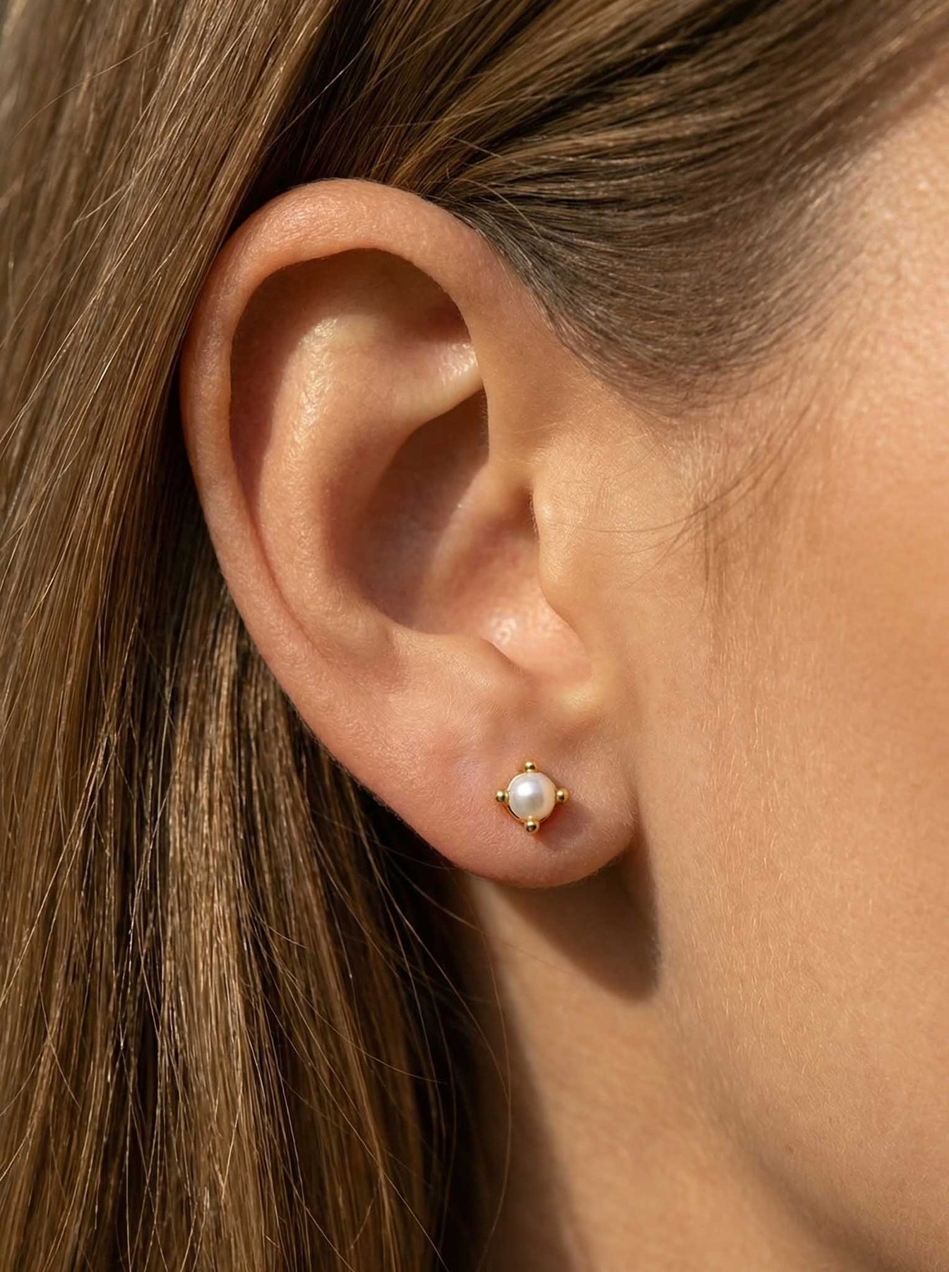 Add a touch of timeless elegance to your everyday look with these Dainty Pearl Stud Earrings, beautifully crafted from premium 925 sterling silver. Each earring features a delicate round freshwater pearl accented by tiny gold-plated bead details, creating a soft, minimalist design that complements any style.