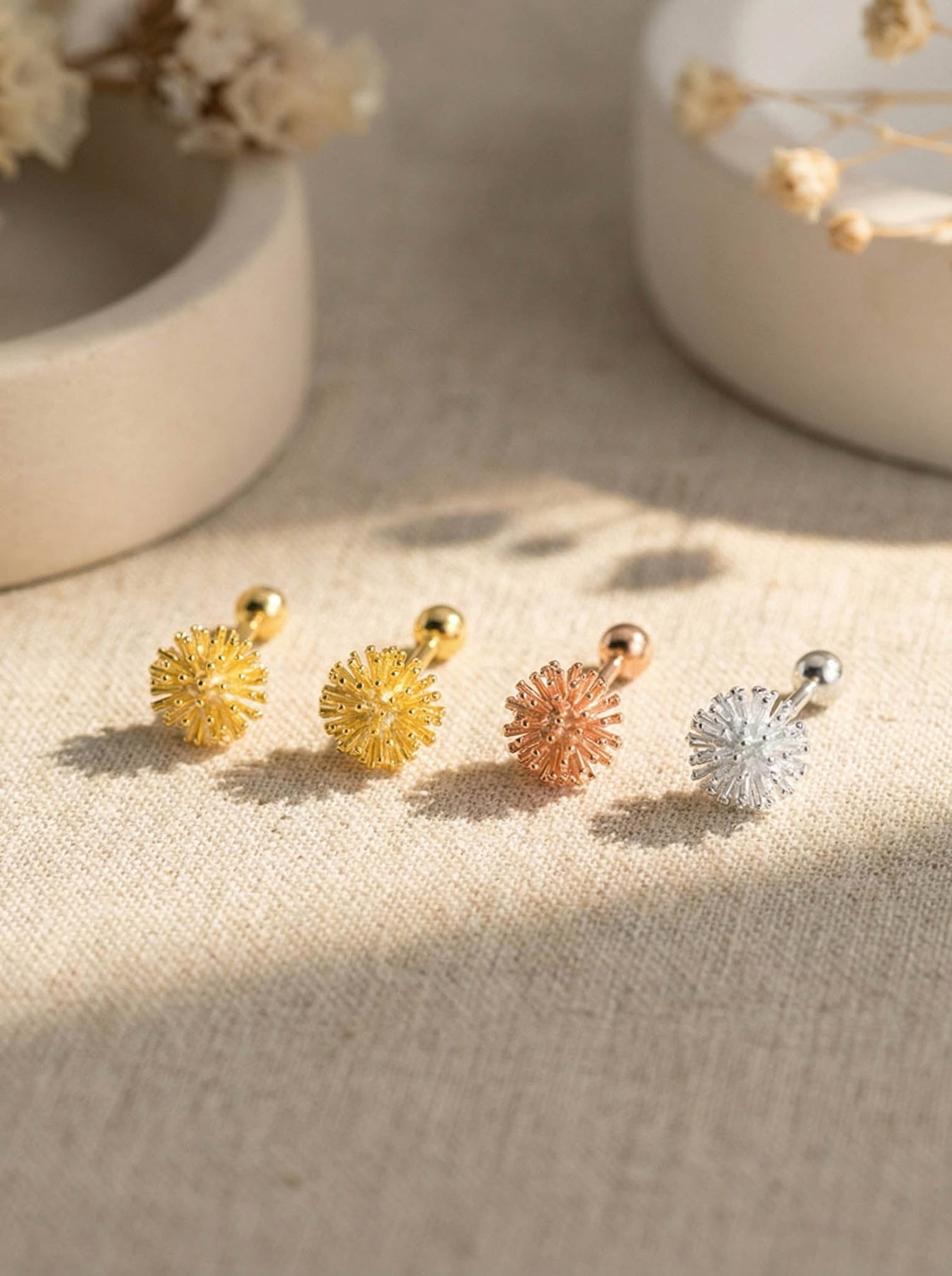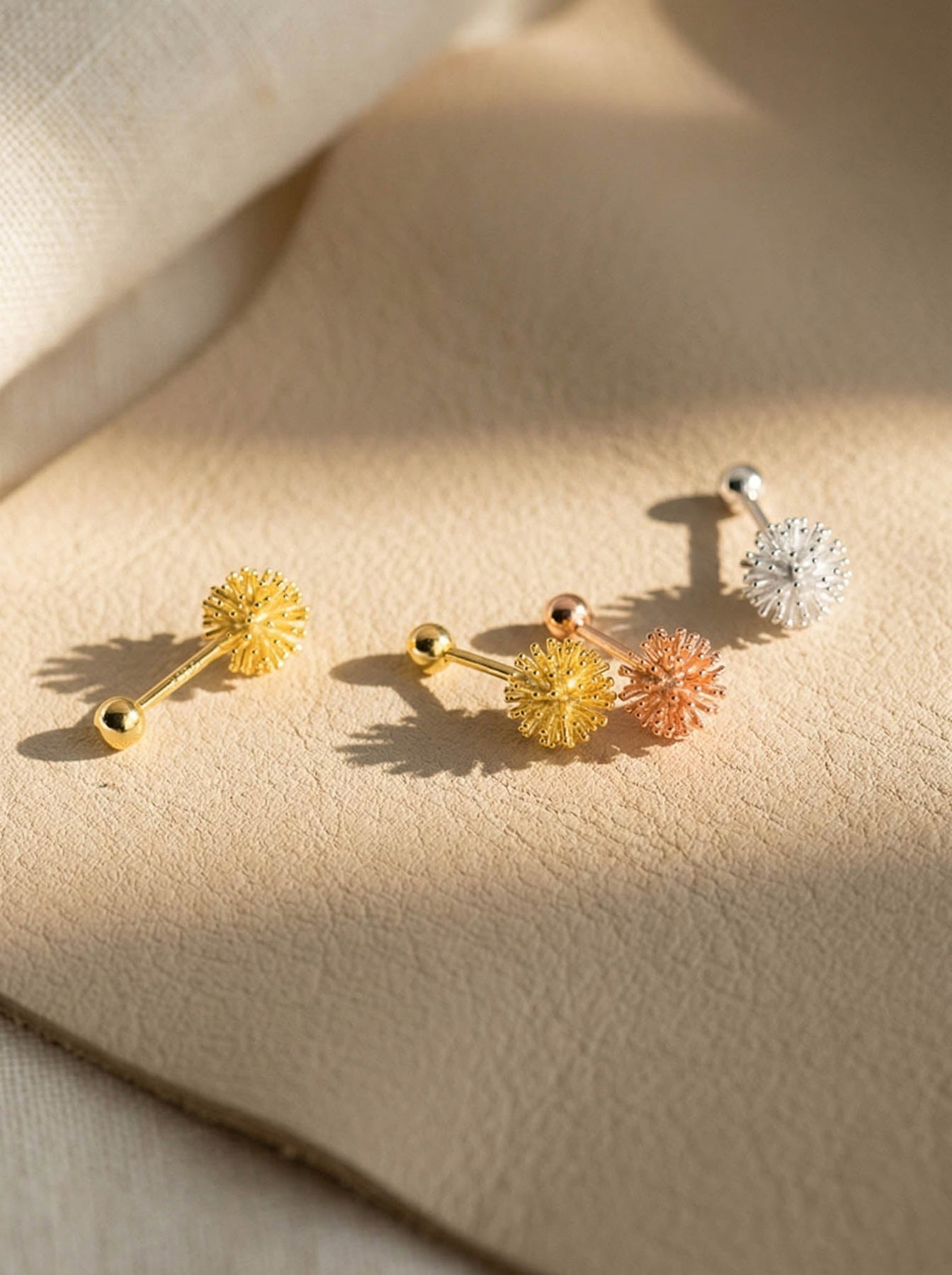 These Dandelion Screw Stud Earrings bring a touch of nature-inspired elegance to your everyday style. Crafted from premium 925 sterling silver and finished with durable gold plating, each stud features a beautifully detailed dandelion flower design that symbolizes hope, wishes, and new beginnings.