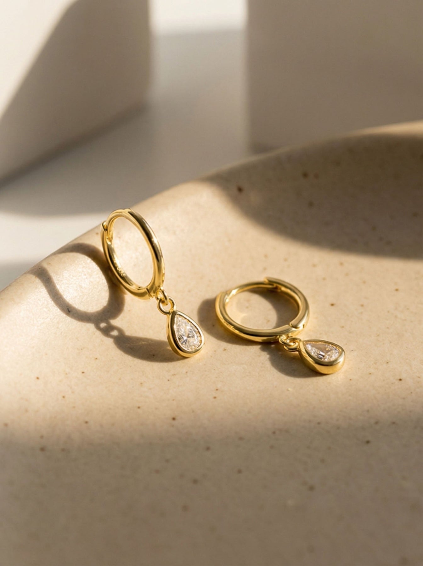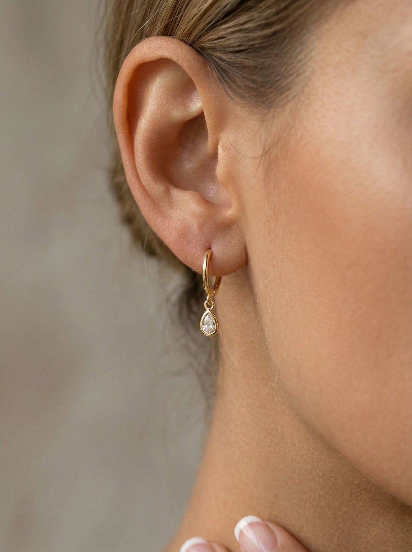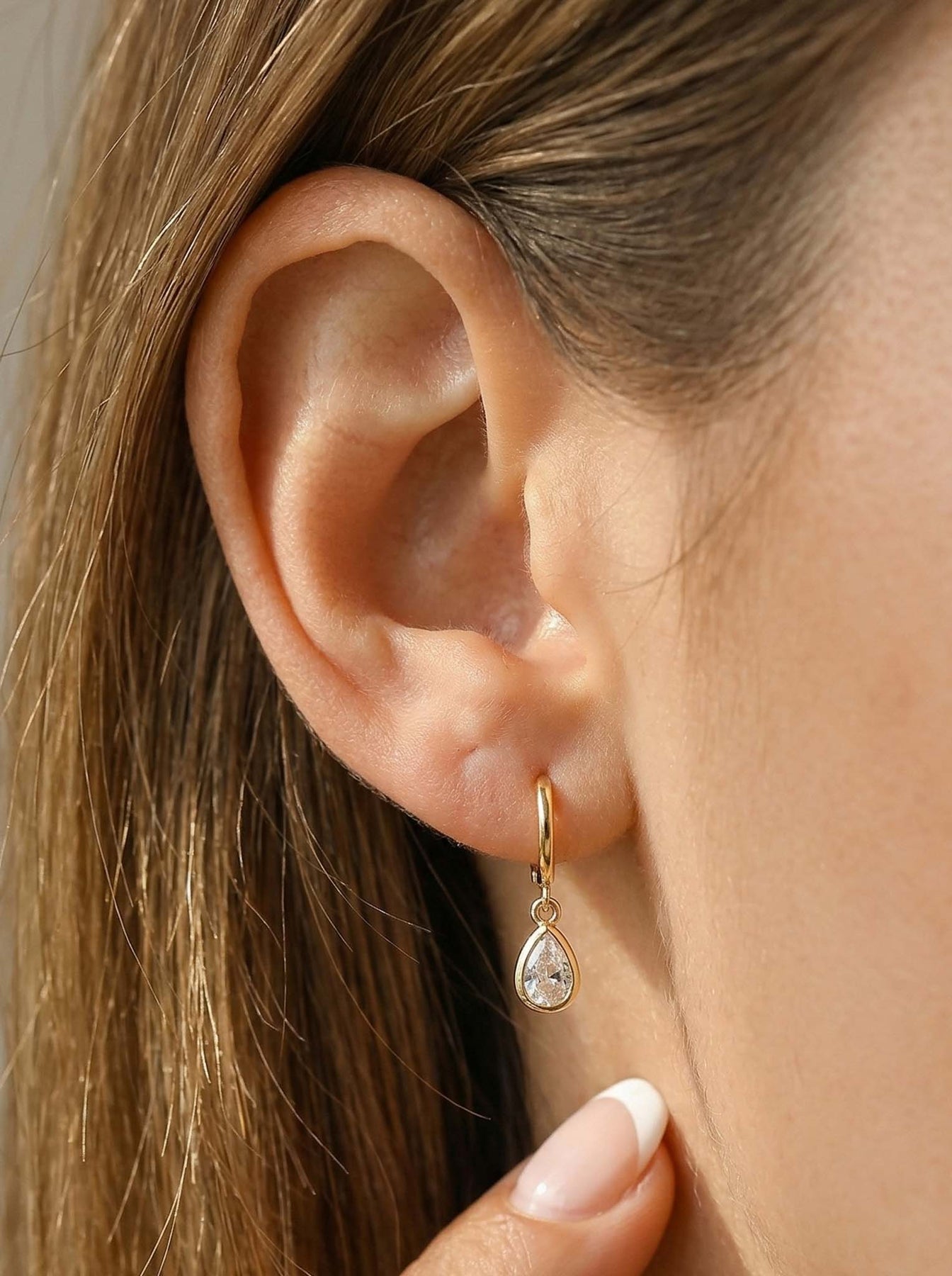 These elegant Dangling Hoop Earrings feature a minimalist gold-plated hoop paired with a sparkling teardrop-cut crystal that catches the light beautifully with every movement. Crafted from high-quality 925 sterling silver, these lightweight earrings offer a timeless and refined look perfect for everyday wear or special occasions.