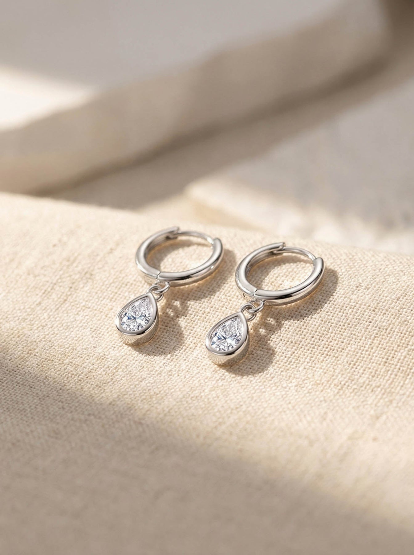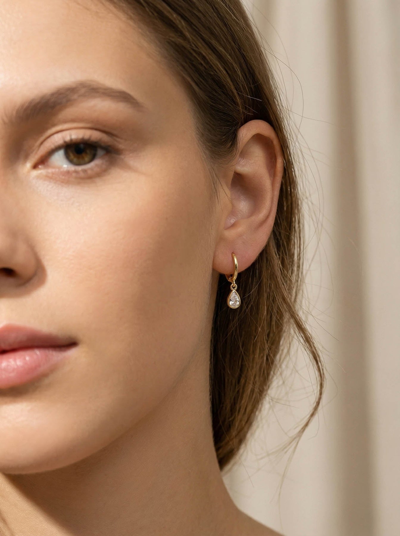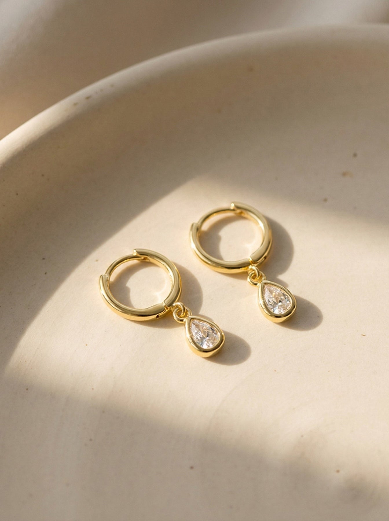 These elegant Dangling Hoop Earrings feature a minimalist gold-plated hoop paired with a sparkling teardrop-cut crystal that catches the light beautifully with every movement. Crafted from high-quality 925 sterling silver, these lightweight earrings offer a timeless and refined look perfect for everyday wear or special occasions.