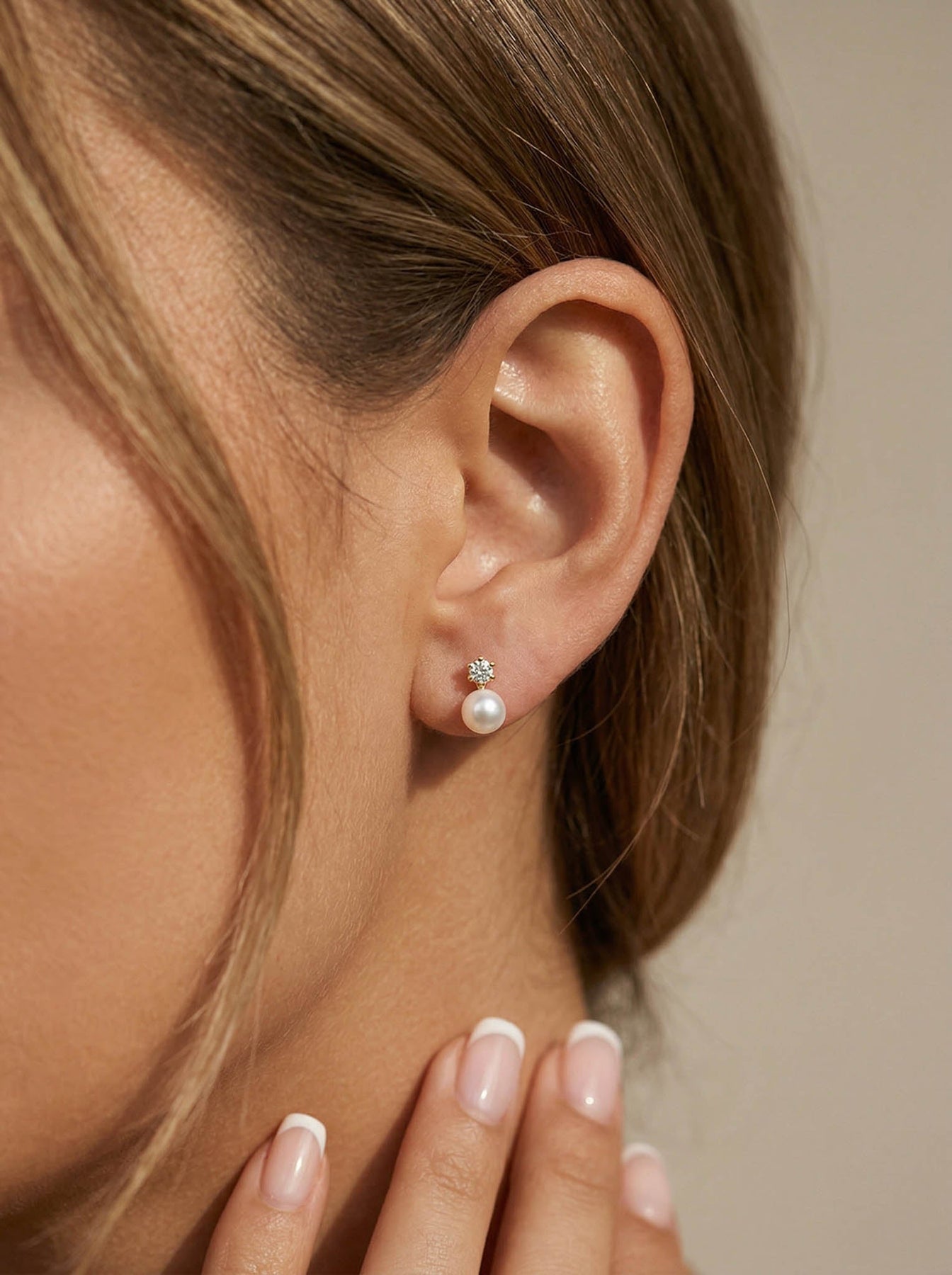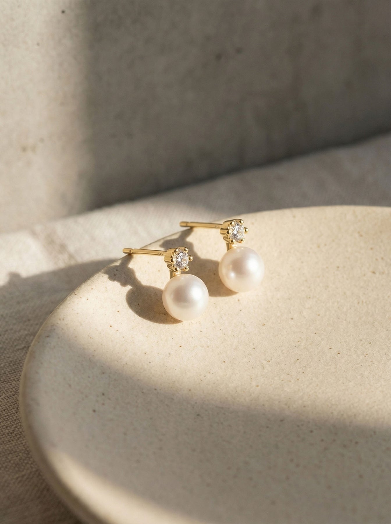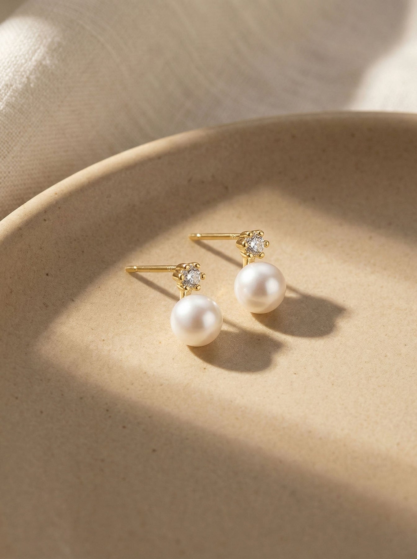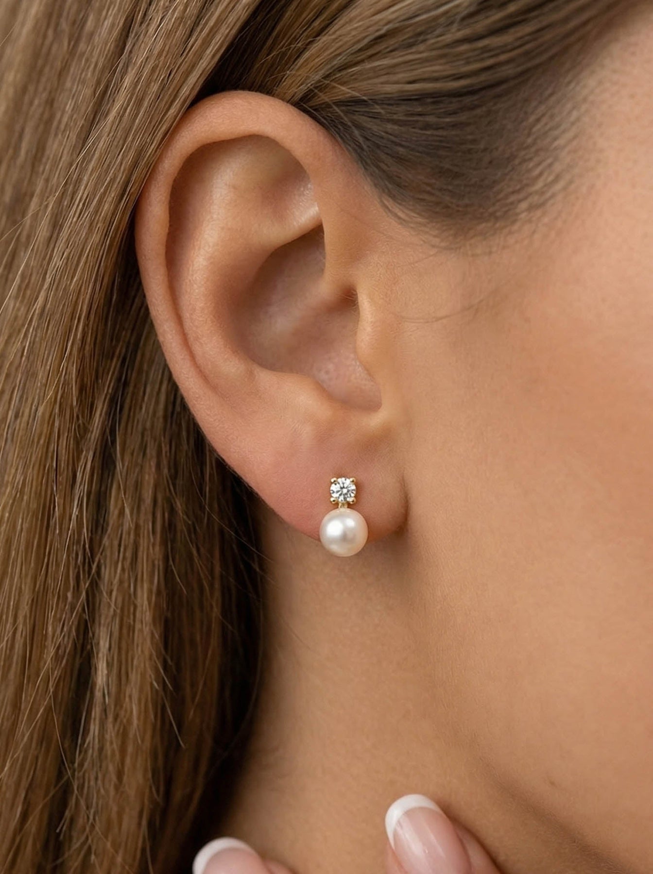 These Diamond Pearl Drop Earrings combine timeless elegance with modern minimalism. Crafted from 925 sterling silver and luxuriously gold-plated, each earring features a sparkling cubic zirconia stone paired with a lustrous freshwater pearl that gently dangles below.