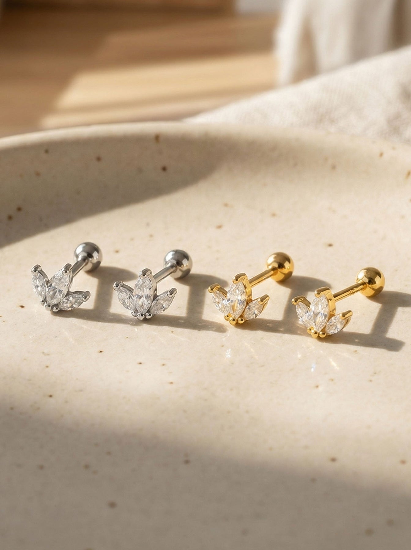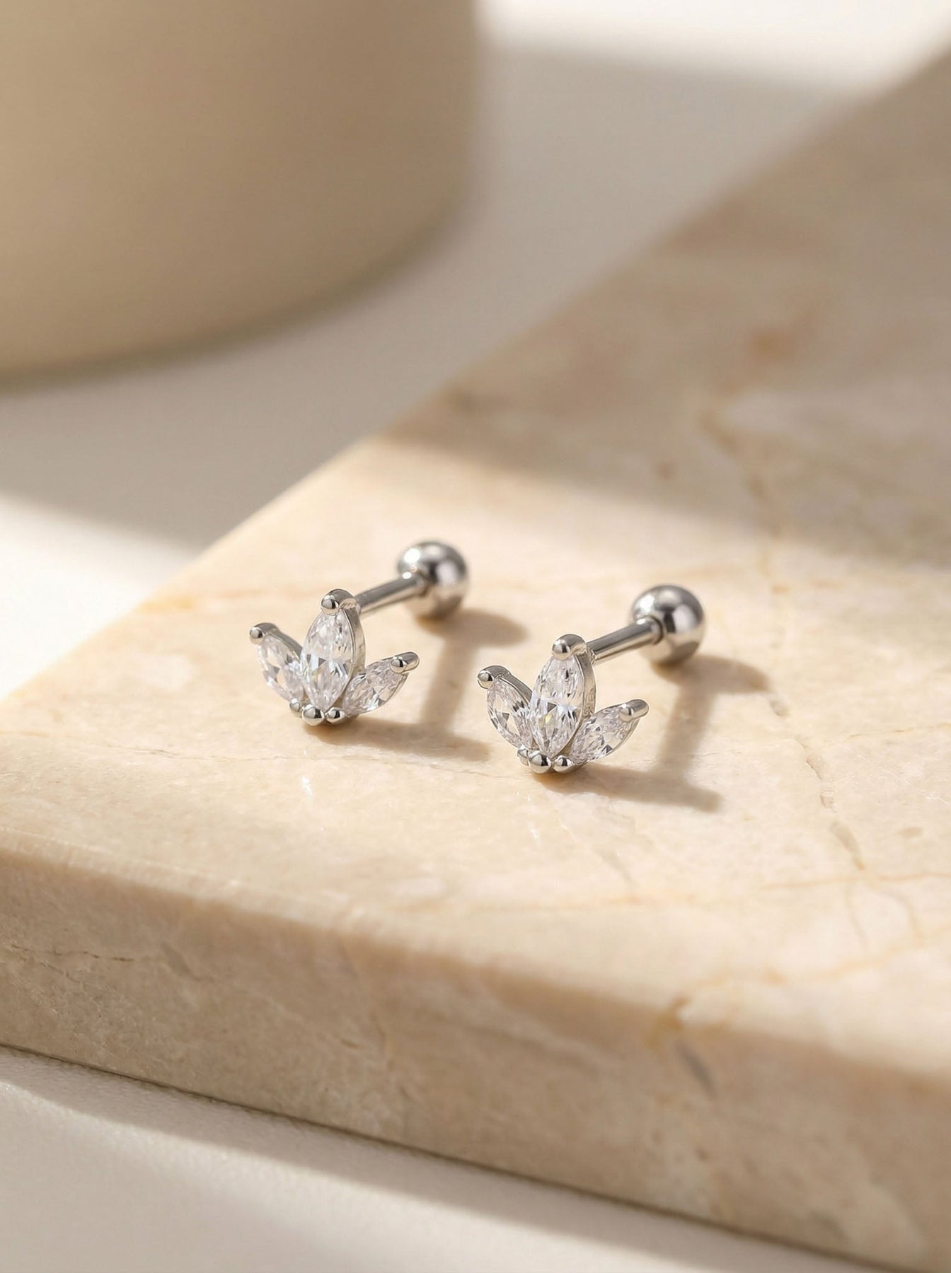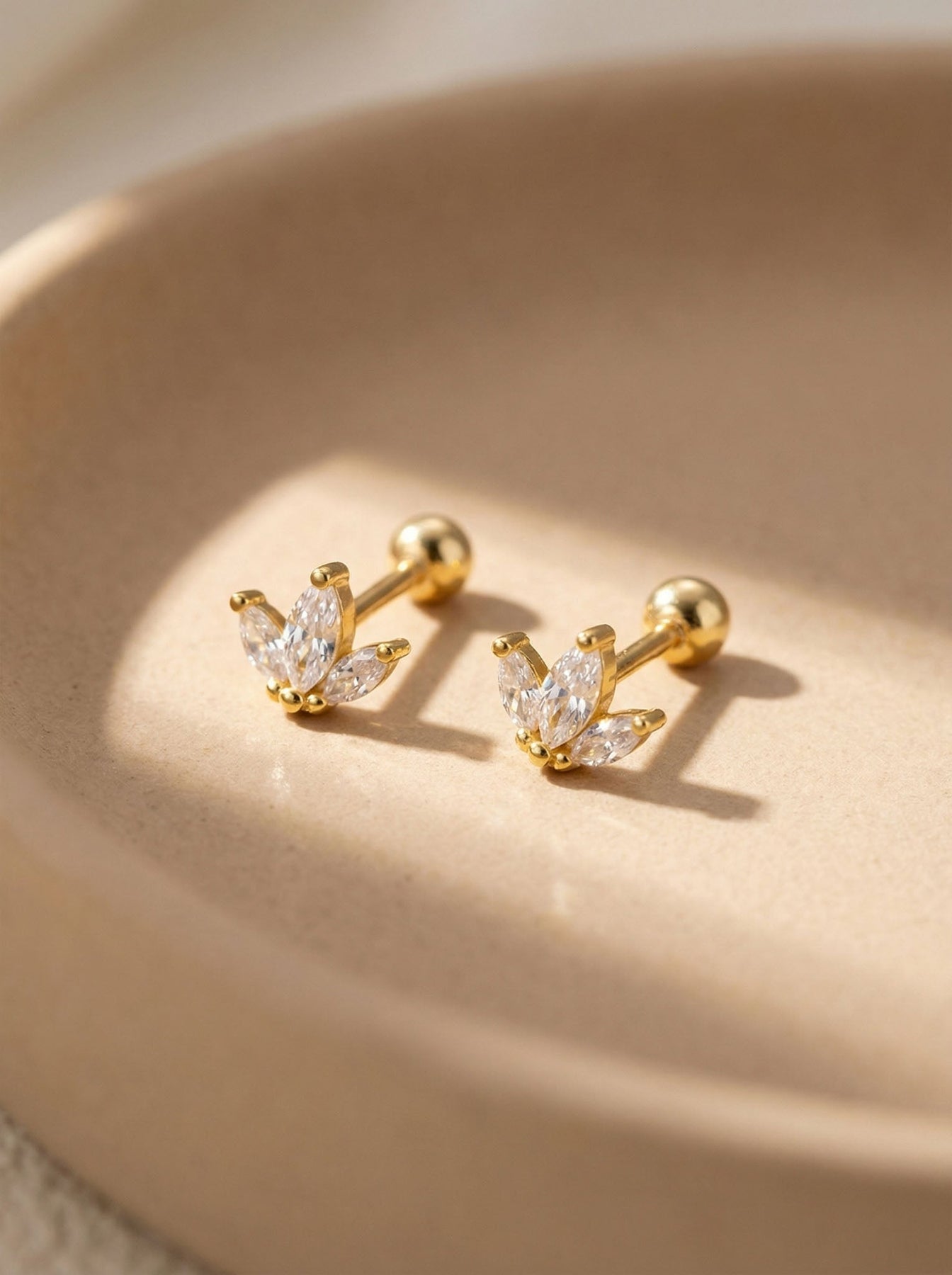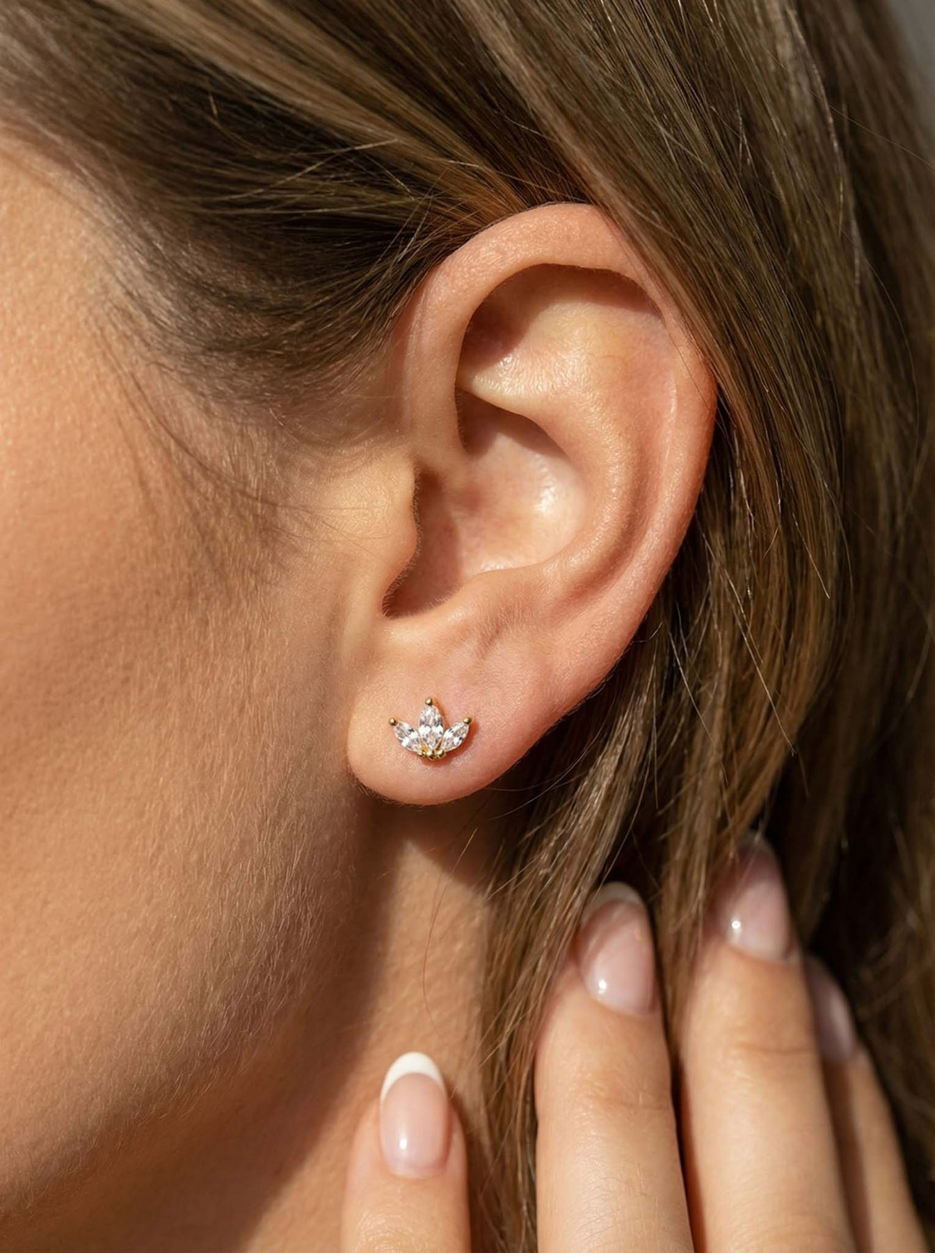 These elegant Diamond Stud Earrings feature three sparkling marquise-cut cubic zirconia stones arranged in a refined crown-like design. Crafted from premium 925 sterling silver and finished with high-quality gold plating, they offer a luxurious shine while remaining lightweight and comfortable for everyday wear.