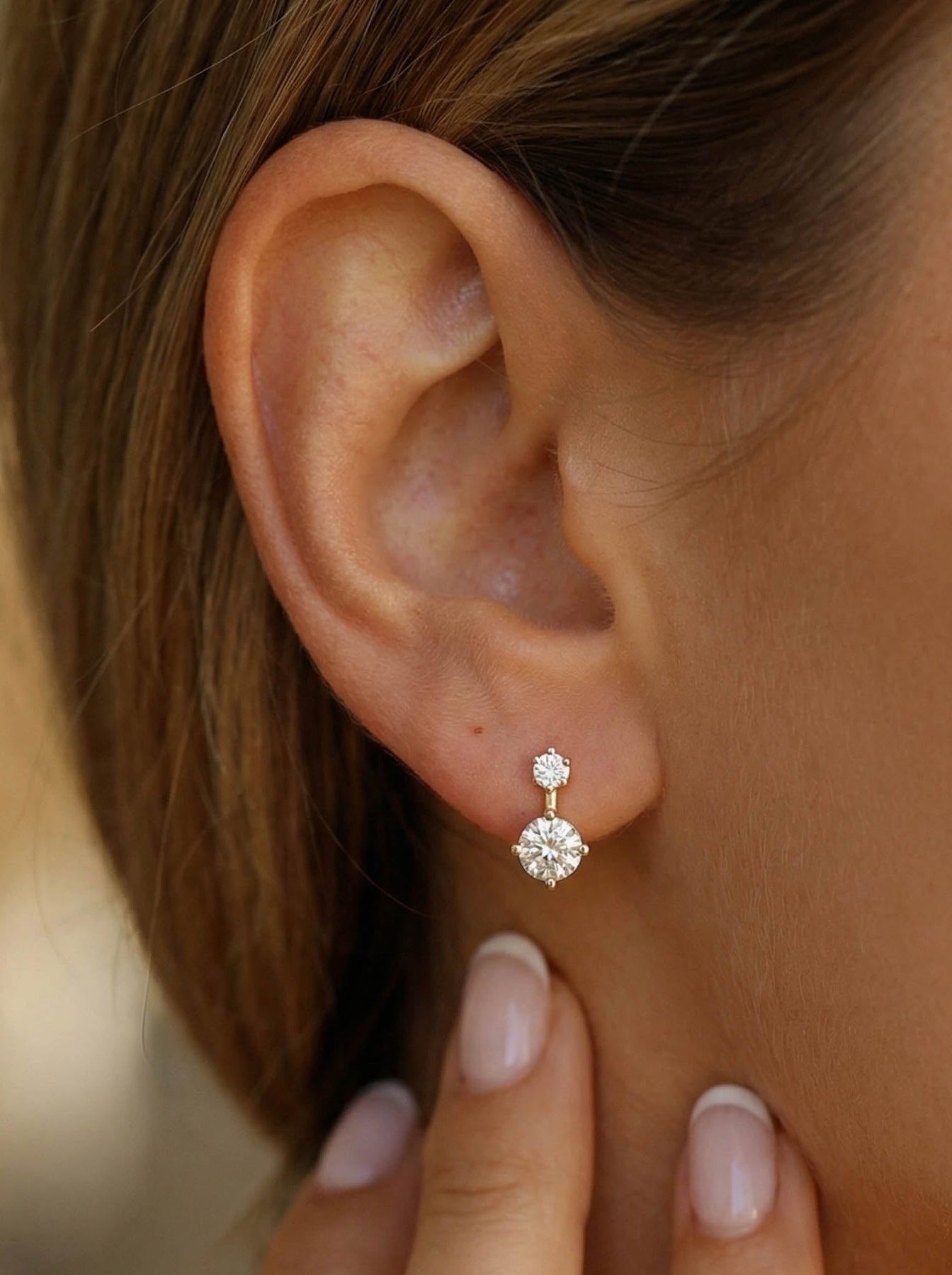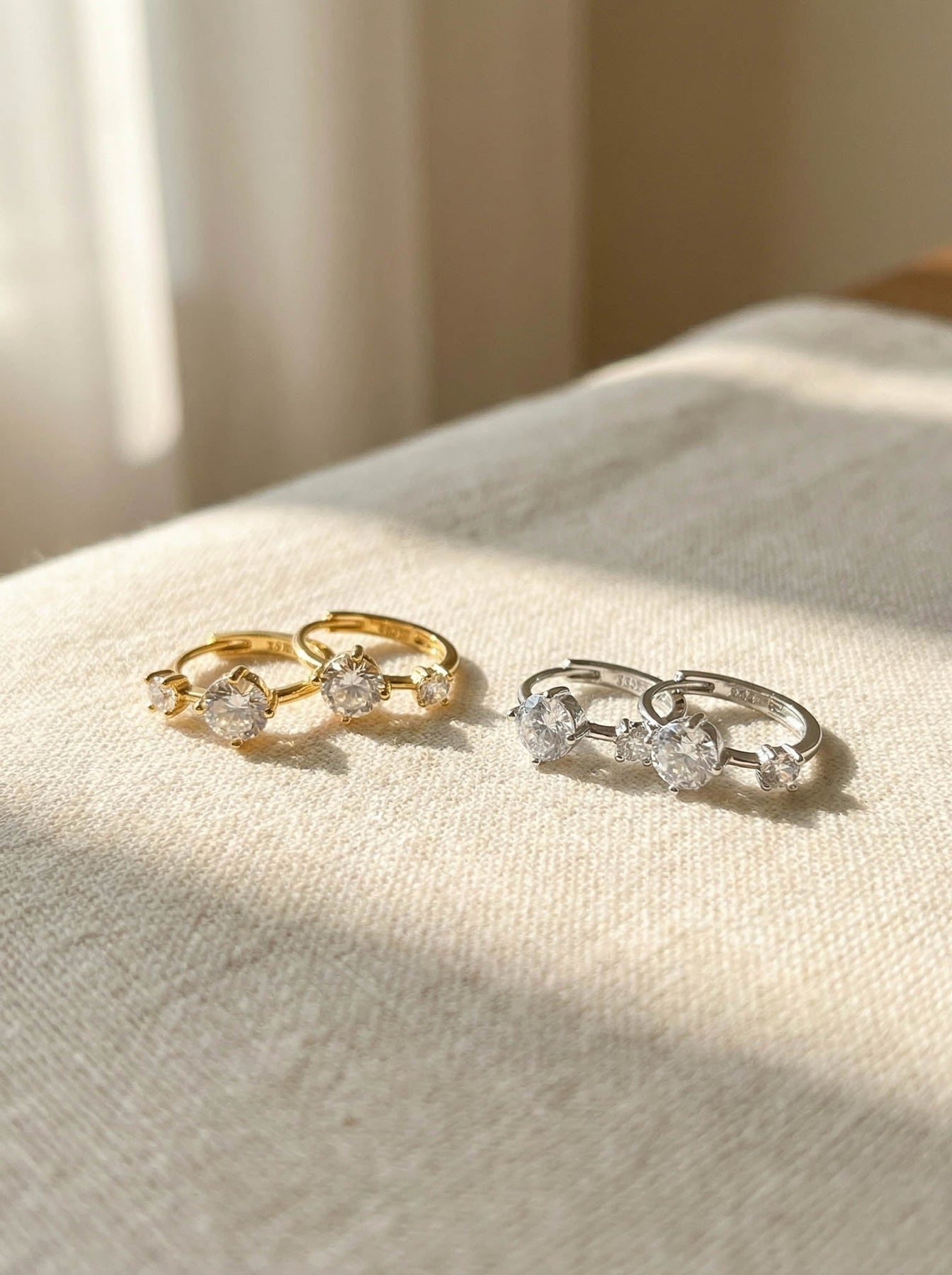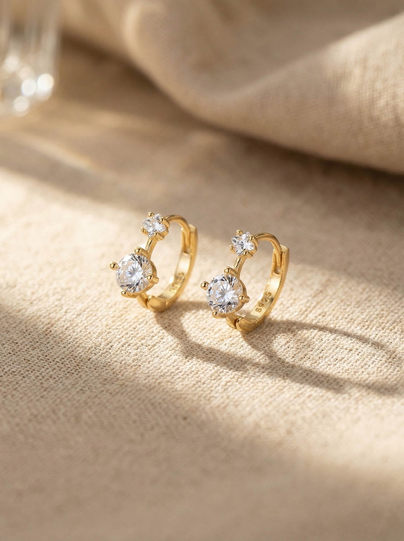 These Double Stone Hoop Earrings combine modern elegance with timeless sparkle. Crafted from high-quality 925 sterling silver, each earring features a delicate hoop adorned with two brilliant cubic zirconia stones—a small star-like crystal at the top and a larger round CZ drop below. The result is a refined, eye-catching accessory that enhances both everyday outfits and special-occasion looks.