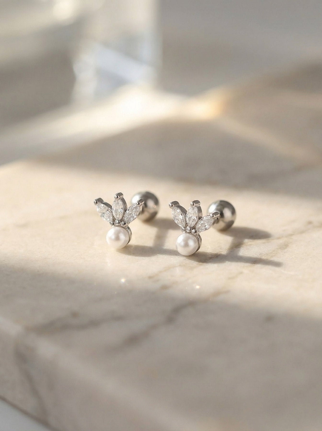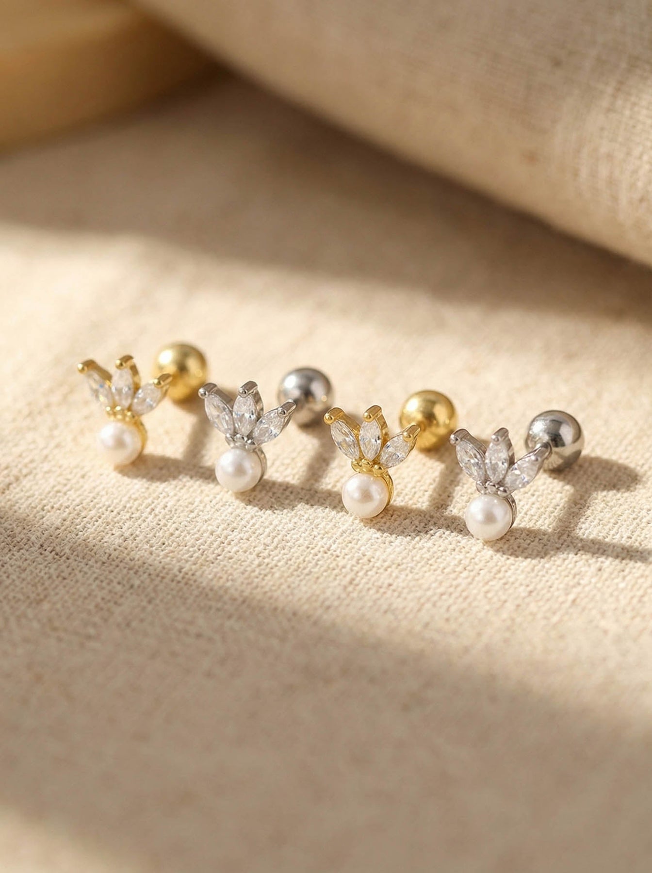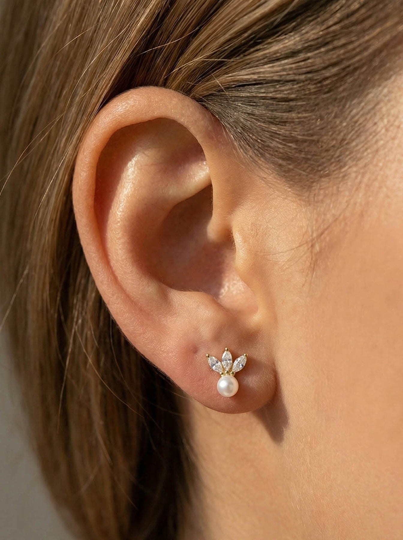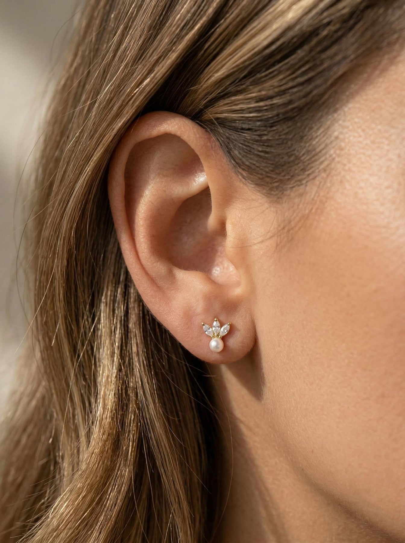 Add a touch of elegance to your everyday look with these Pearl and Crystal Stud Earrings, beautifully crafted from high-quality 925 sterling silver. Each earring features a lustrous freshwater pearl paired with sparkling crystal stones arranged in a delicate floral design, creating a timeless and feminine accessory.