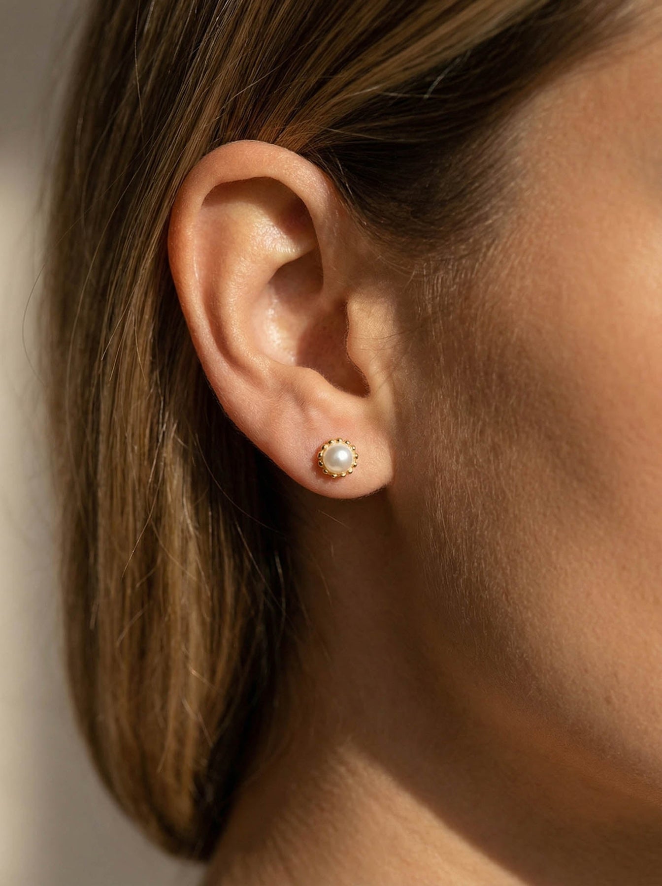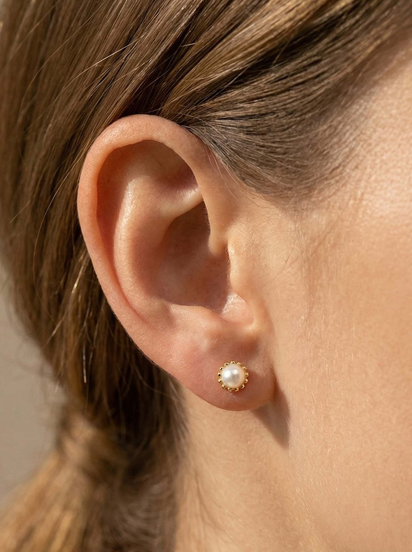 Elevate your everyday look with these Elegant Gold Pearl Stud Earrings, crafted from high-quality 925 sterling silver and finished with a durable gold plating. Each earring features a delicate freshwater pearl set in a beaded gold frame, creating a timeless and feminine design suitable for any occasion.