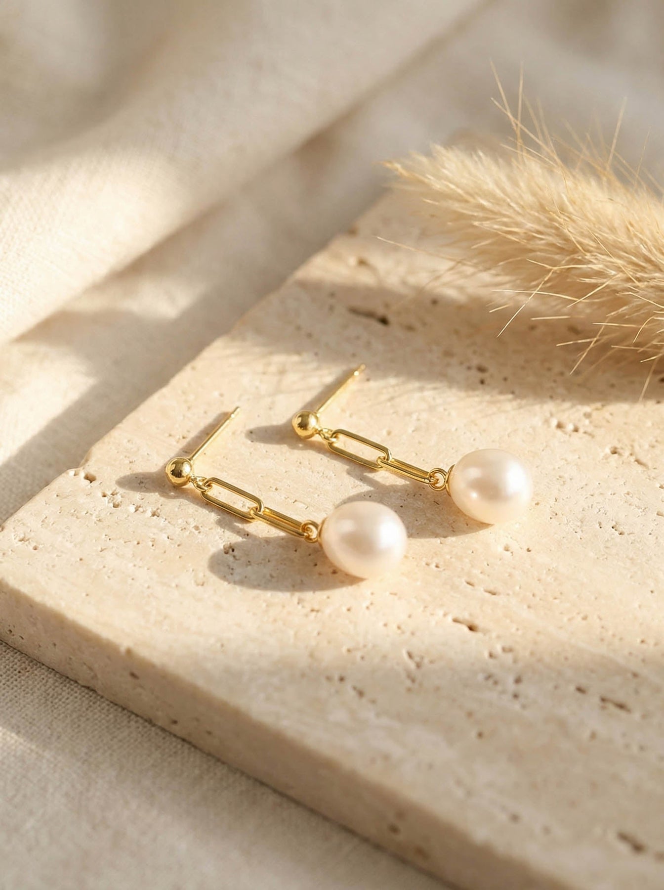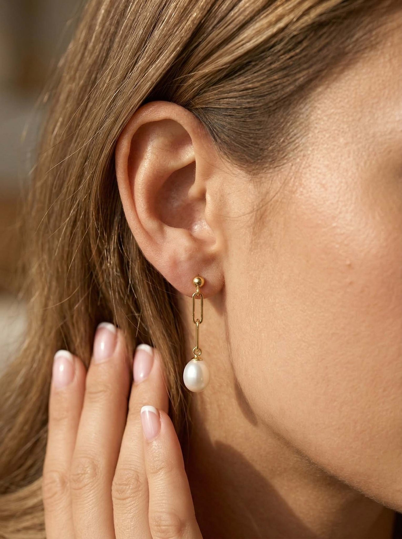 These elegant Pearl Drop Earrings are crafted from premium 925 sterling silver and finished with durable gold plating for a refined, luxurious shine. Each earring features a long, delicate drop design with a genuine freshwater pearl at the end, creating a timeless and sophisticated look.