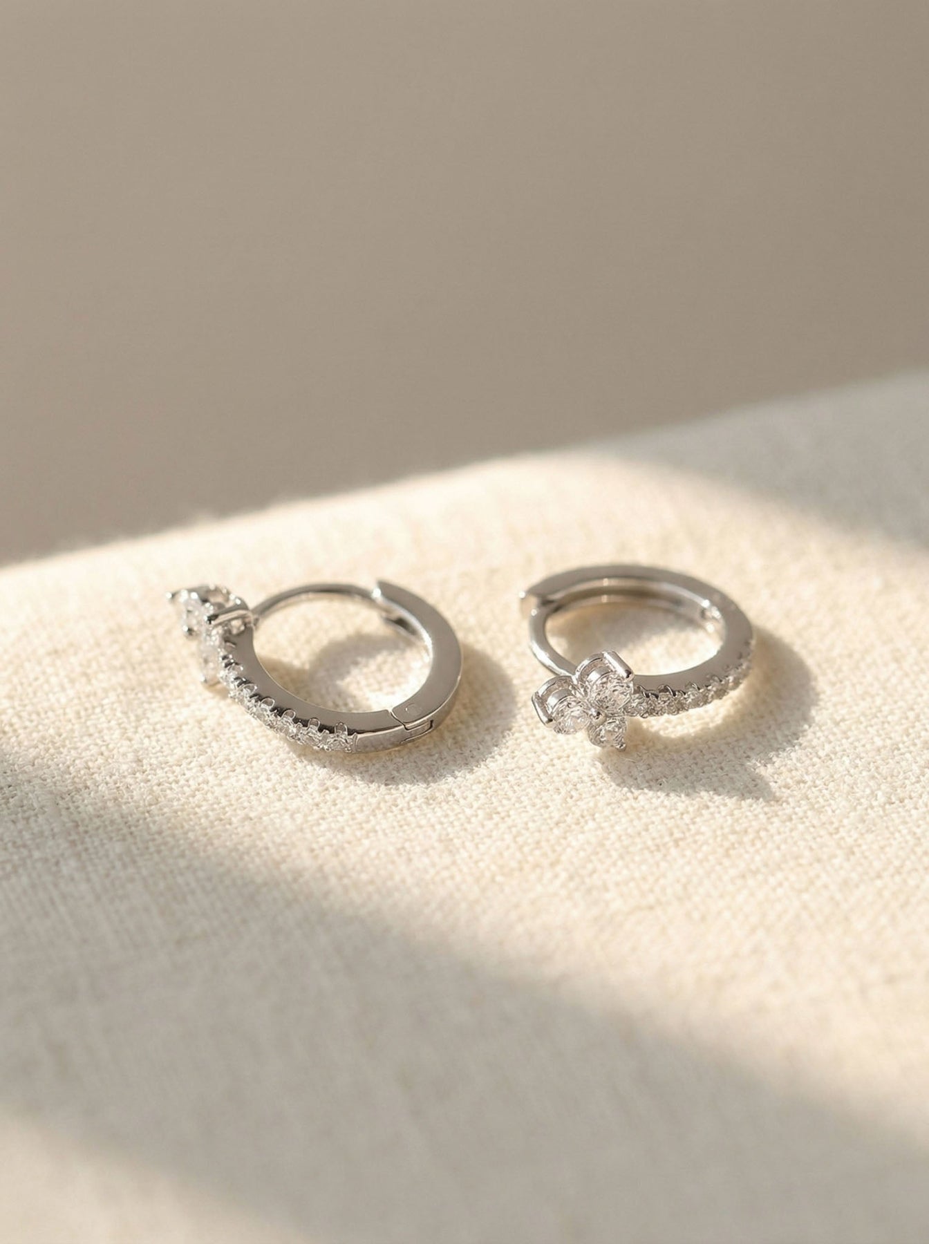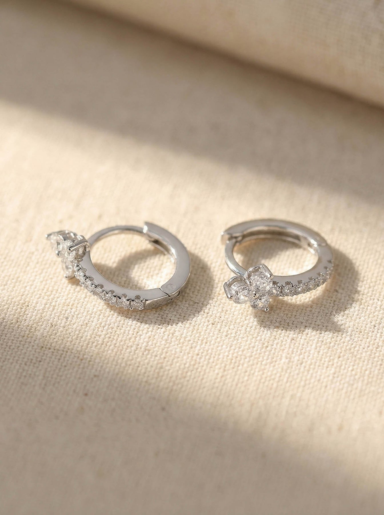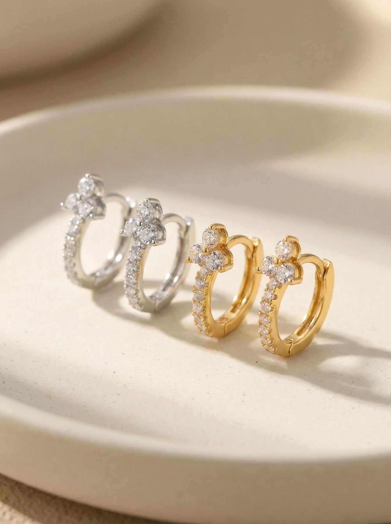 Elevate your everyday style with these elegant Floral Diamond Huggie Hoop Earrings crafted from premium 925 sterling silver. Each hoop features a delicate flower-shaped cluster of sparkling cubic zirconia stones paired with a sleek gold-plated finish, creating a timeless and feminine look perfect for any occasion.