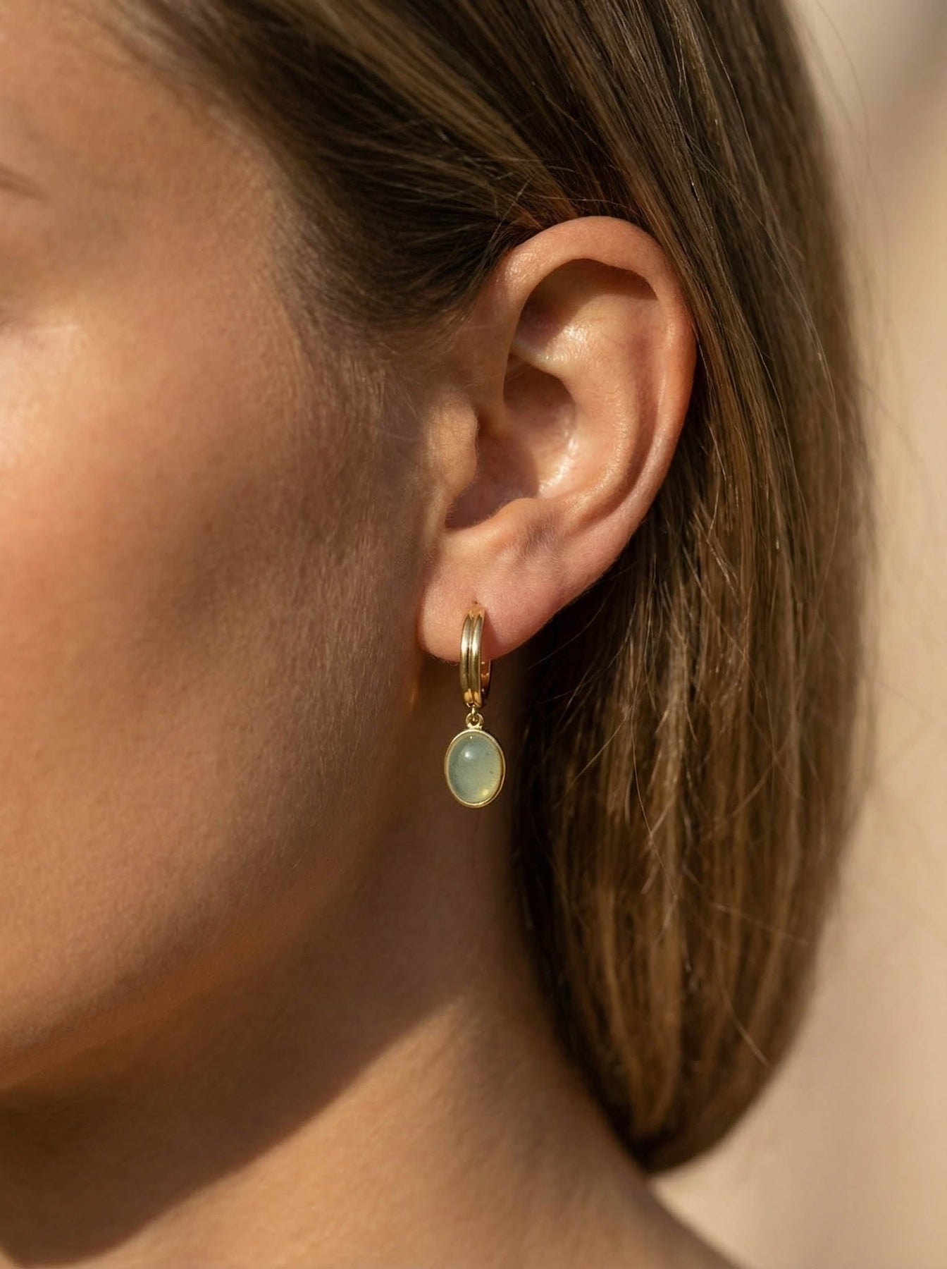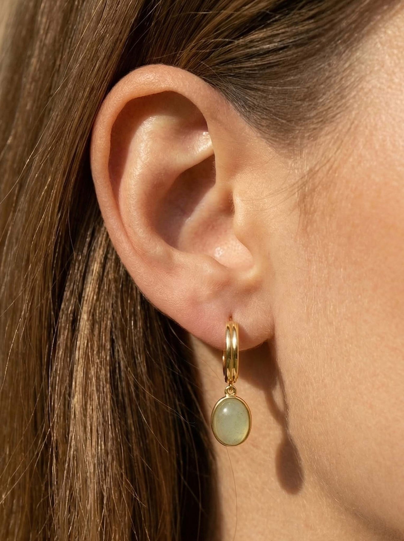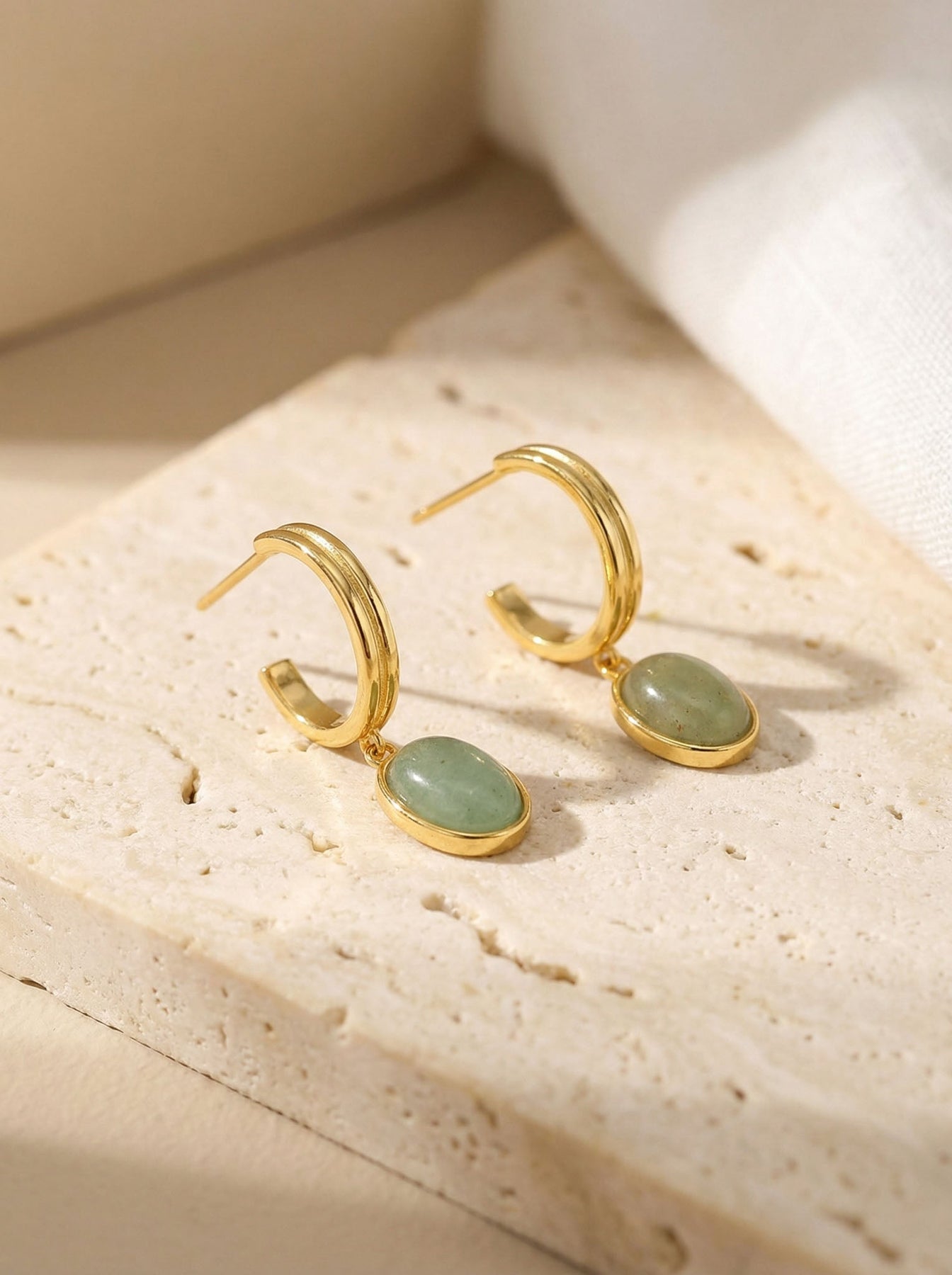 Add a touch of elegance to your everyday style with these Gold Drop Earrings featuring a soft green gemstone pendant. Crafted from premium 925 sterling silver and plated with high-quality gold, these hoops offer a refined, timeless look while remaining lightweight and comfortable for all-day wear. The subtle green stone adds a fresh, delicate pop of color, making these earrings perfect for both casual outfits and special occasions.