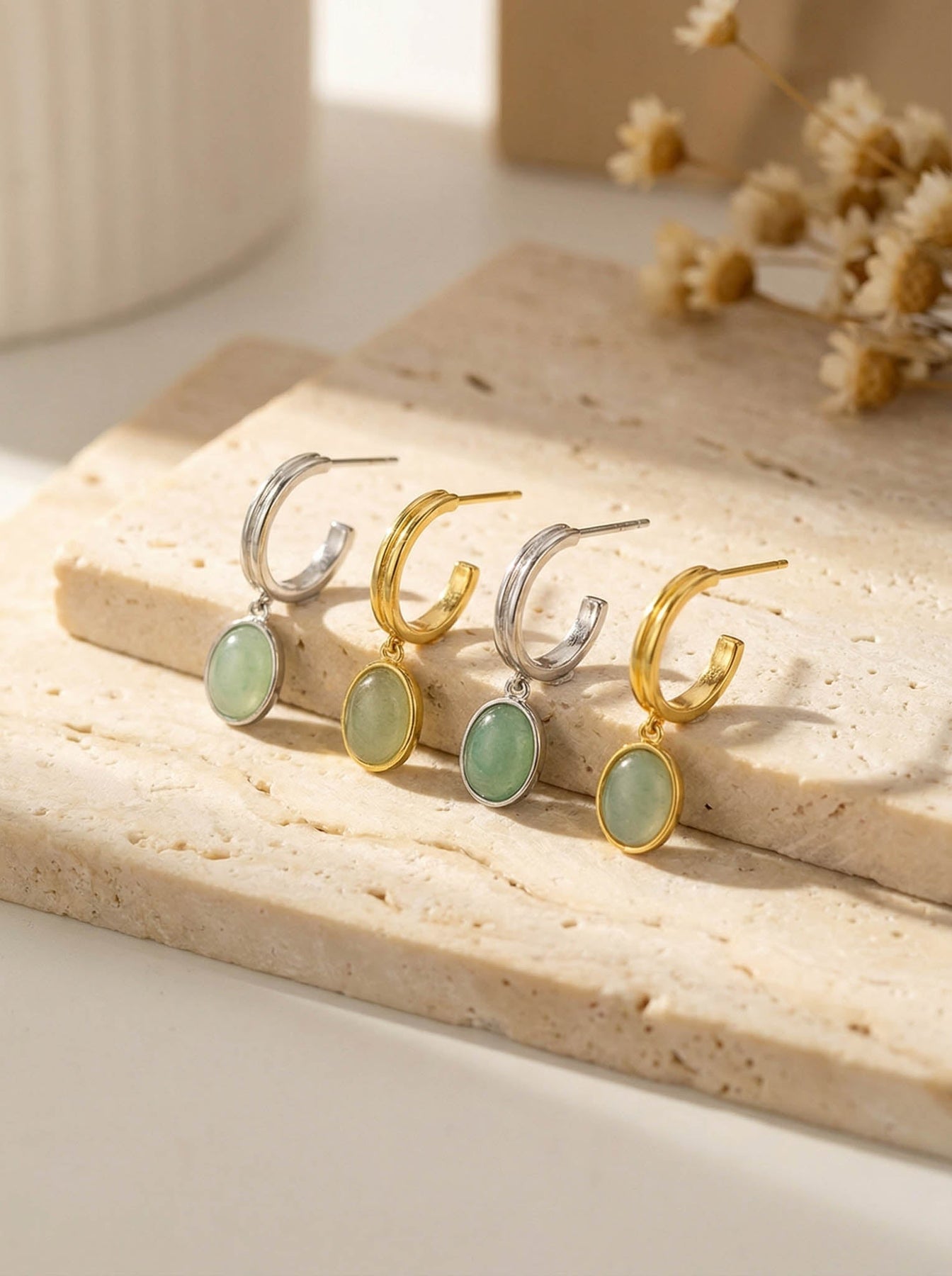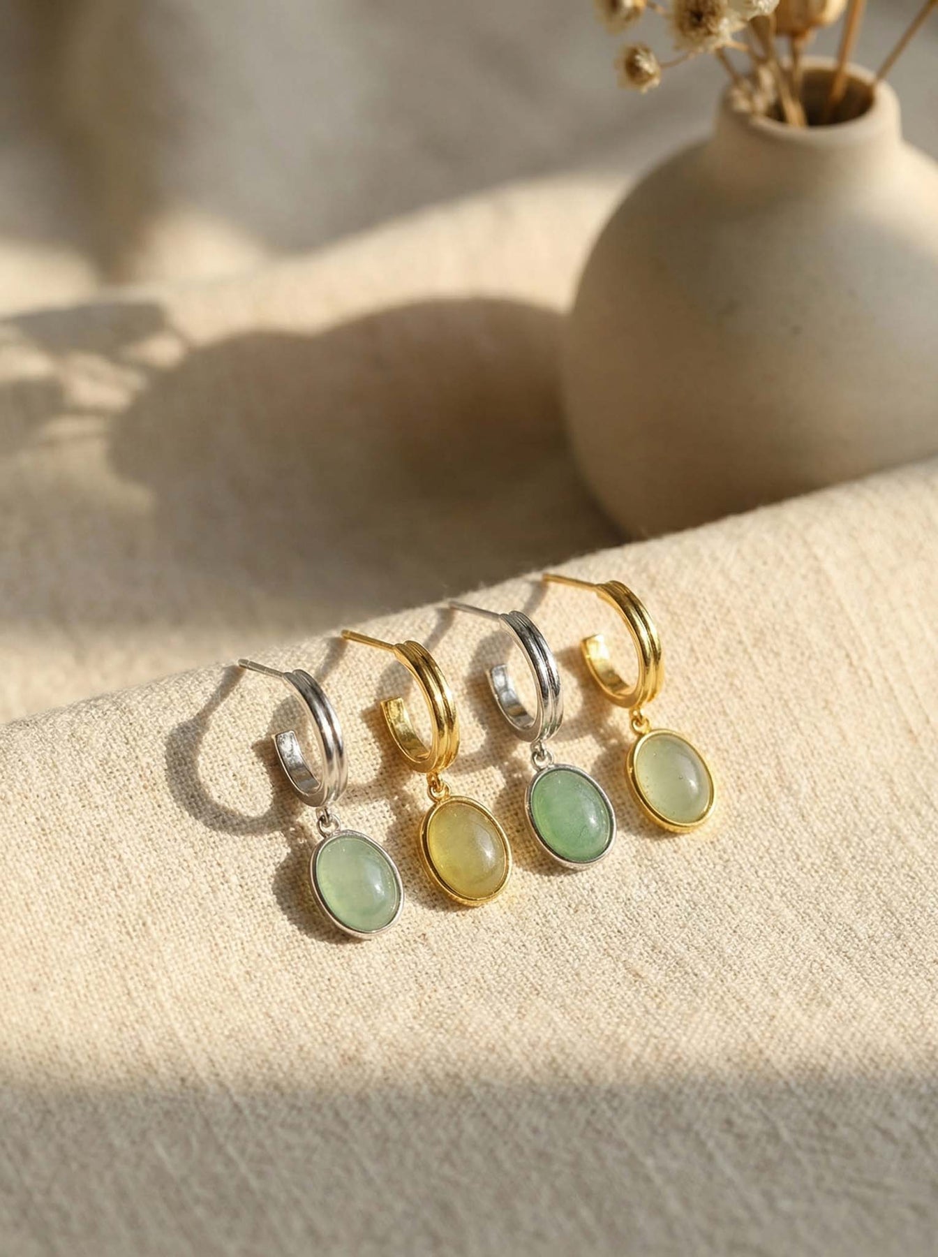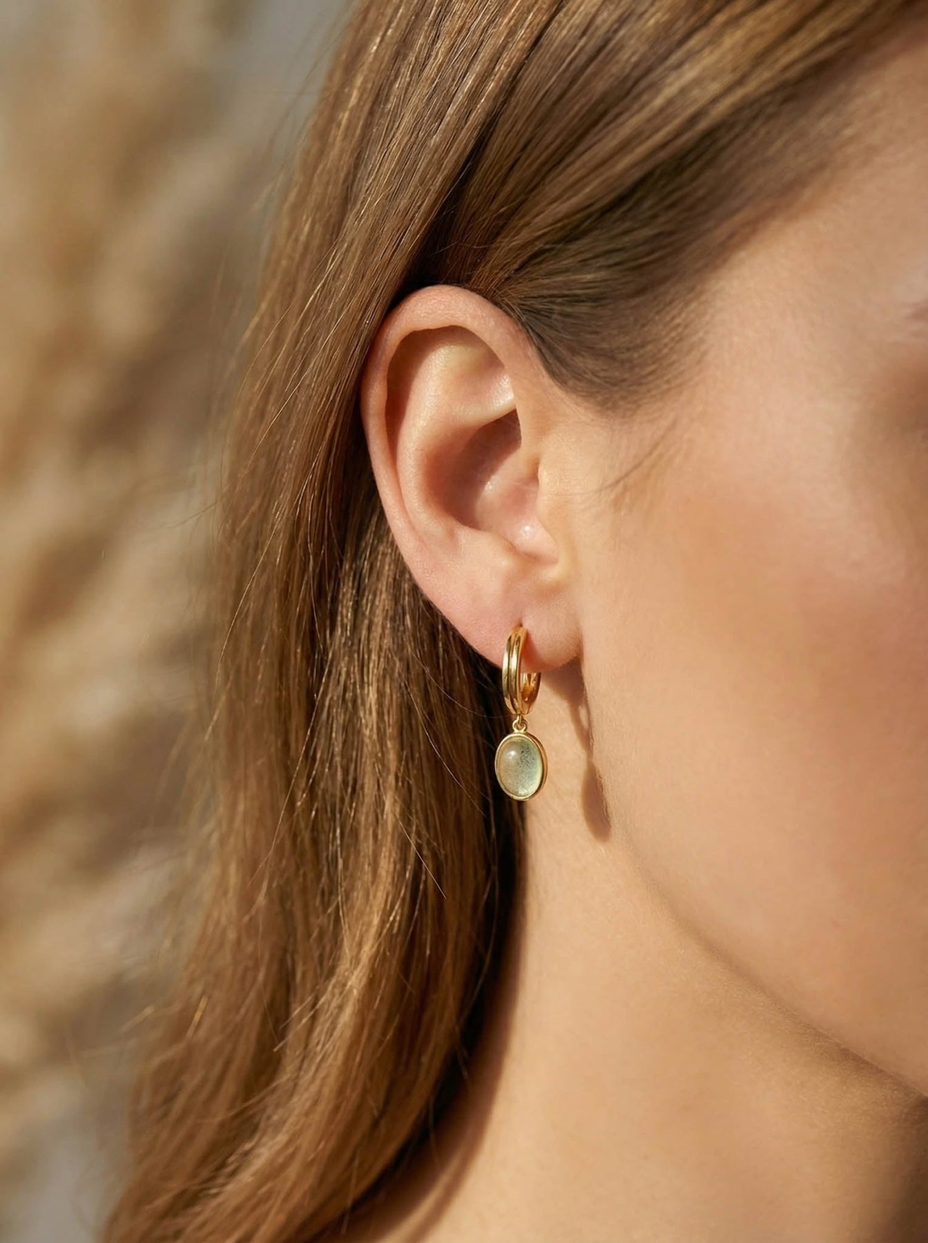 Add a touch of elegance to your everyday style with these Gold Drop Earrings featuring a soft green gemstone pendant. Crafted from premium 925 sterling silver and plated with high-quality gold, these hoops offer a refined, timeless look while remaining lightweight and comfortable for all-day wear. The subtle green stone adds a fresh, delicate pop of color, making these earrings perfect for both casual outfits and special occasions.