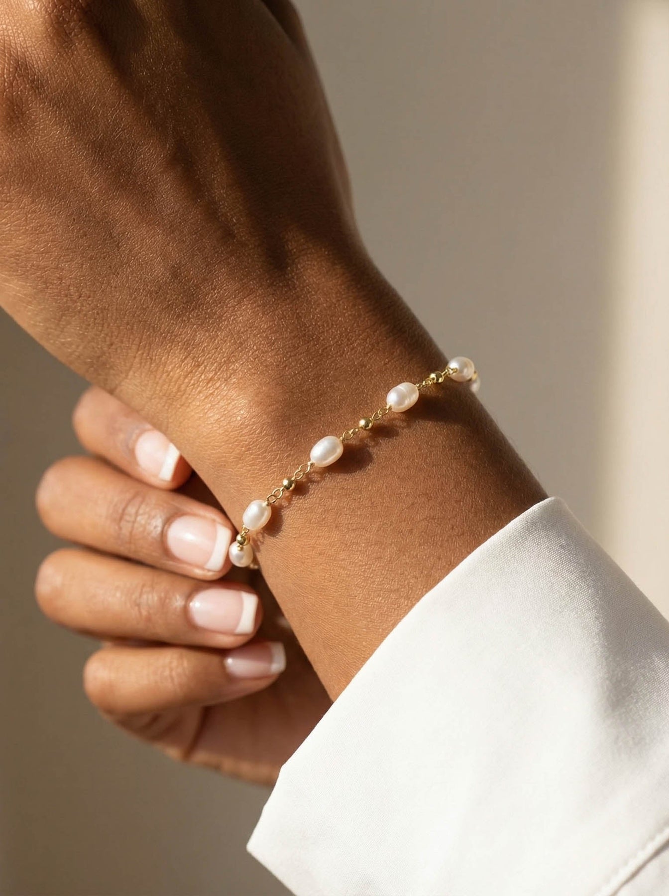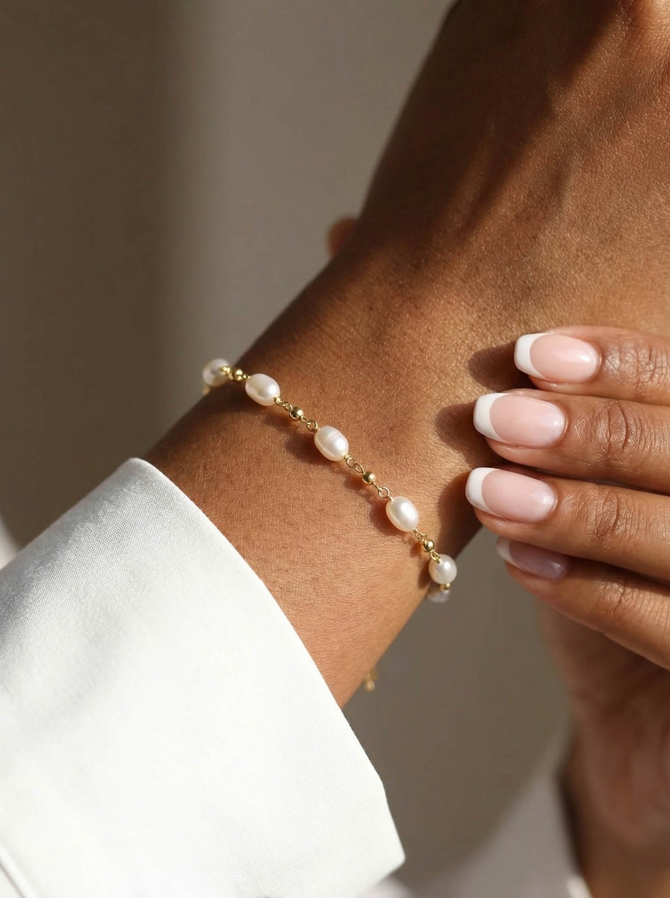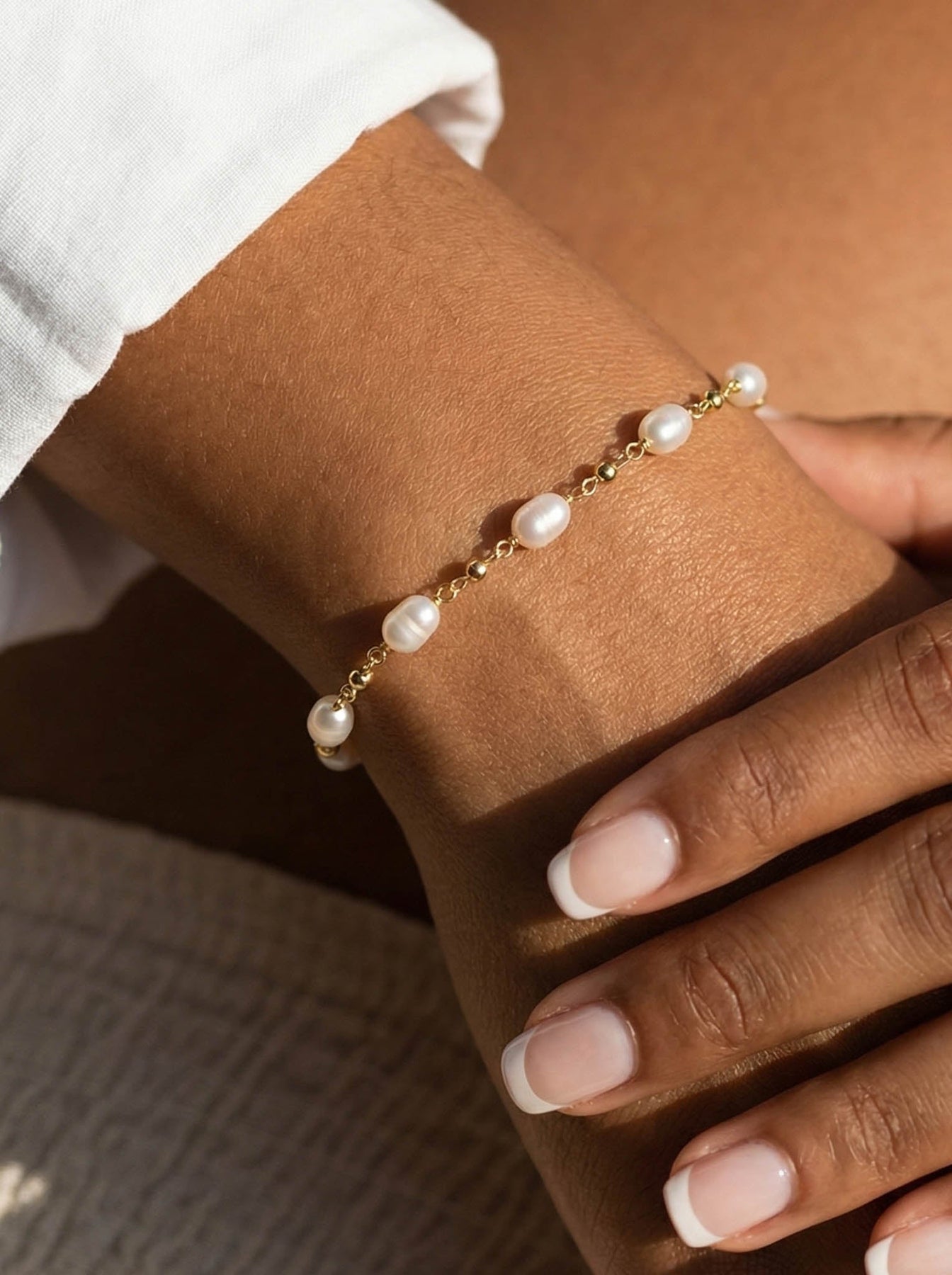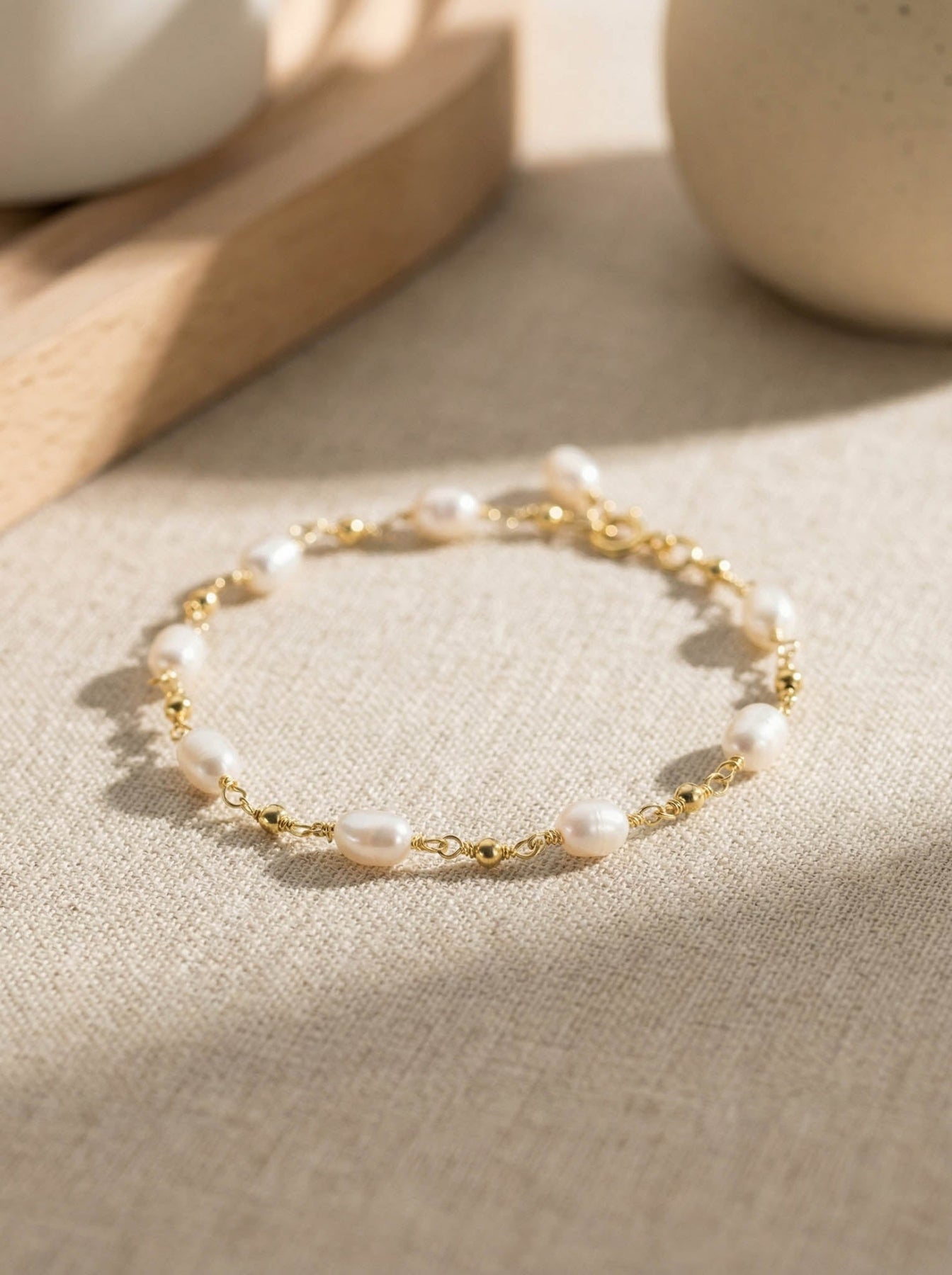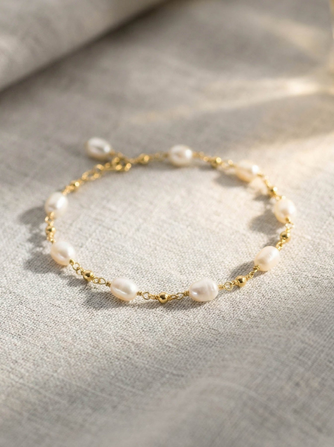 Elevate your everyday style with this elegant Gold Freshwater Pearl Bracelet, crafted from high-quality 925 sterling silver and finished with a luxurious gold plating. Featuring a row of natural freshwater pearls delicately linked together, this bracelet brings timeless beauty and modern minimalism to any look.