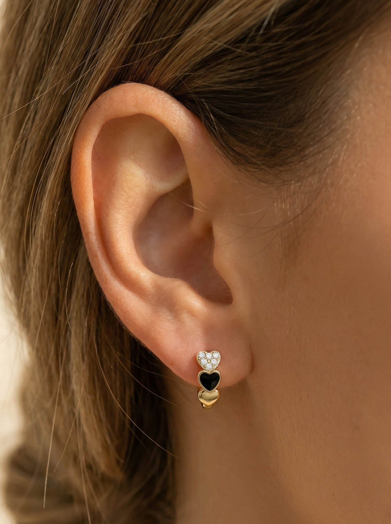 Add a romantic touch to your everyday look with these stunning Heart Hoop Earrings, crafted from premium 925 sterling silver. Each hoop features a charming double-heart design—one adorned with sparkling cubic zirconia and the other with glossy black enamel—creating a perfect balance of elegance and modern style.