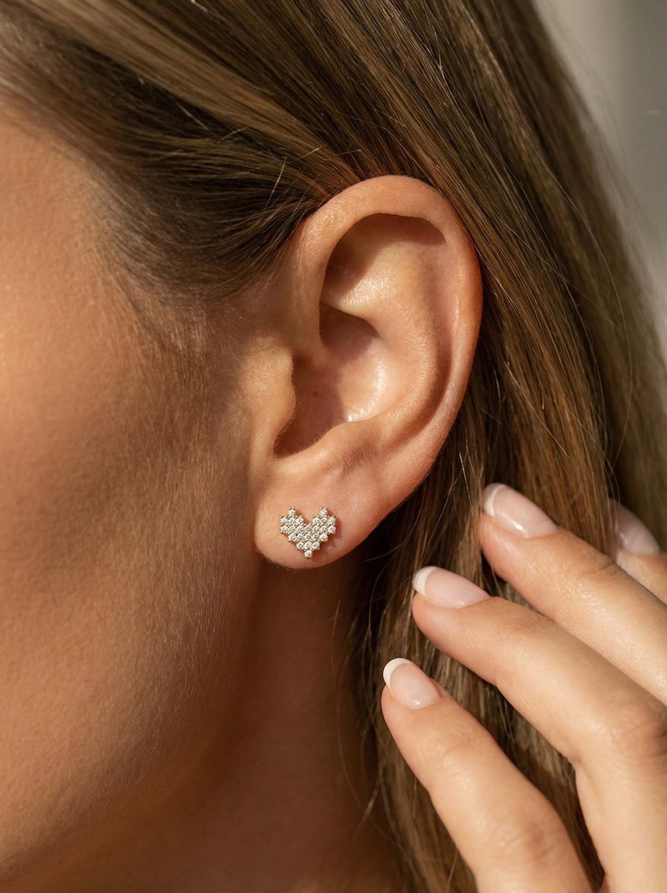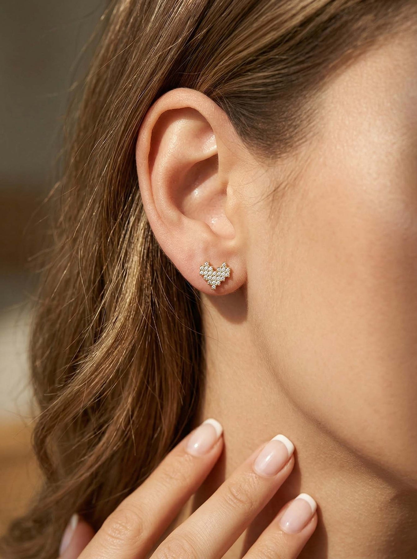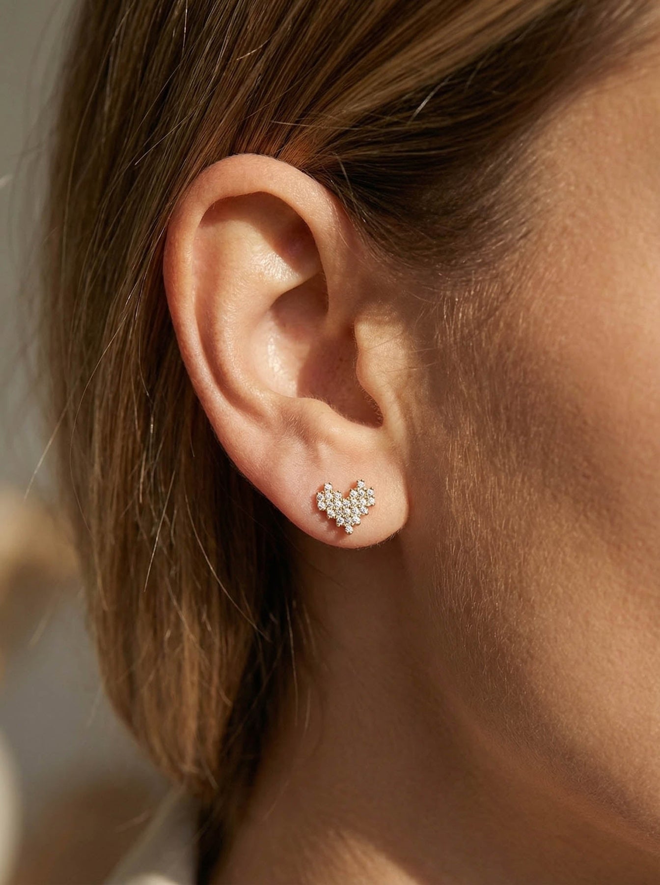 Add a touch of sparkle and romance to your everyday style with these Heart Stud Earrings With Diamonds, beautifully crafted from premium 925 sterling silver and finished with a luxurious gold plating. These studs feature a delicate heart shape made up of shimmering cubic zirconia stones, creating a brilliant, eye-catching sparkle while maintaining a dainty, minimalist look.