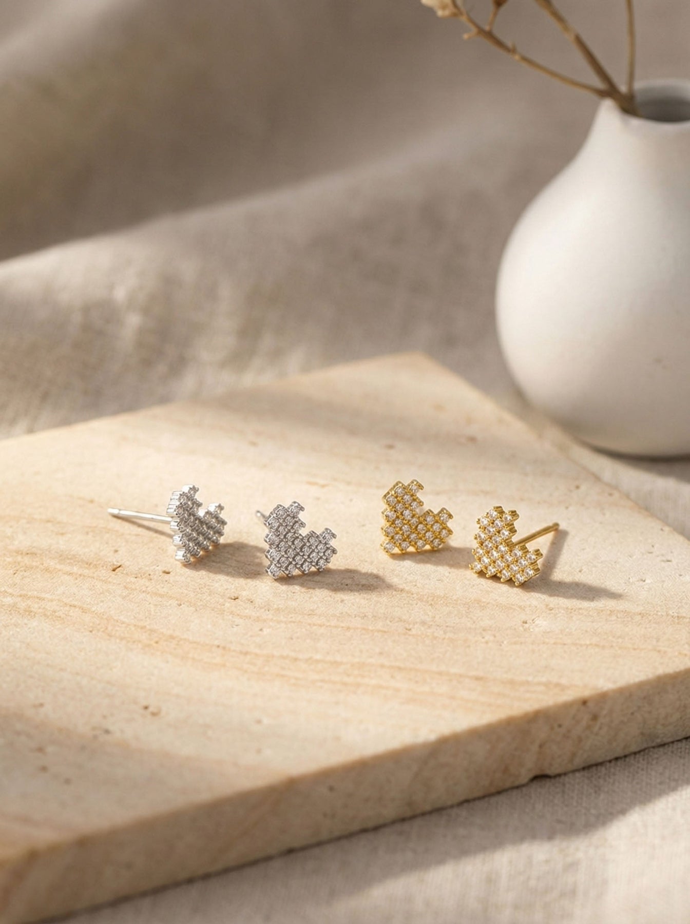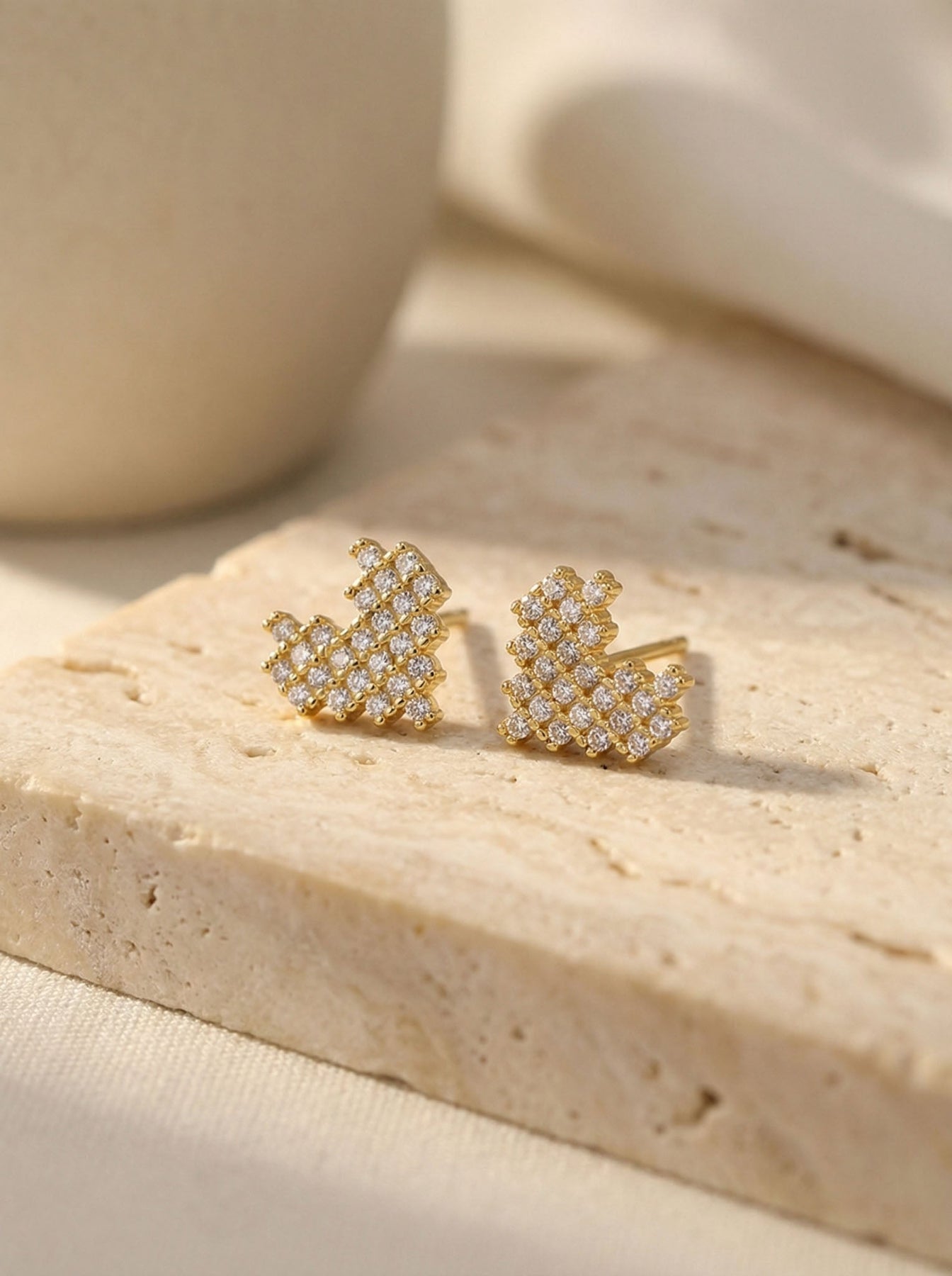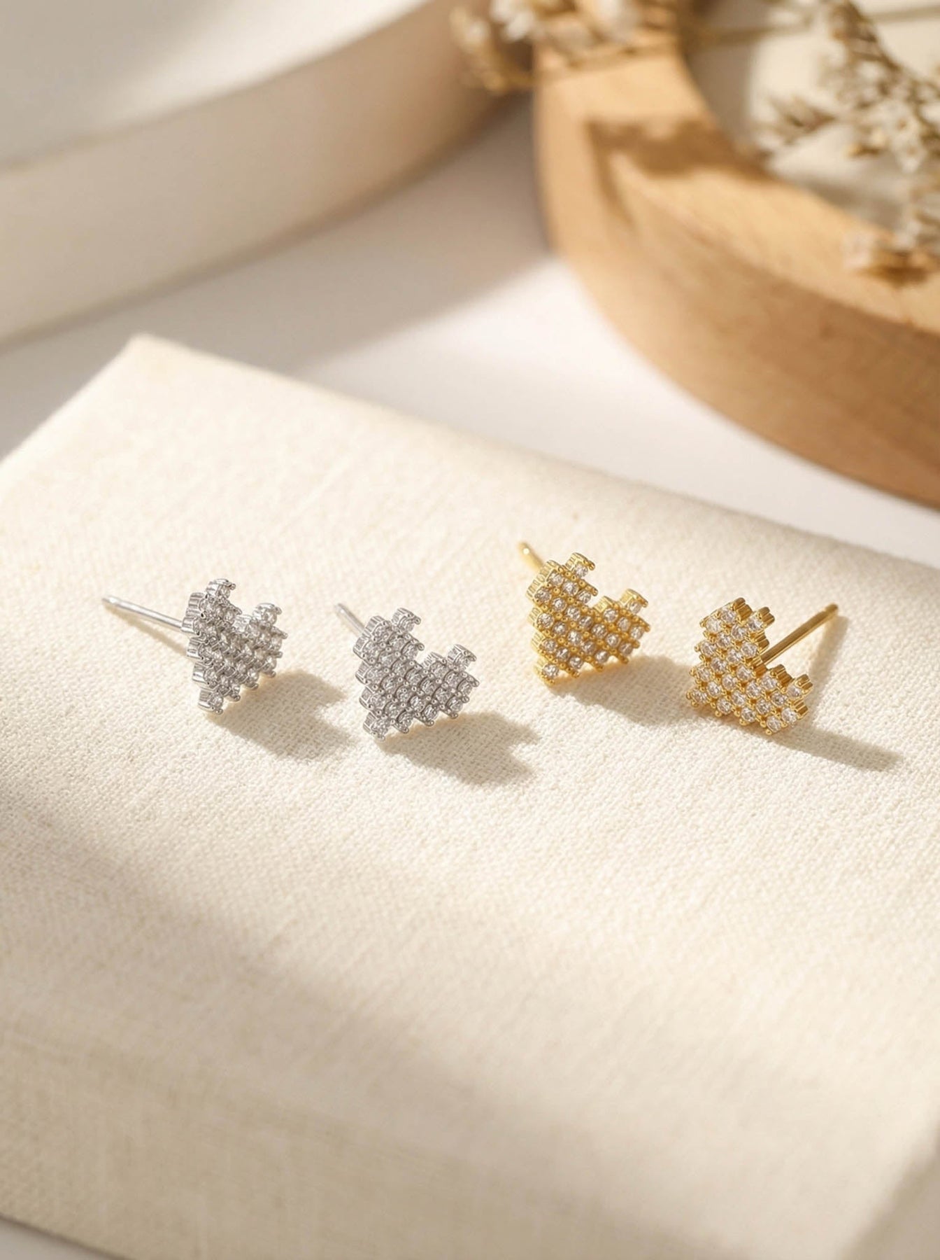 Add a touch of sparkle and romance to your everyday style with these Heart Stud Earrings With Diamonds, beautifully crafted from premium 925 sterling silver and finished with a luxurious gold plating. These studs feature a delicate heart shape made up of shimmering cubic zirconia stones, creating a brilliant, eye-catching sparkle while maintaining a dainty, minimalist look.
