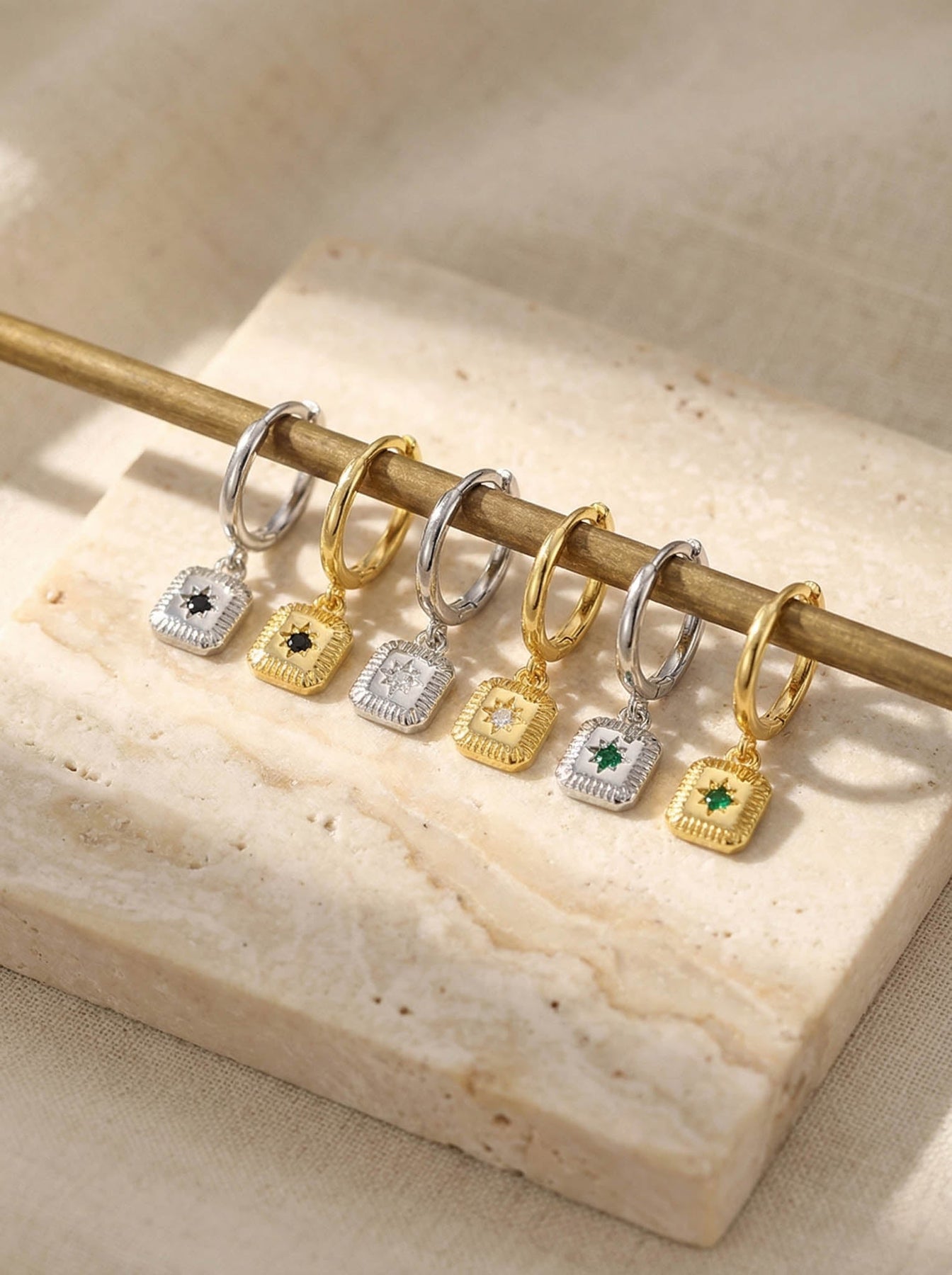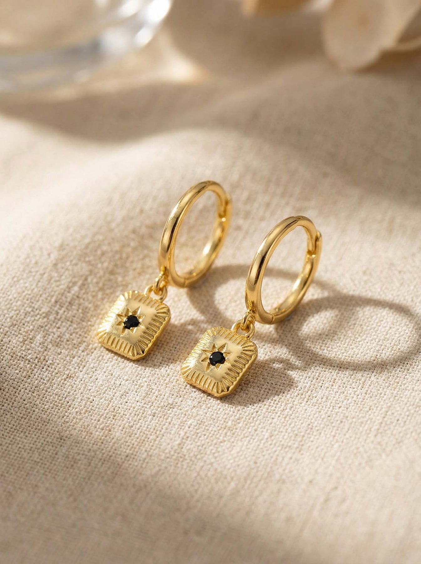 These Hoop Earrings with Black Stone Charm are crafted from high-quality 925 sterling silver and finished with durable gold plating for a rich, elegant shine. Each hoop features a small black gemstone charm that adds a bold, modern touch to the classic hoop silhouette.