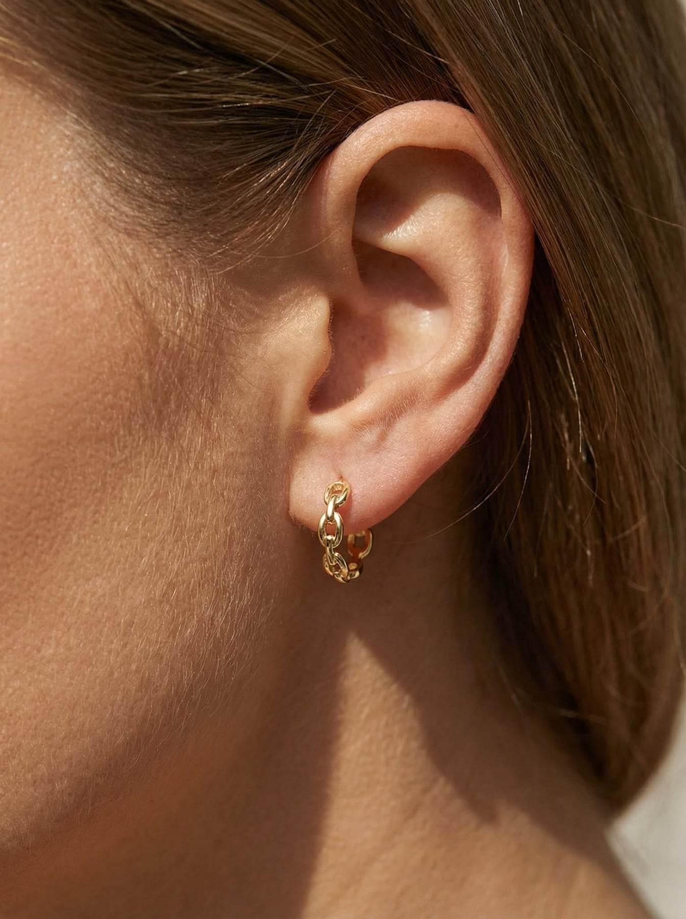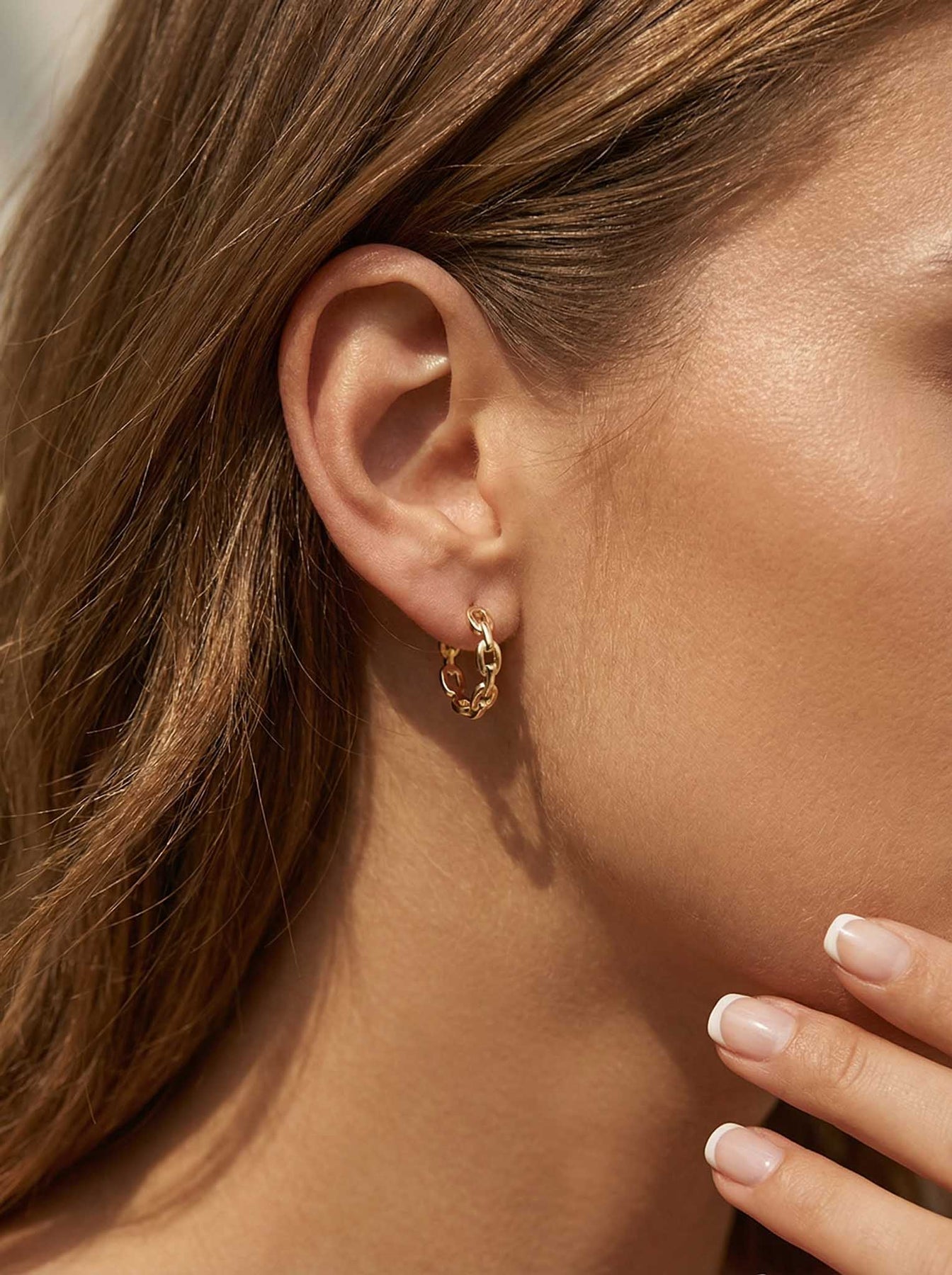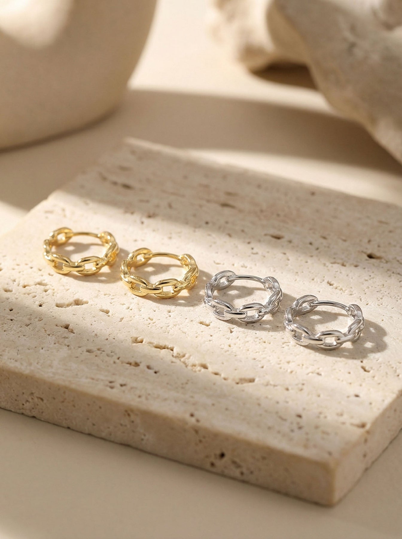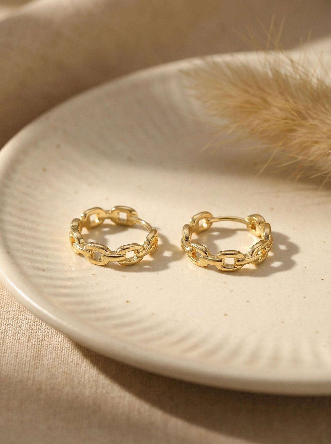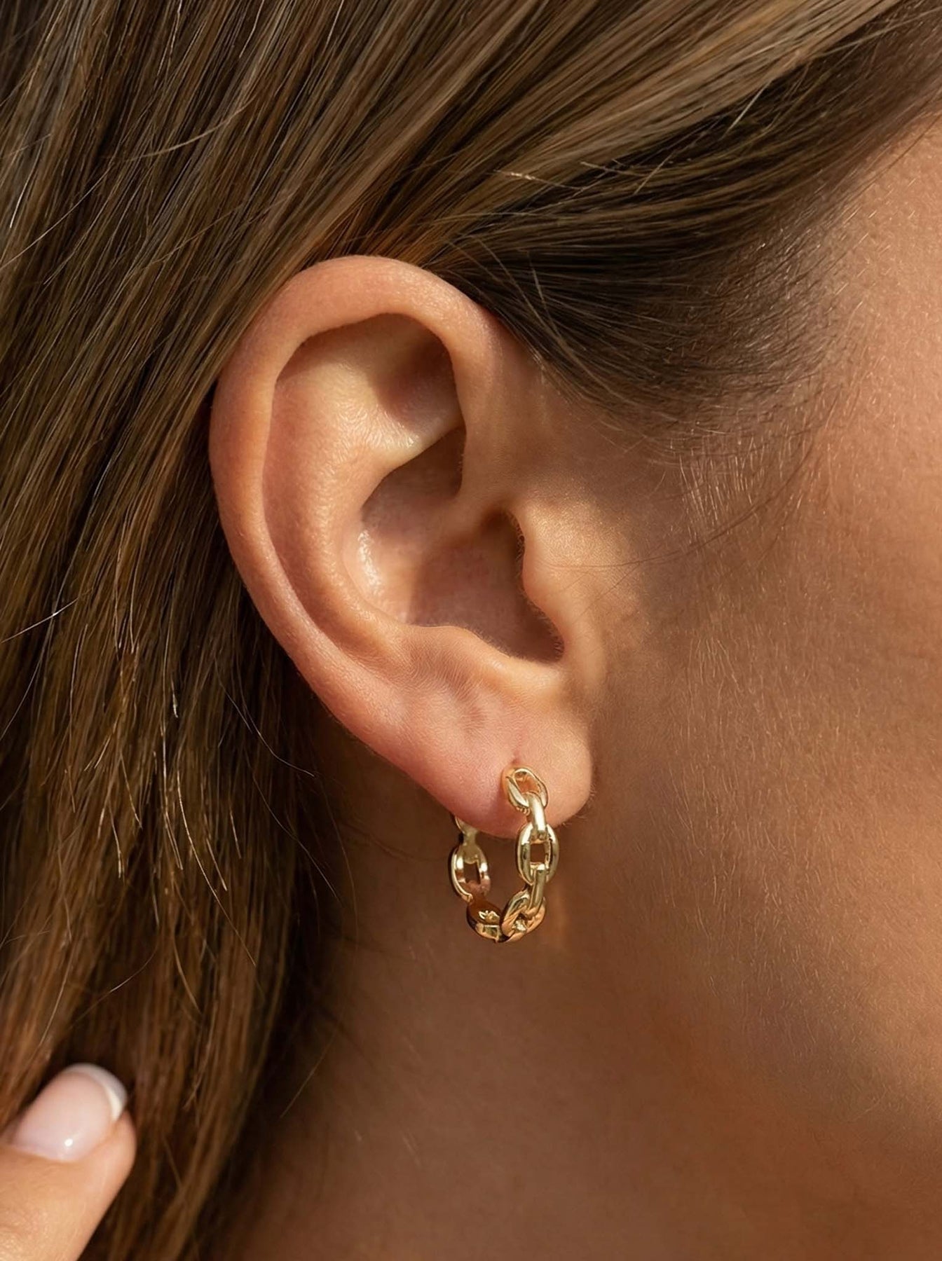 These Hoop Link Earrings bring a chic, modern twist to classic hoops. Crafted from premium 925 sterling silver and finished with a luxurious gold plating, each earring features a stylish chain-link design that adds movement, texture, and contemporary elegance to your look.