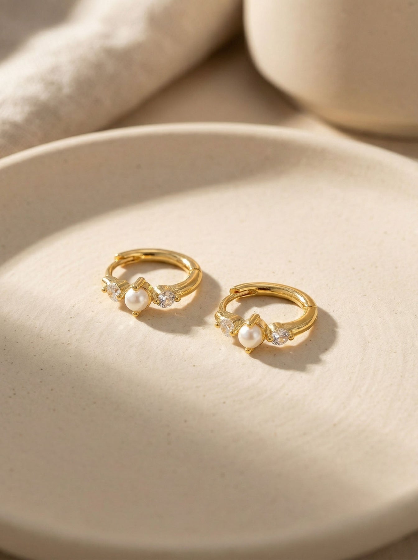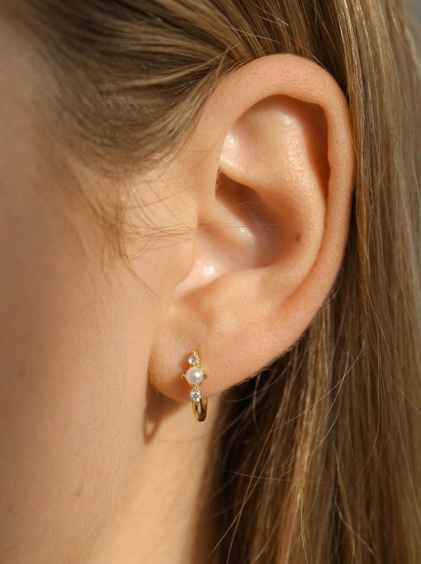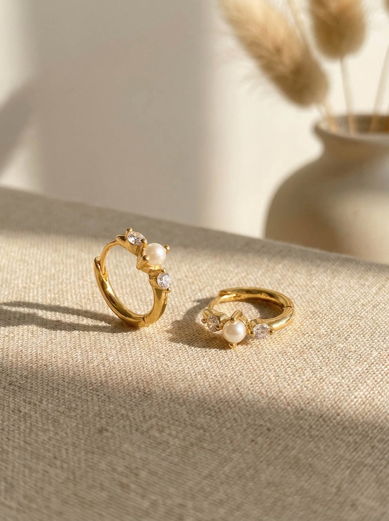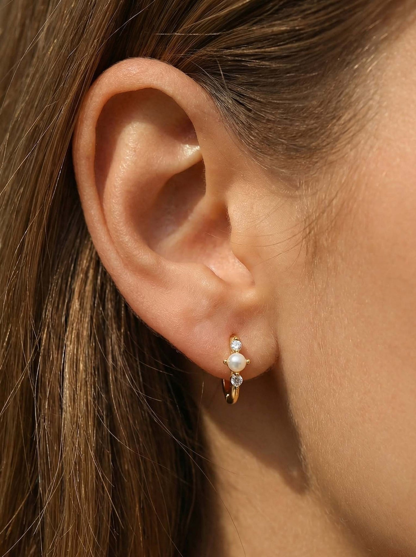 These elegant Hoop Earrings with Pearls are crafted from premium 925 sterling silver and finished with high-quality gold plating. Each hoop features delicate freshwater pearl accents paired with tiny sparkling cubic zirconia stones, creating a refined and feminine look.