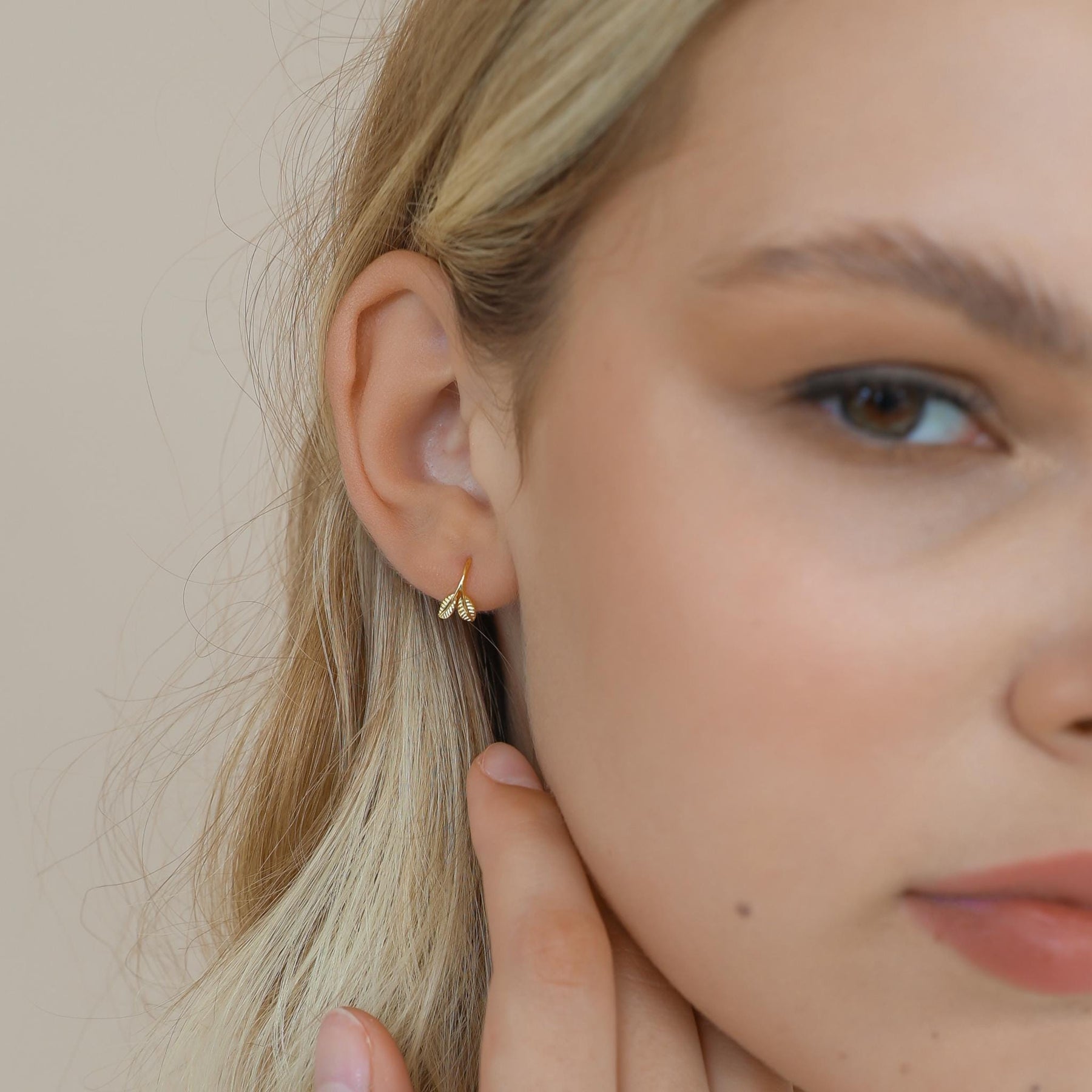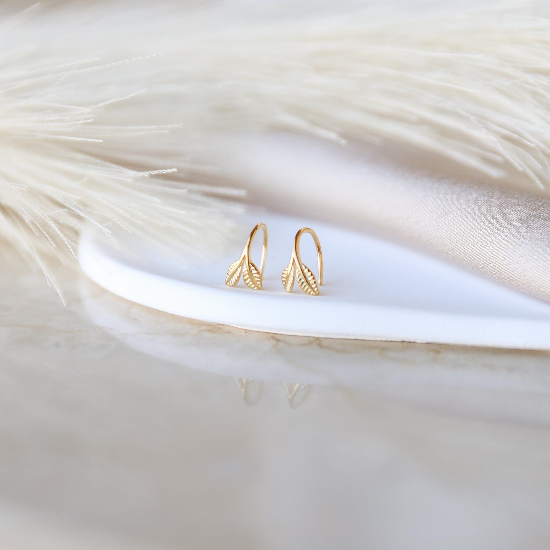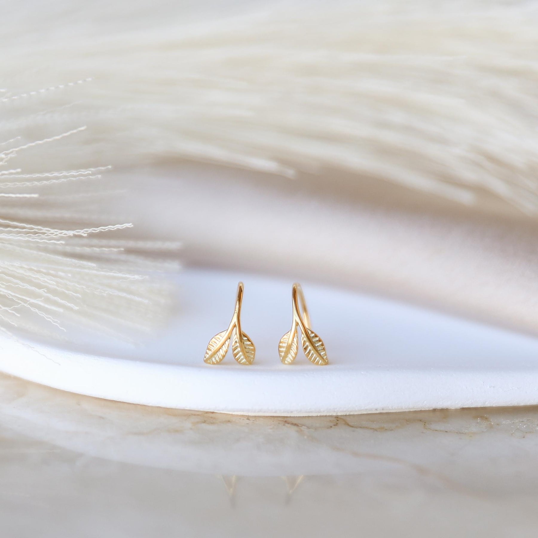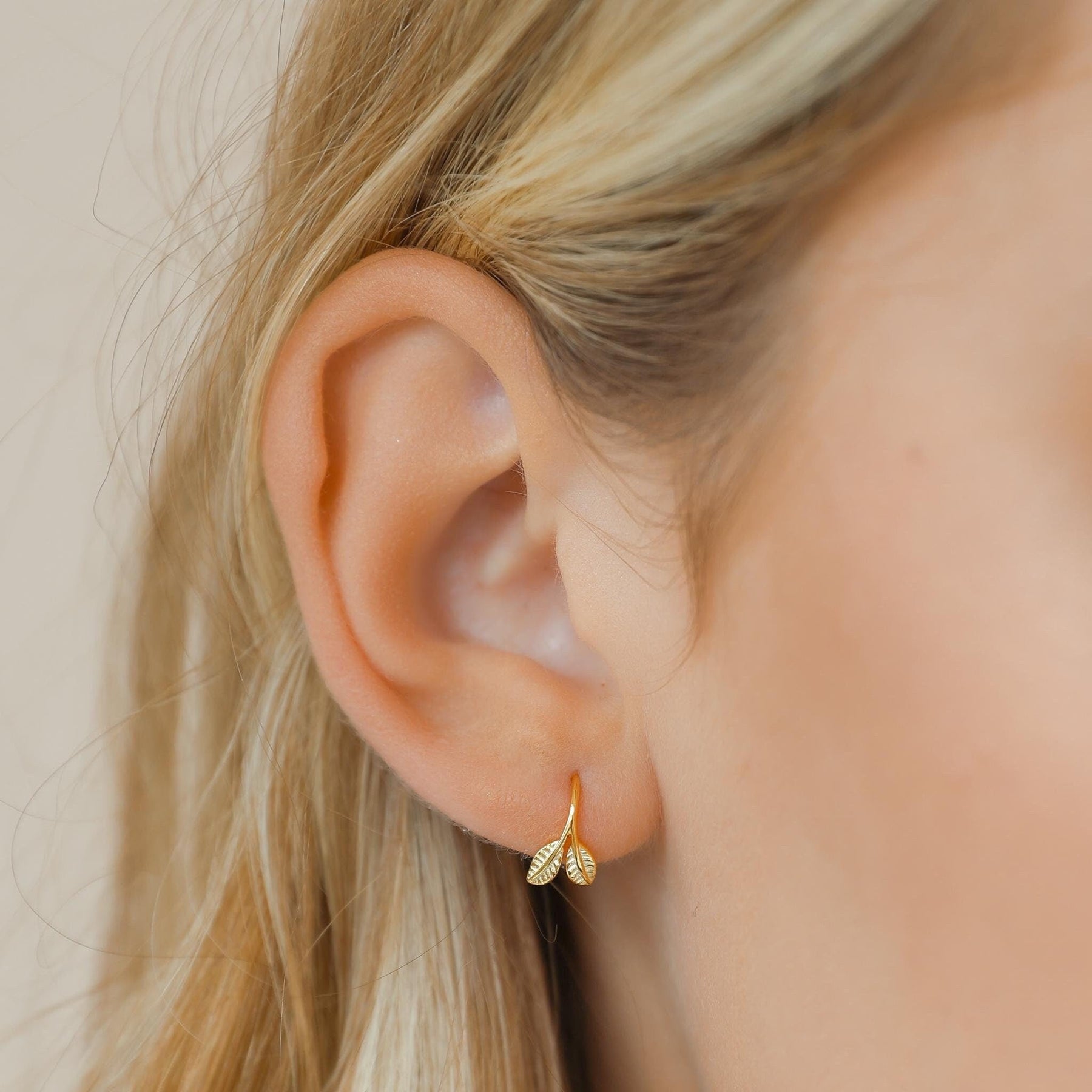 These Leaf Open Huggie Hoop Earrings bring a touch of nature-inspired elegance to your everyday style. Expertly crafted from 925 sterling silver and finished with premium gold plating, each hoop features two delicate engraved leaves that create a soft, organic look. 🌿