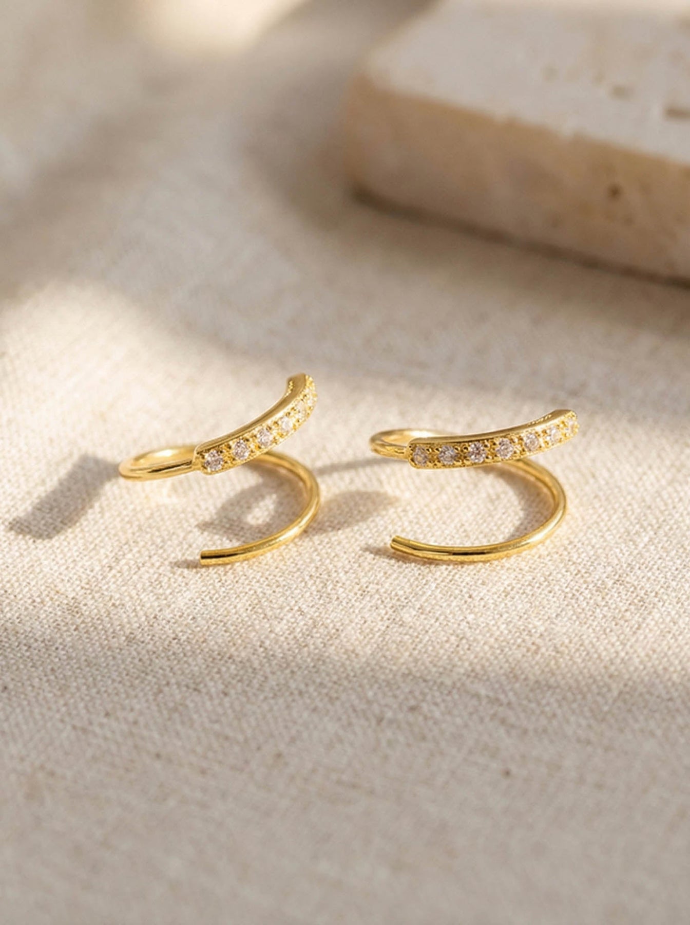 These Open Huggie Diamond Hoops bring a modern twist to a classic design. Crafted from premium 925 sterling silver and finished with a durable gold plating, each earring features an elegant open-ended hoop accented with sparkling cubic zirconia for a refined, high-shine finish.