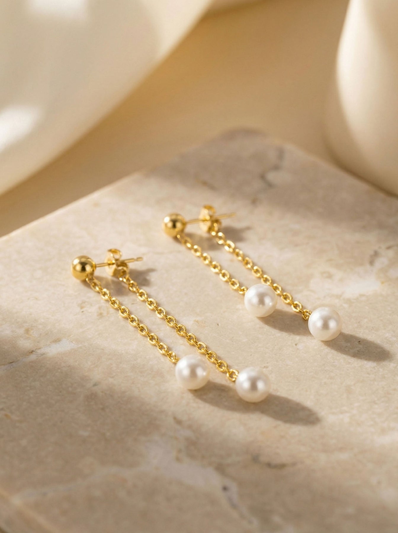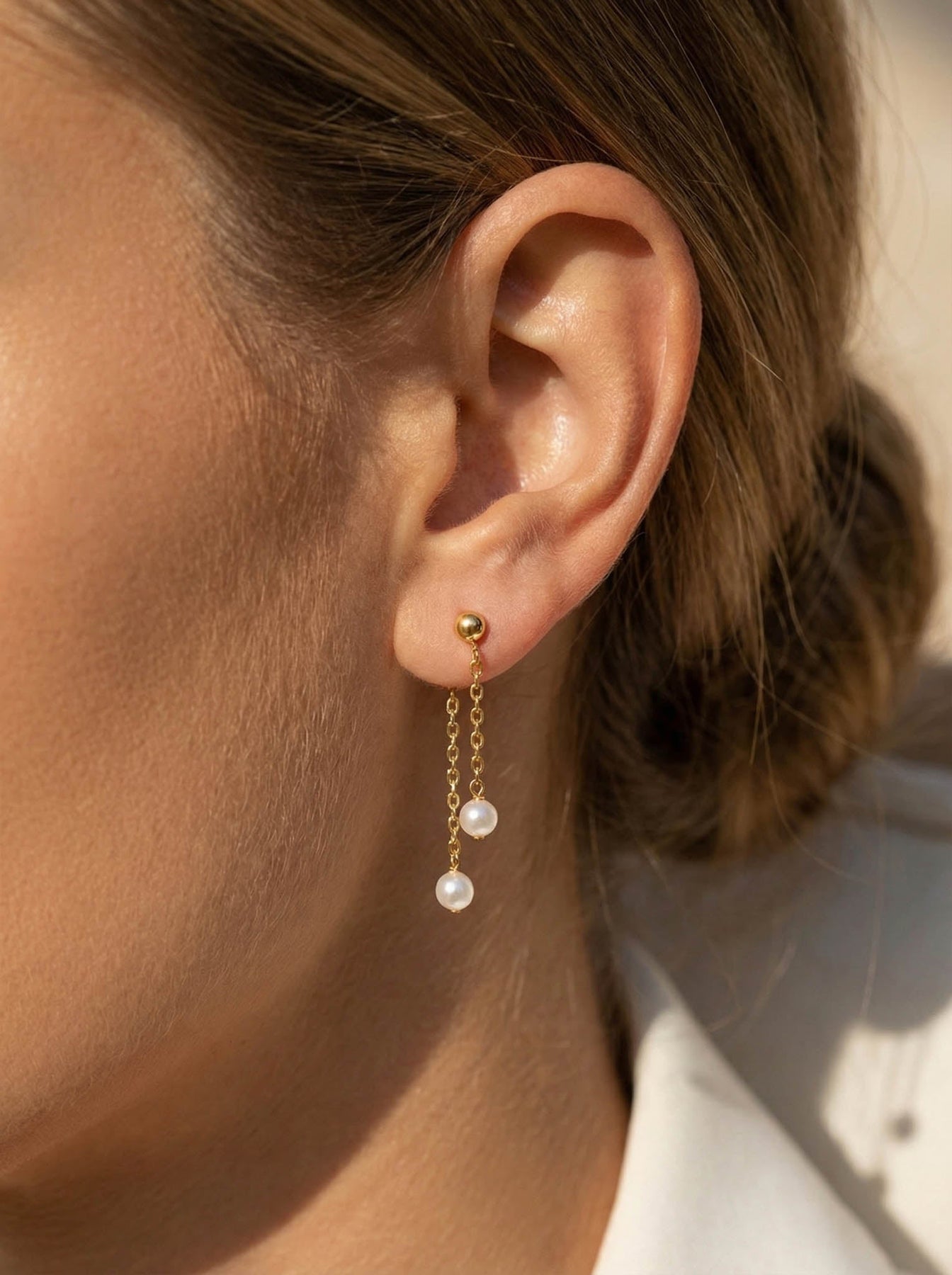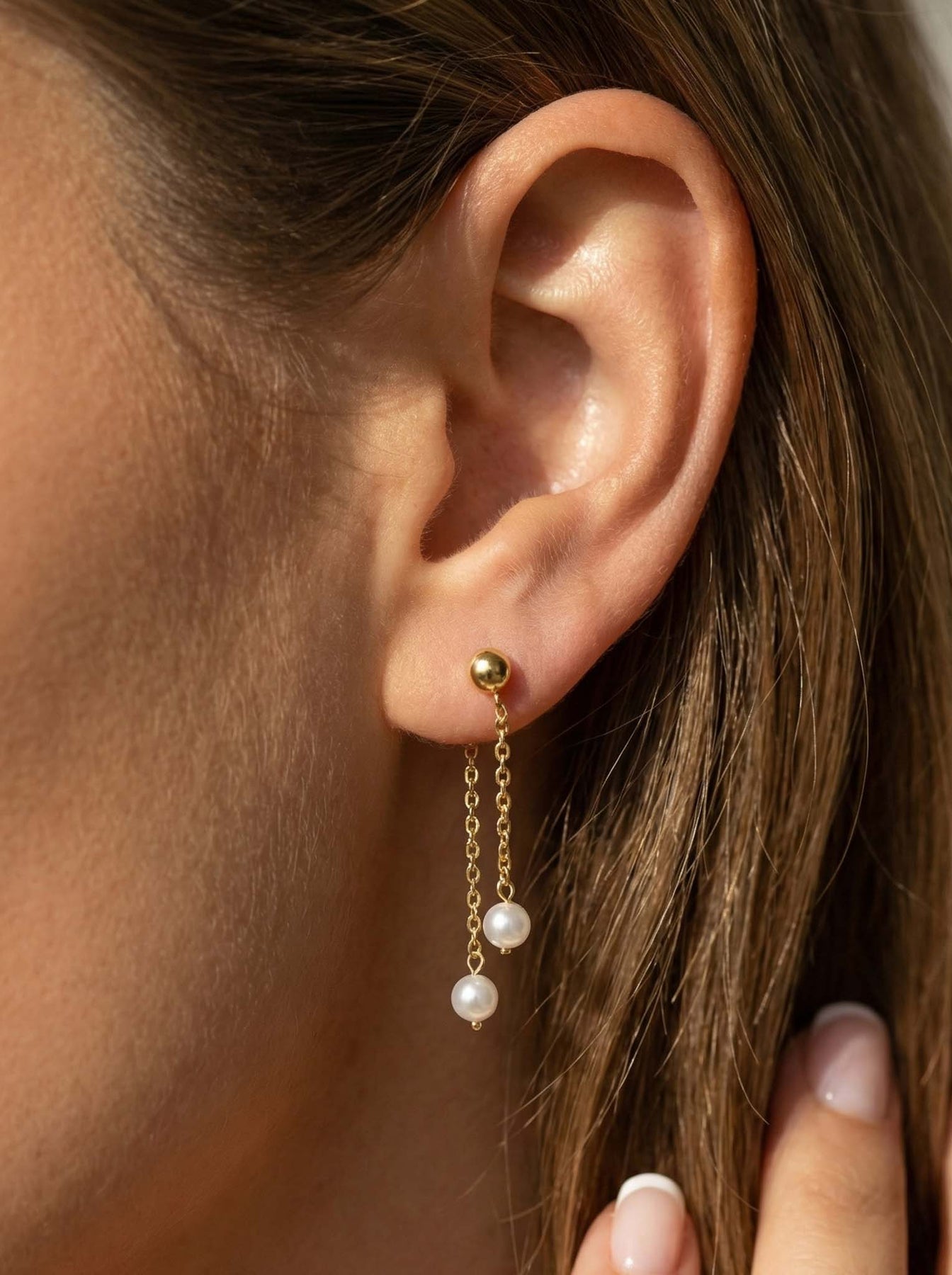 Enhance your everyday style with these chic Pearl Chain Drop Earrings crafted from genuine 925 sterling silver. Featuring a delicate gold-plated finish and two natural freshwater pearls suspended from fine chains, these earrings offer a graceful, lightweight movement that beautifully catches the light.