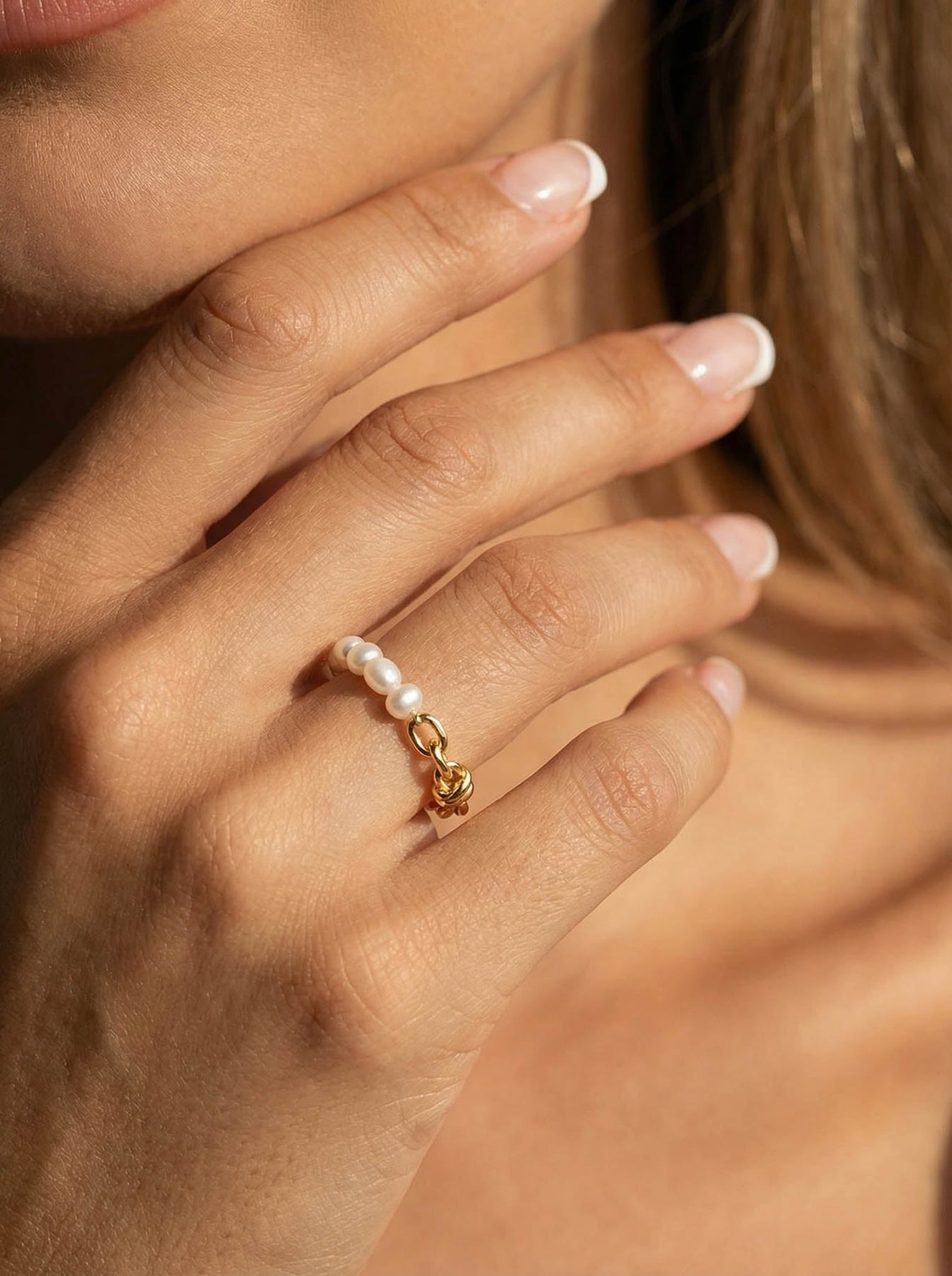 This Pearl Chain Ring brings together elegance and modern design in one delicate piece. Crafted from high-quality 925 sterling silver and plated in a luxurious gold finish, the ring features a unique combination of a dainty chain band and natural freshwater pearls. Its flexible chain structure offers a comfortable, adjustable fit while adding a soft, feminine touch to any look.