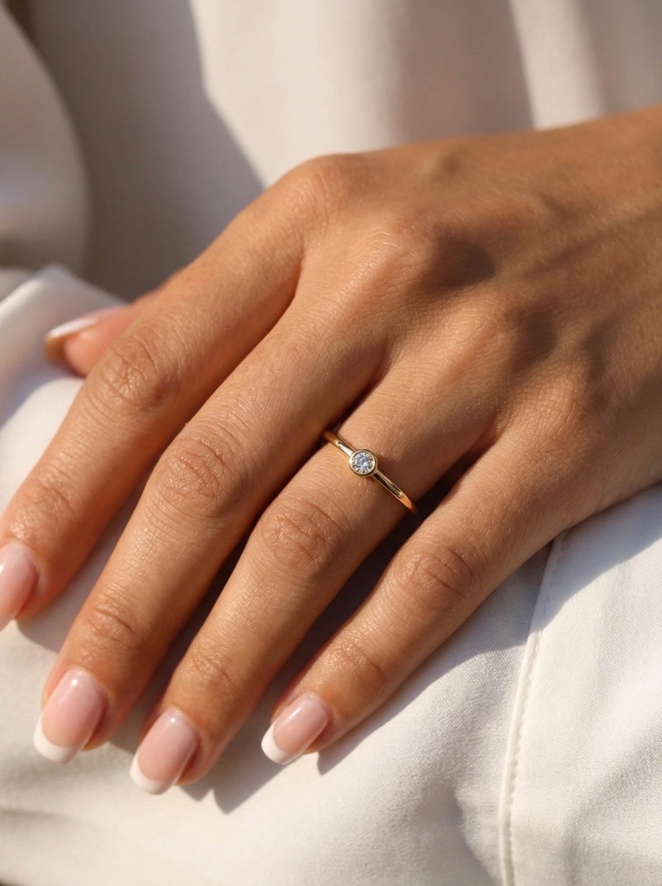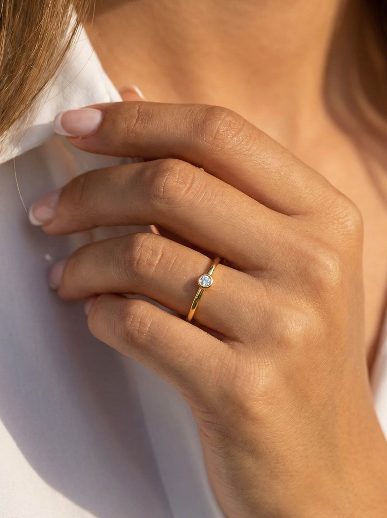 This Ring With Dainty Diamond is the perfect blend of minimal elegance and everyday sparkle. Crafted from high-quality 925 sterling silver, it features a single bezel-set cubic zirconia stone that adds a subtle shine while keeping the look clean and refined.