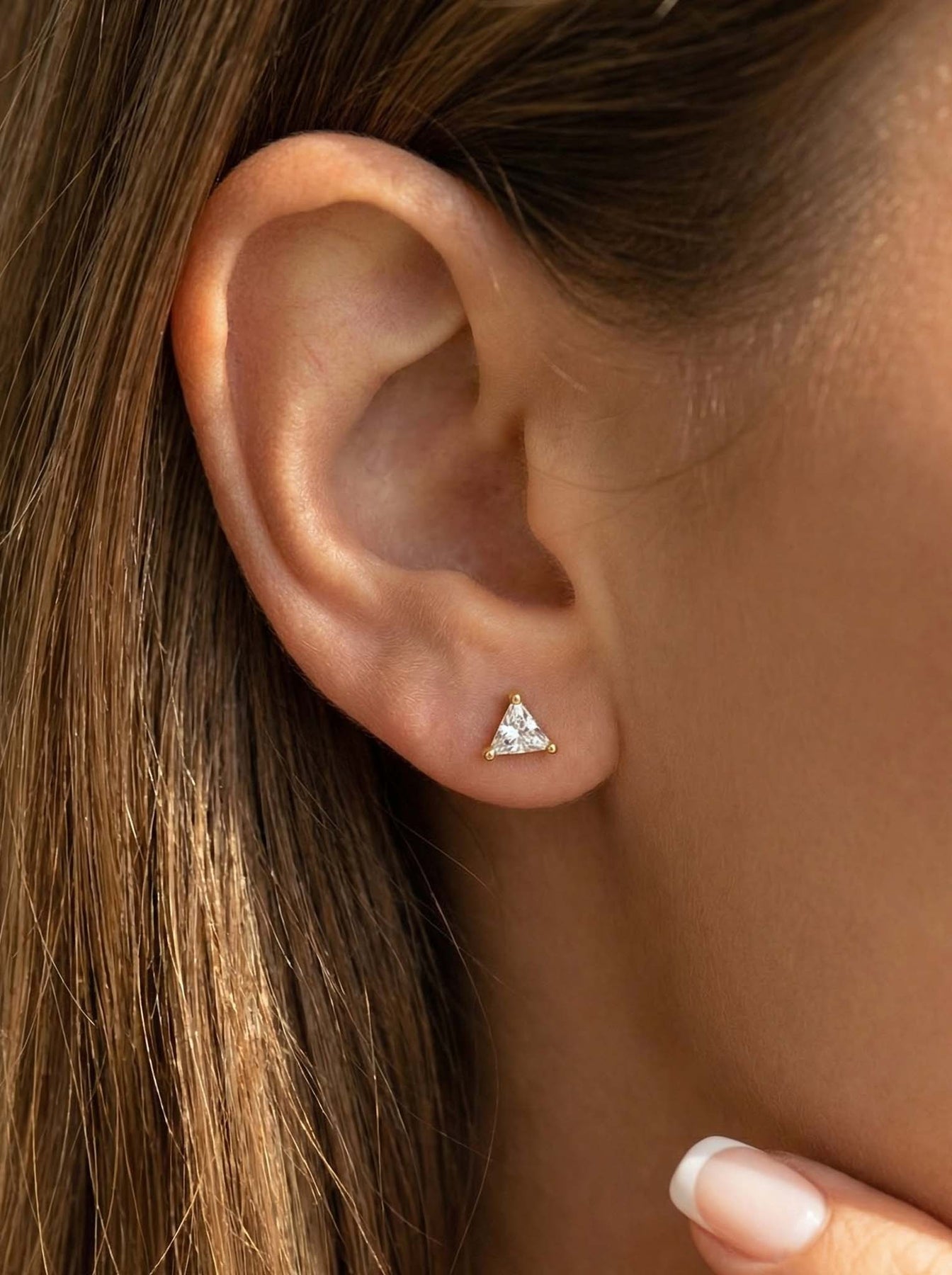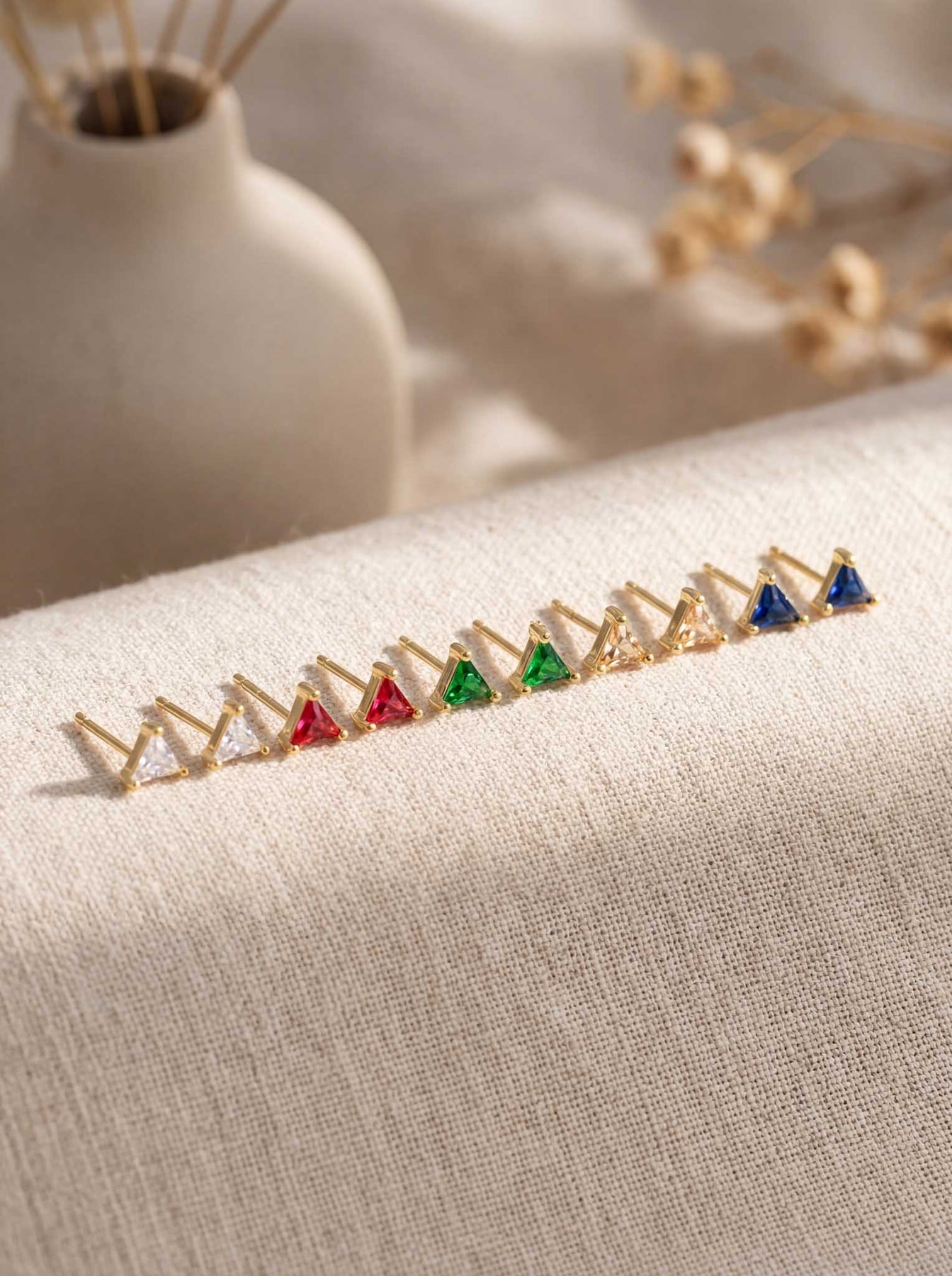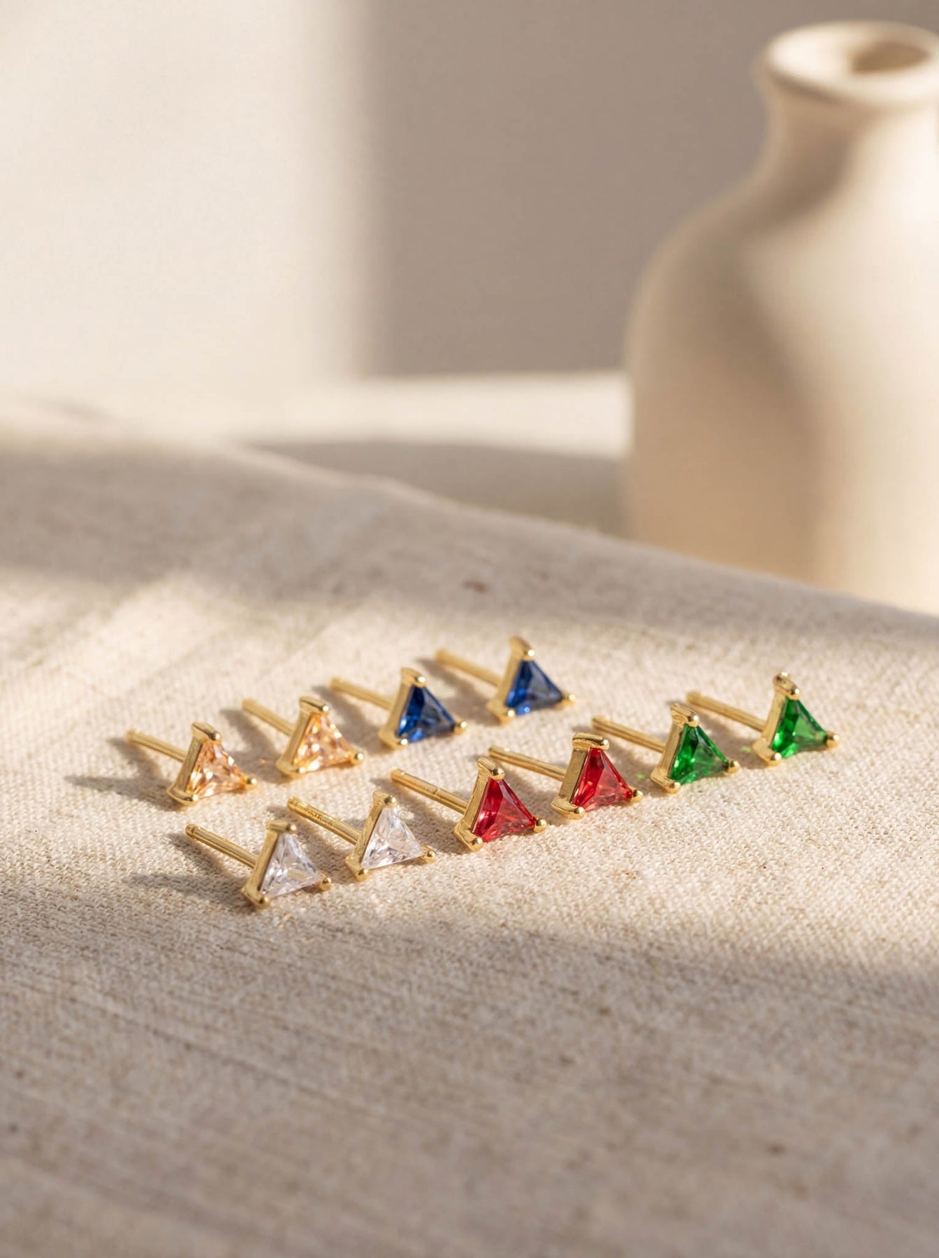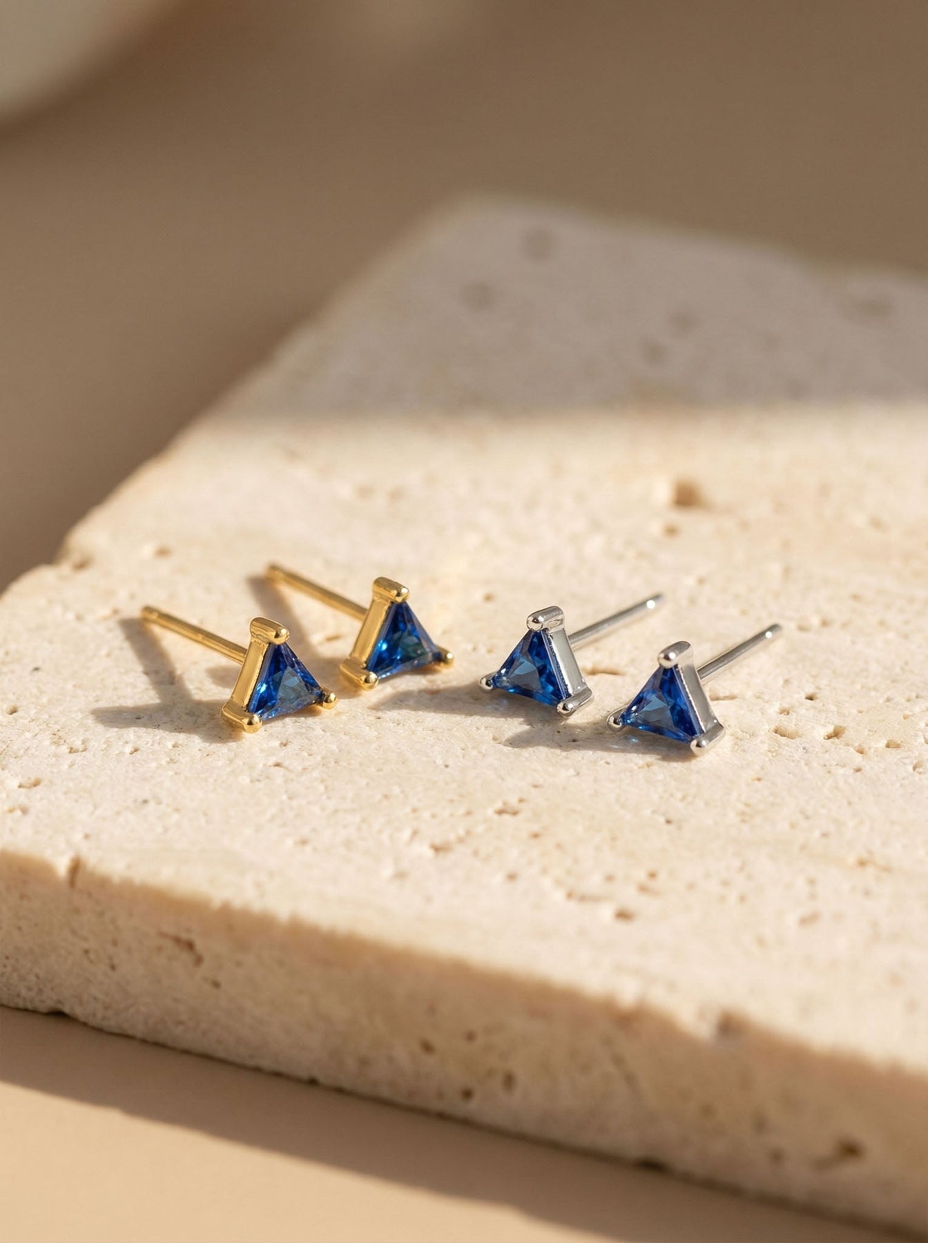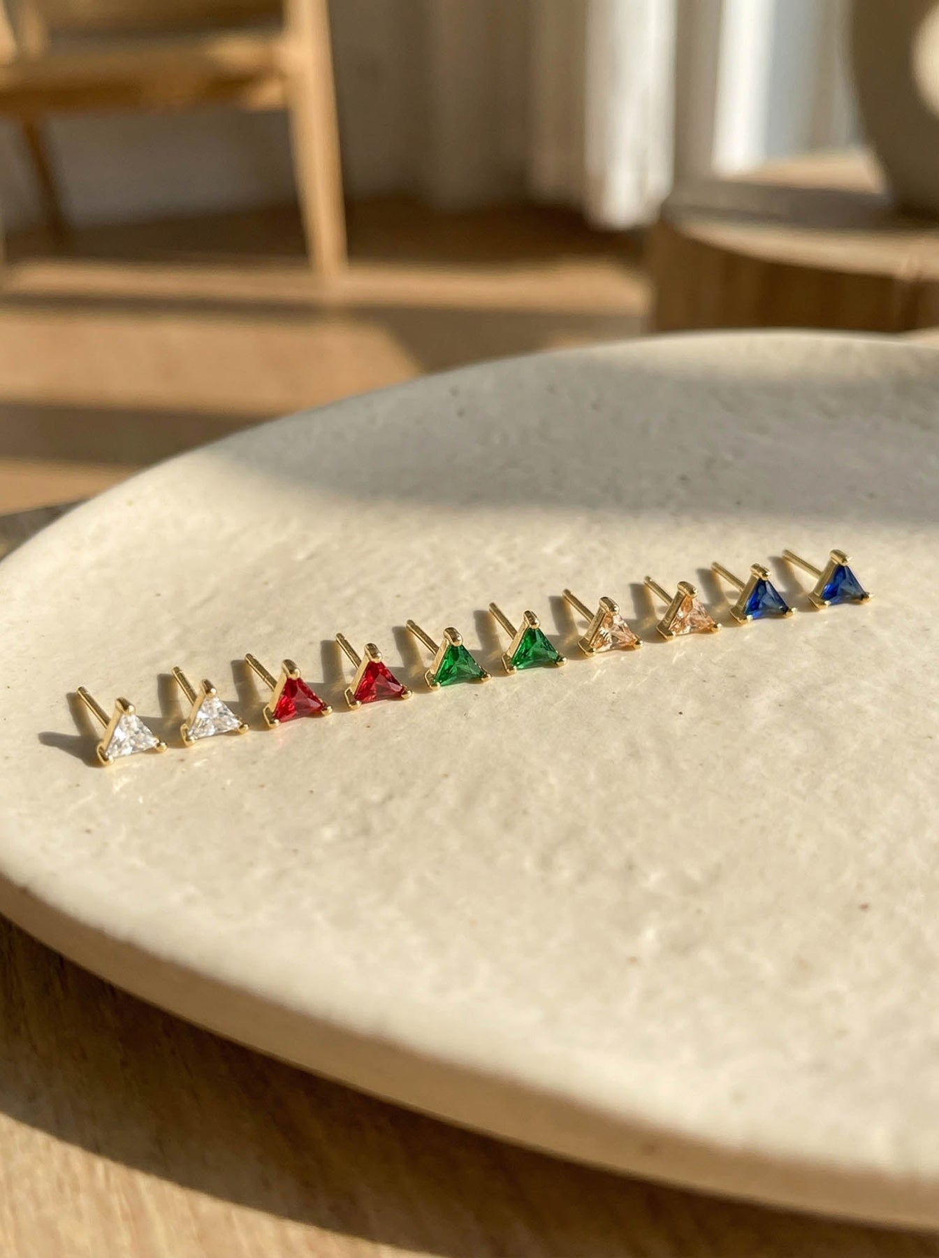 These Small Triangle Stud Earrings offer a chic and modern touch to any look. Crafted from high-quality 925 sterling silver and finished with durable gold plating, each stud features a tiny triangle-shaped gemstone that adds a subtle pop of color and elegance.