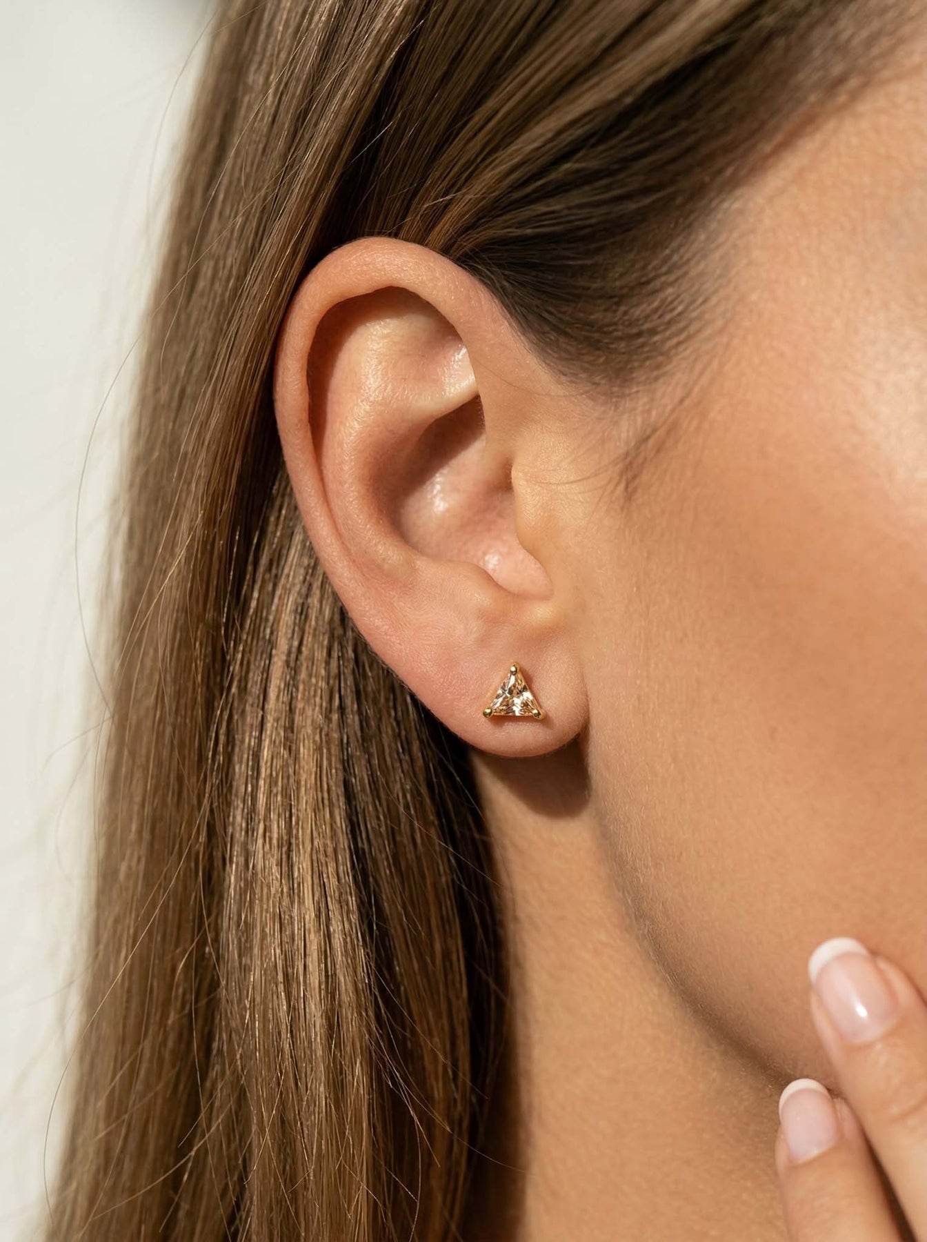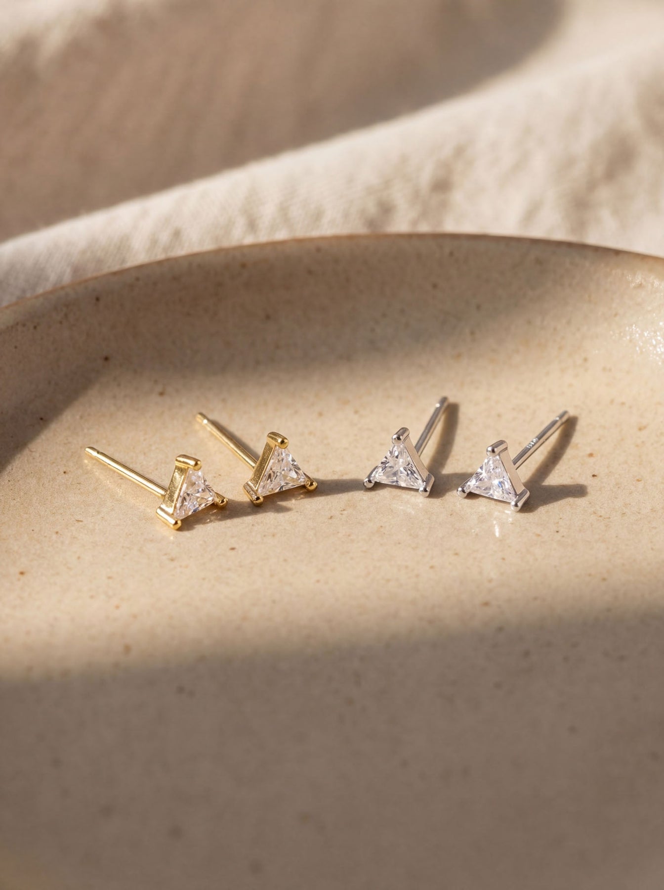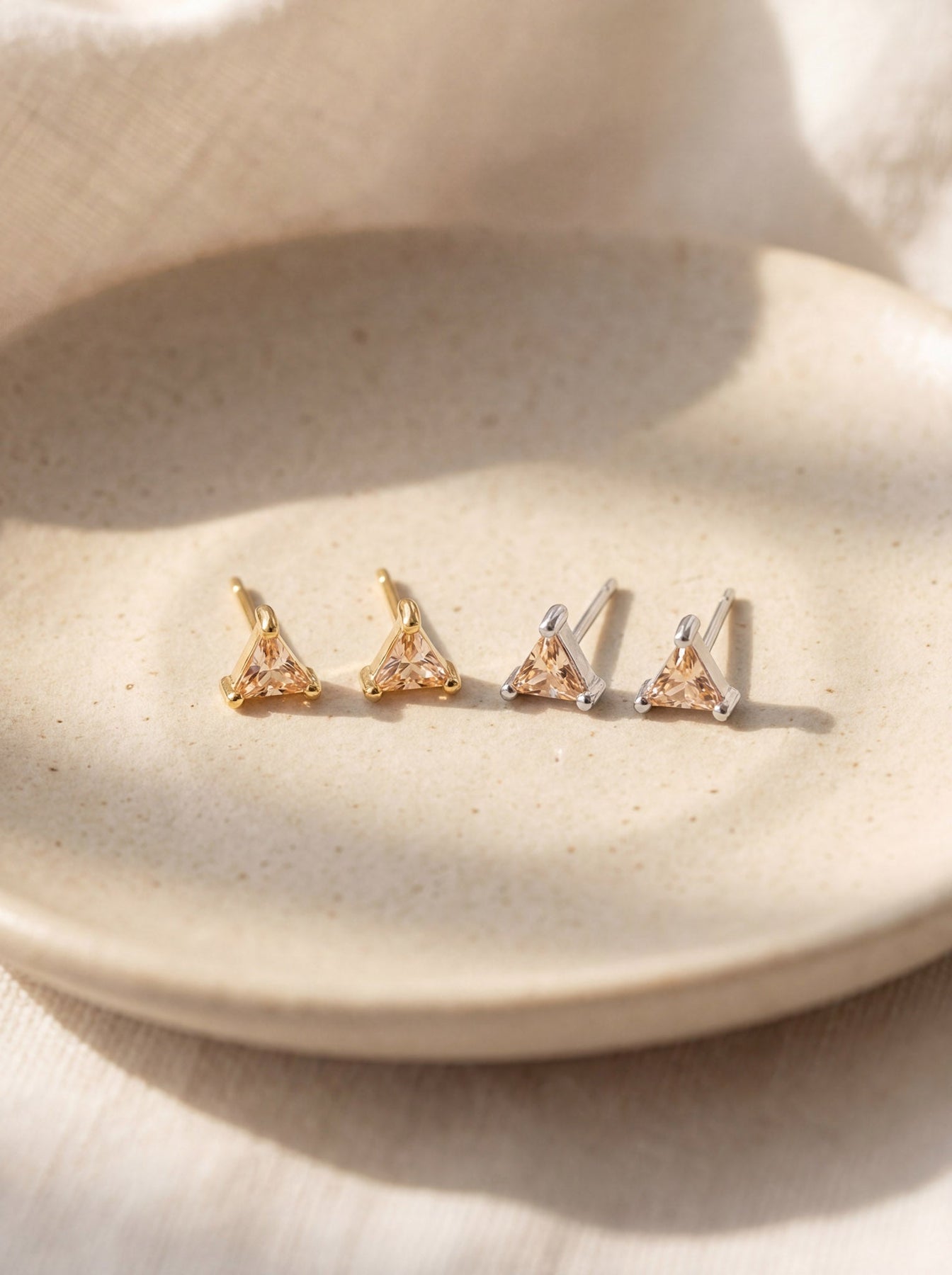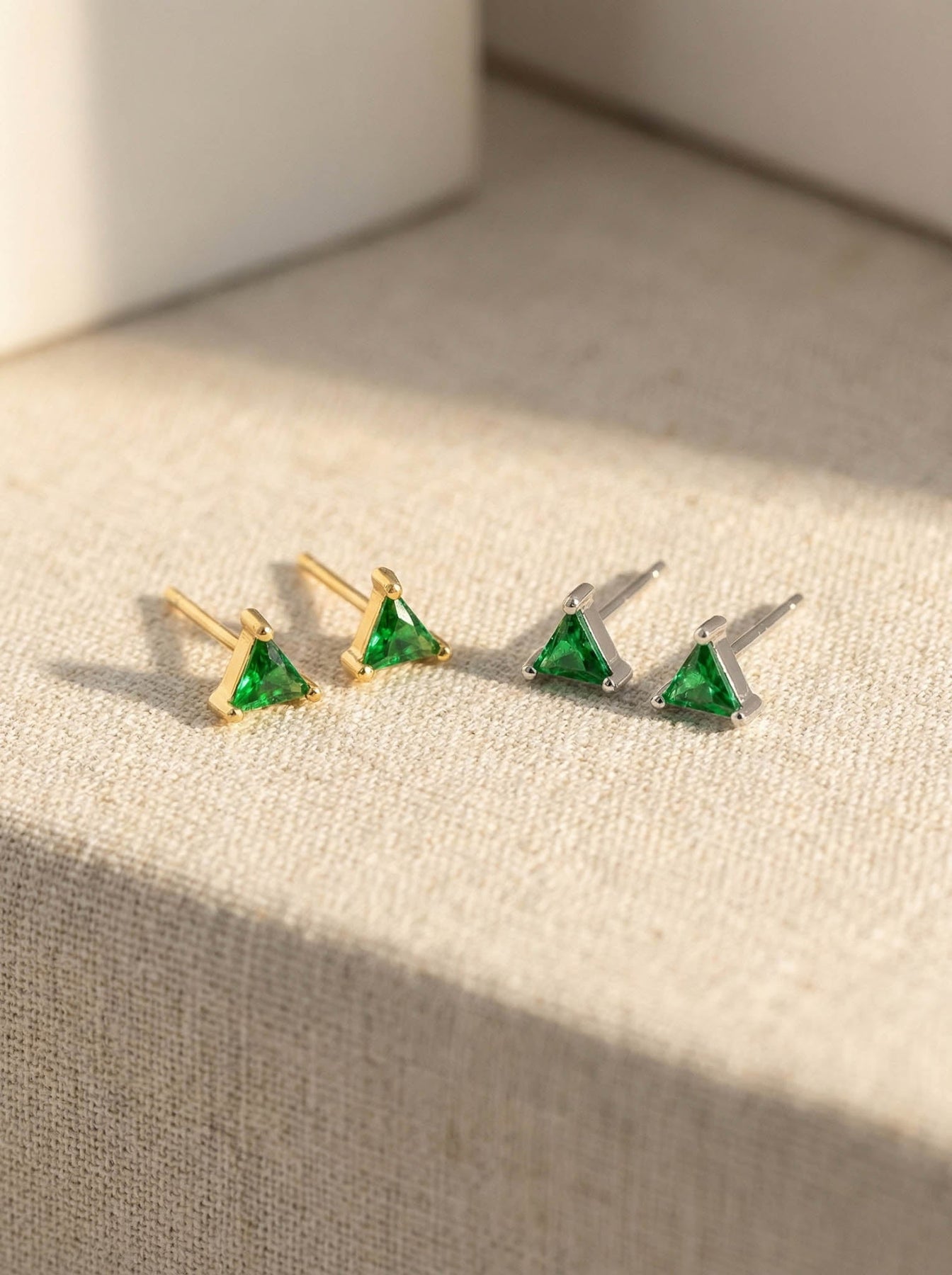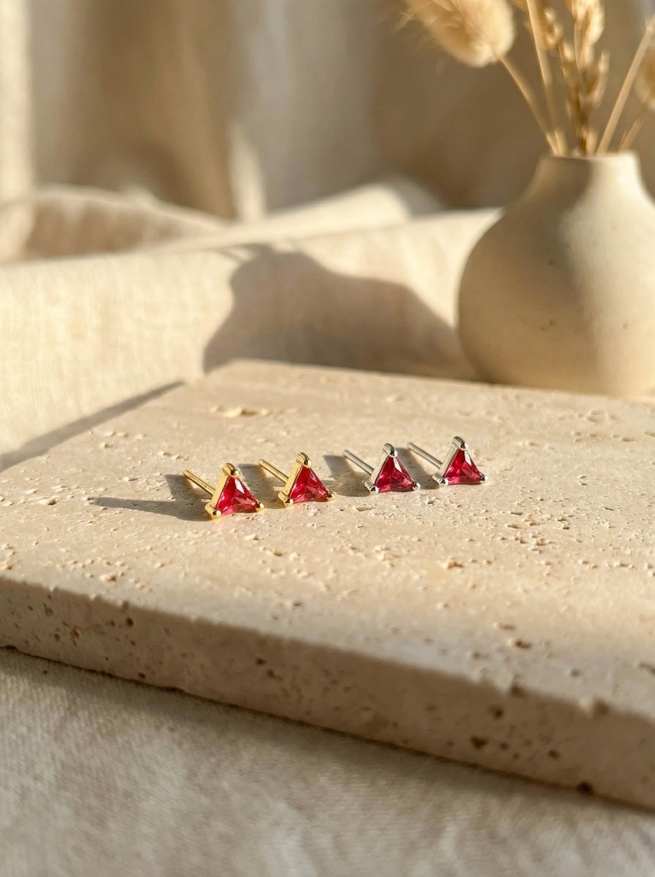 These Small Triangle Stud Earrings offer a chic and modern touch to any look. Crafted from high-quality 925 sterling silver and finished with durable gold plating, each stud features a tiny triangle-shaped gemstone that adds a subtle pop of color and elegance.