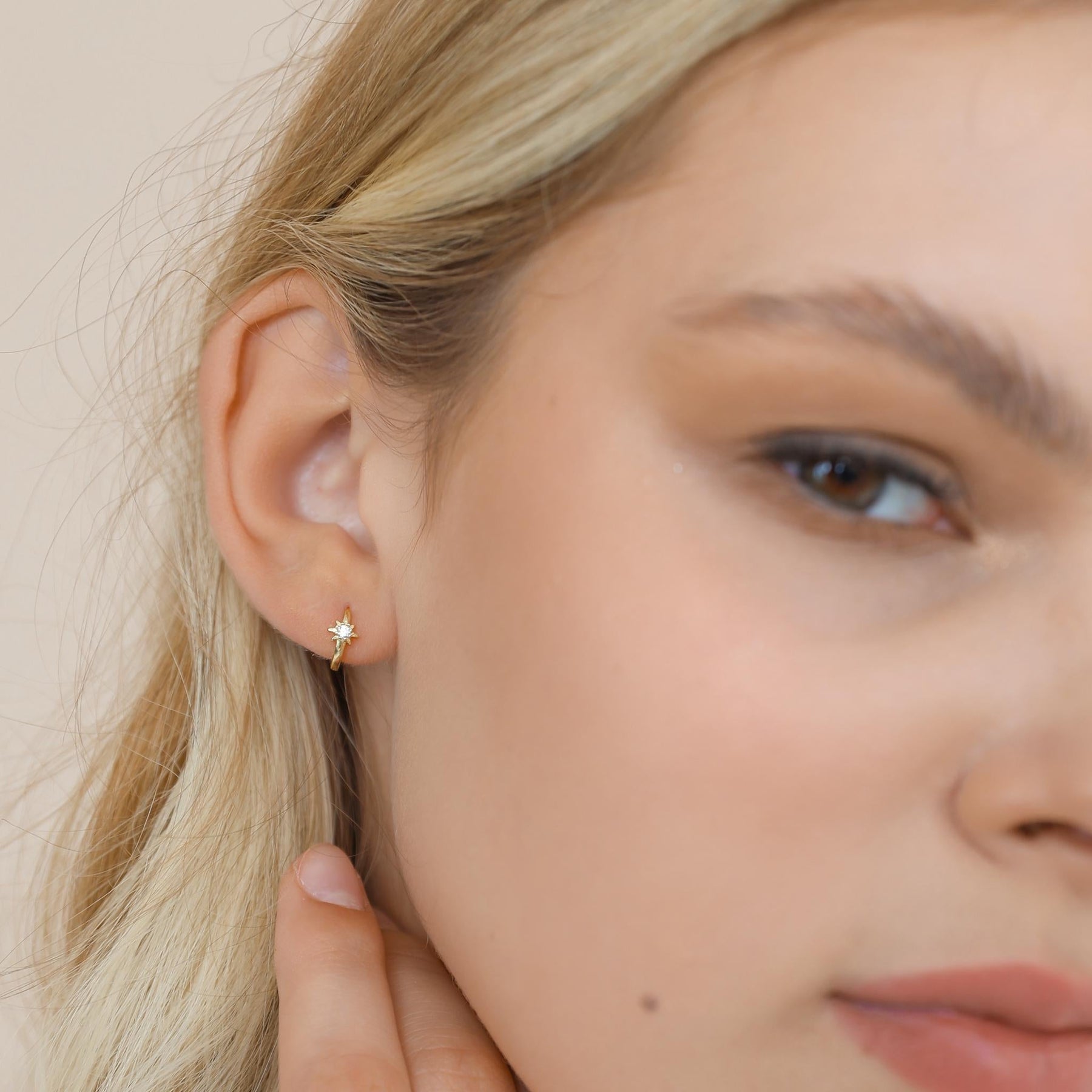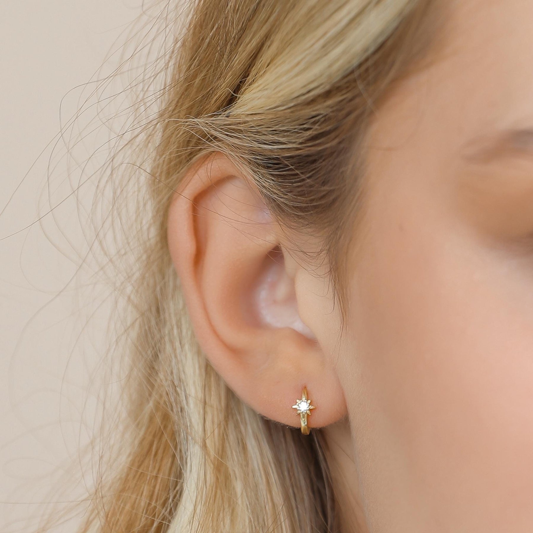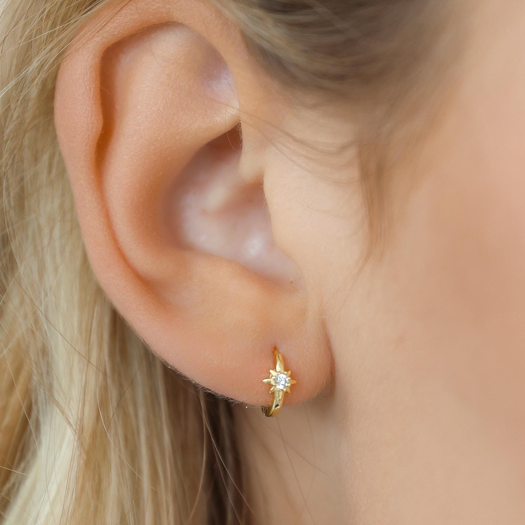 These Star Hoop Earrings with Zirconia are crafted from premium 925 sterling silver and finished with high-quality gold plating for a warm, radiant shine. Each hoop features a delicate star-shaped charm set with a sparkling cubic zirconia stone, adding a touch of celestial elegance to your everyday look.
