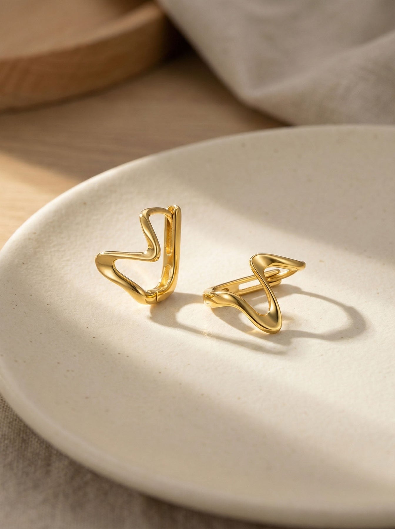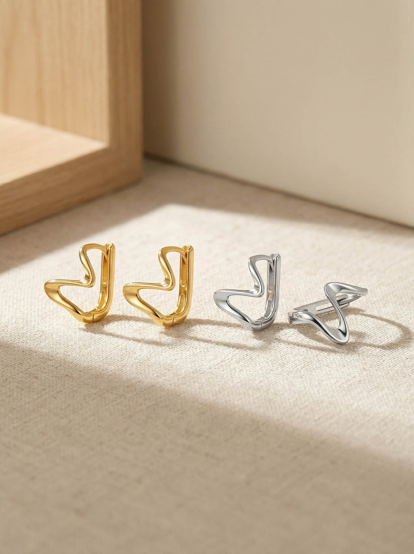 These Wave Hoop Earrings bring a fresh, modern twist to classic hoops with their elegant flowing silhouette. Expertly crafted from high-quality 925 sterling silver and finished with a durable gold plating, they feature a smooth wave design that gently curves around the ear for a chic, minimalist look.