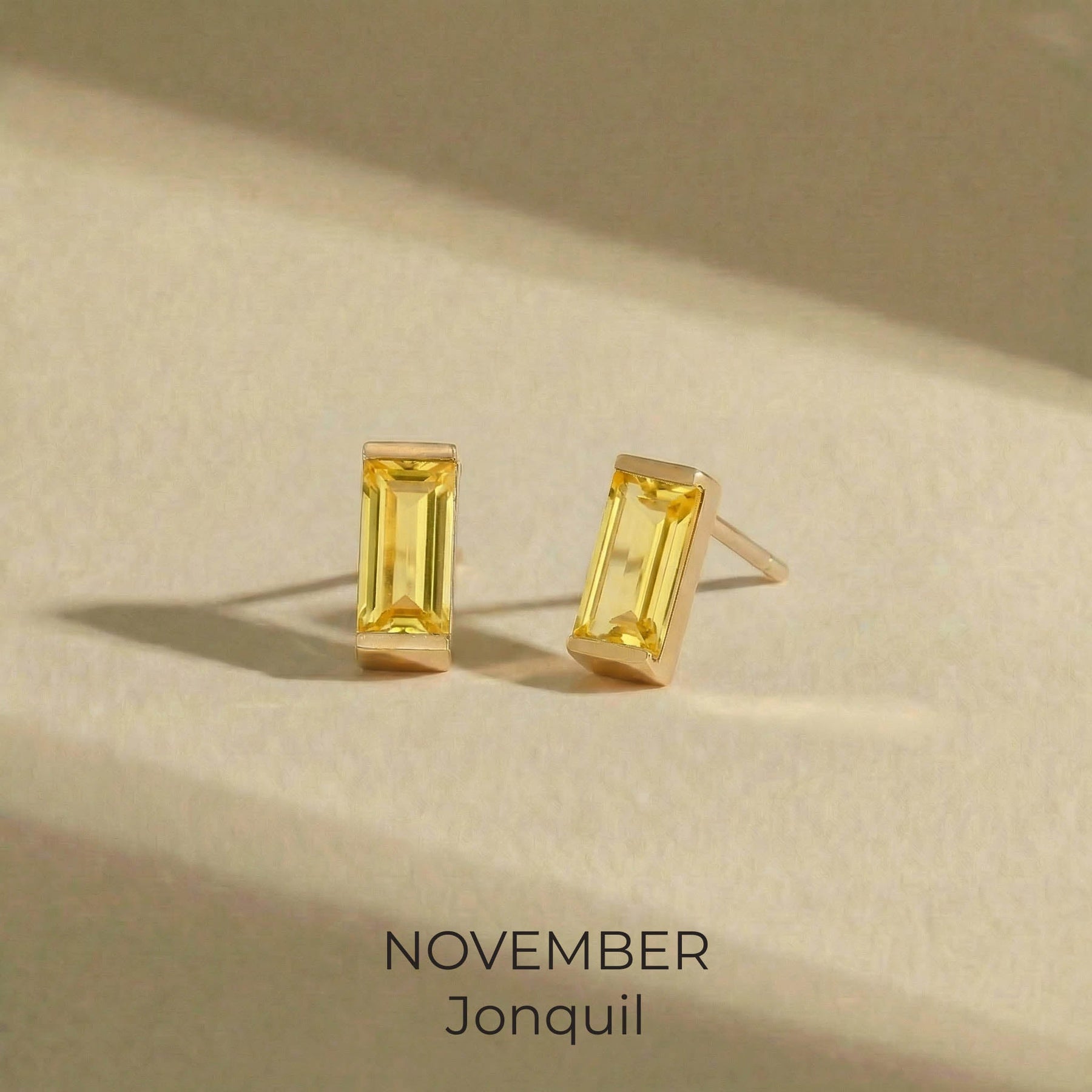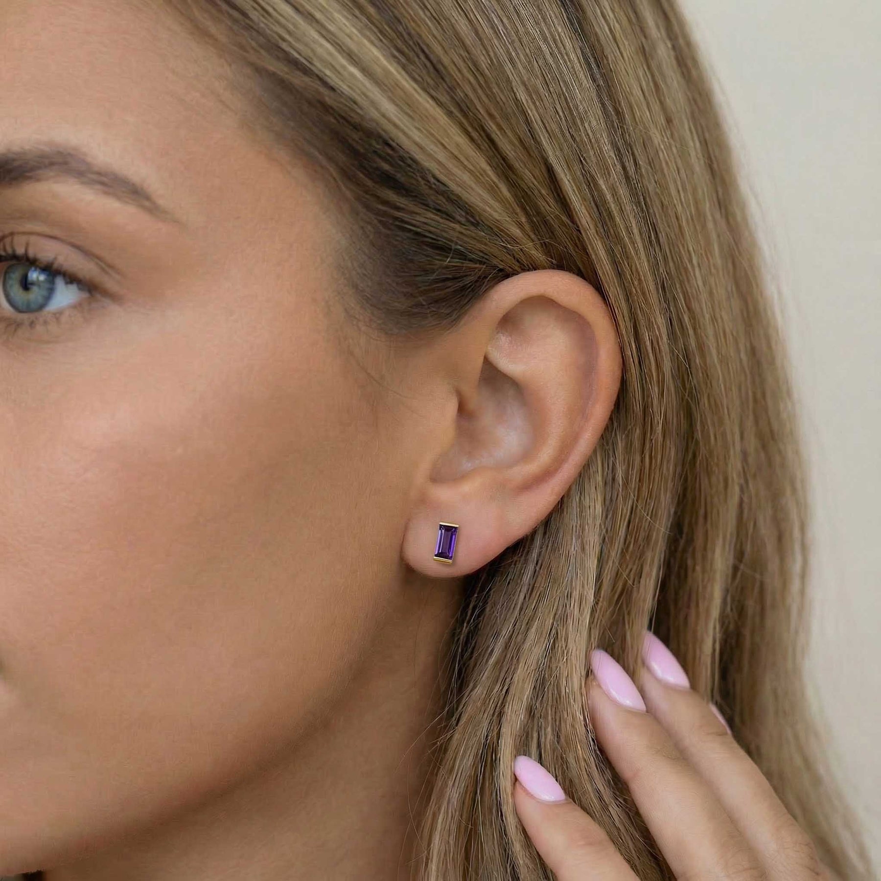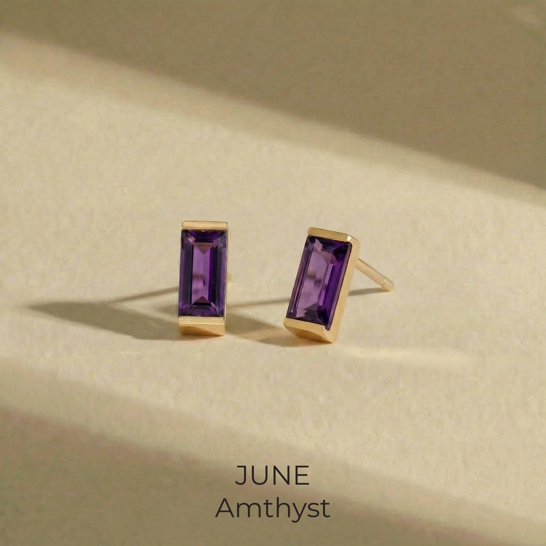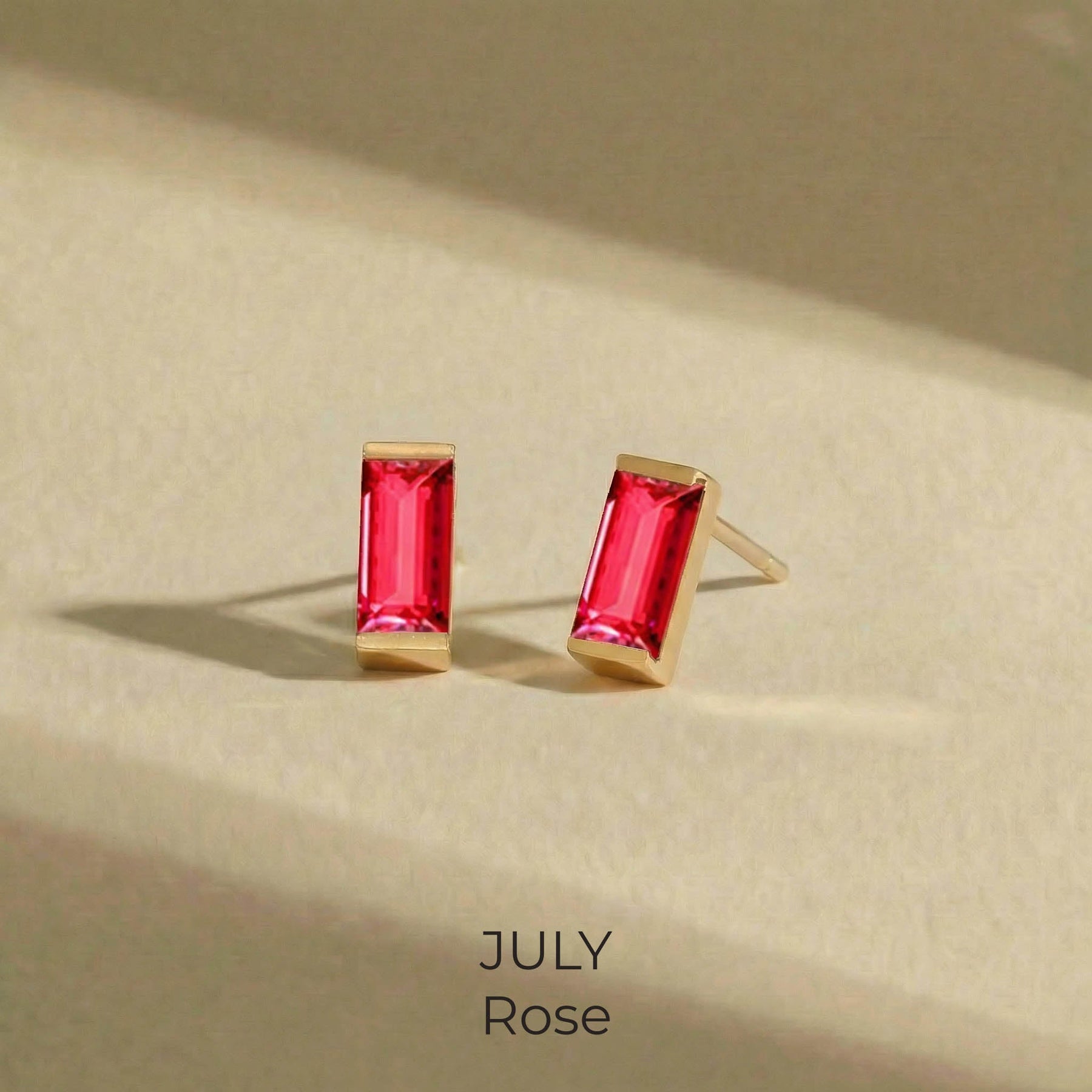 Bold simplicity meets timeless elegance in our Baguette Birthstone Studs. Featuring sleek, rectangular-cut stones in a rich spectrum of birthstone hues, each stud is set in a polished gold-plated bezel for a clean, modern finish. Whether you're marking your birth month or simply drawn to the vibrant color, these earrings offer a refined pop of personality.