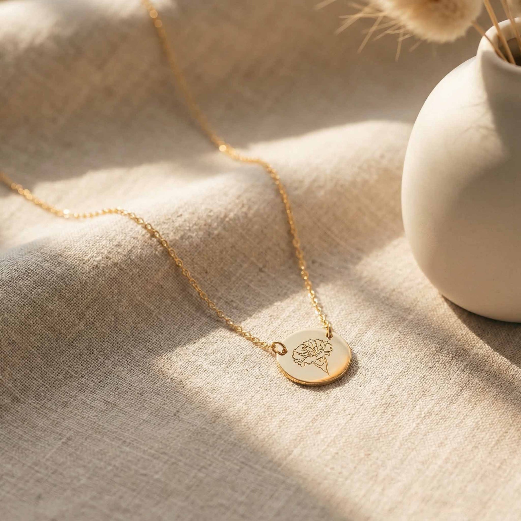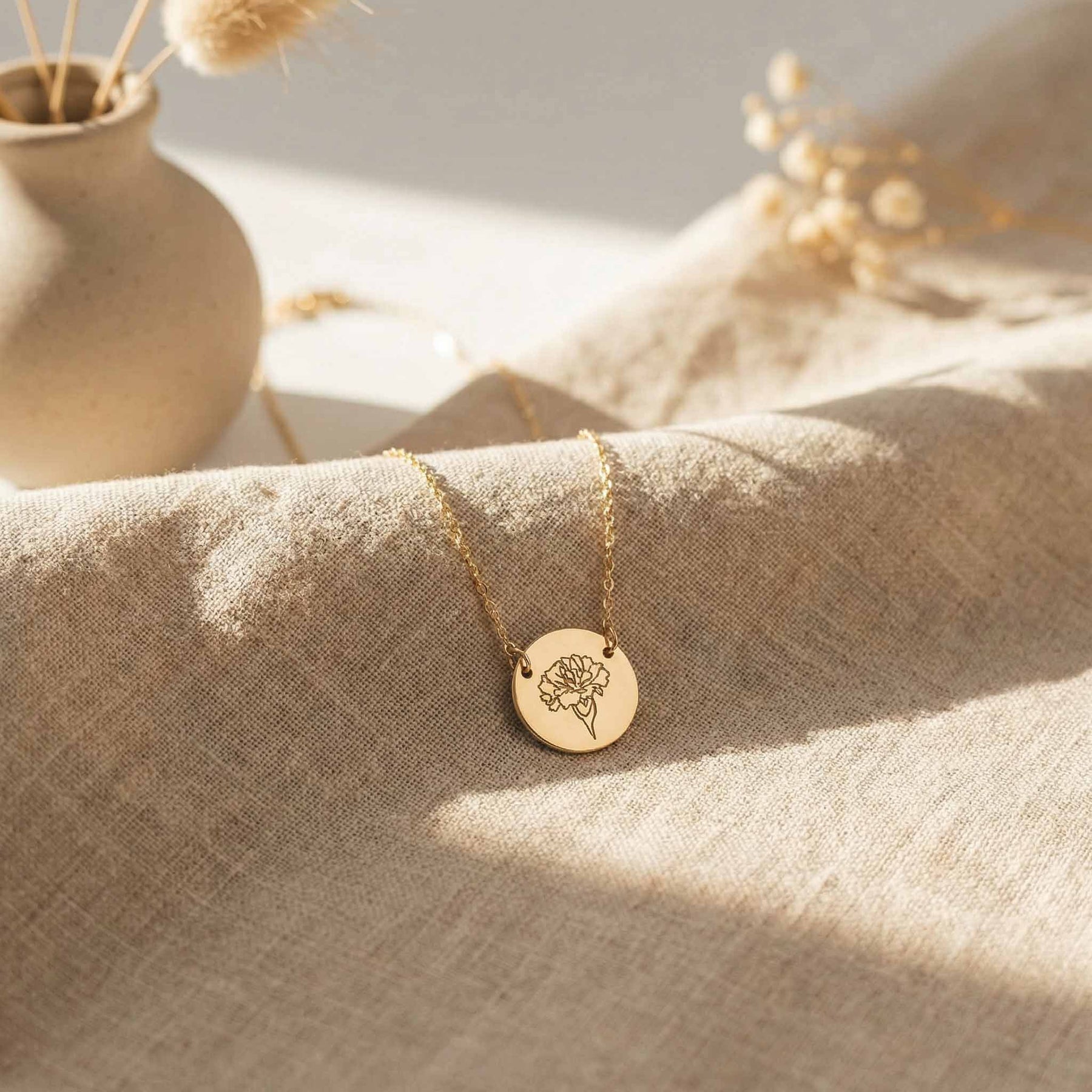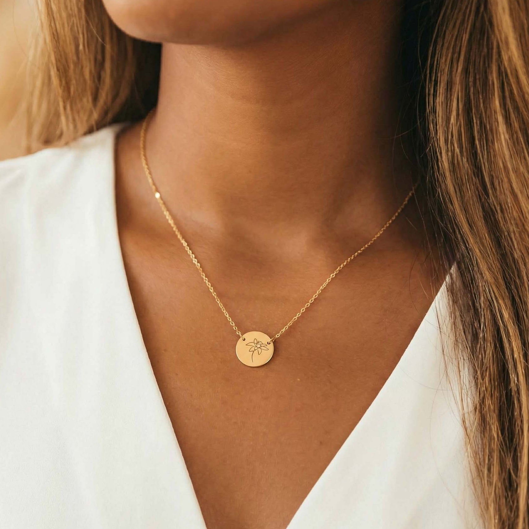 Personalized Birth Flower Necklace Ana, choose from 12 different flowers! It's great for layering, a wonderful minimalist piece. It's a unique and meaningful gift to anyone.