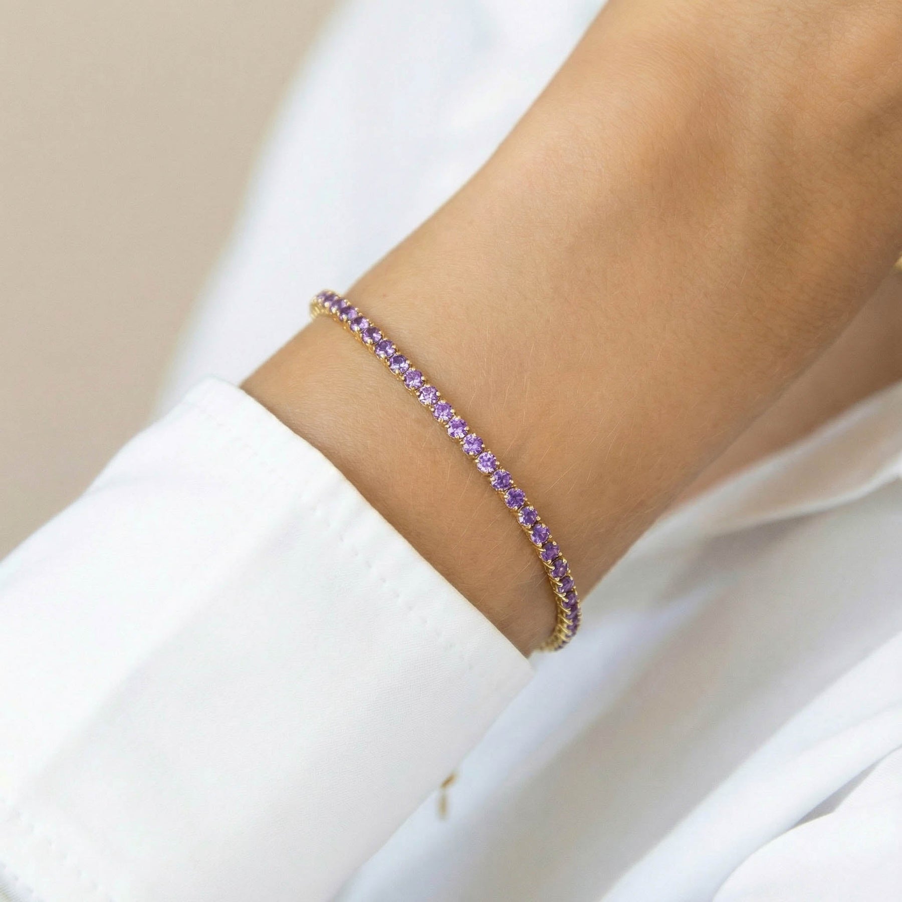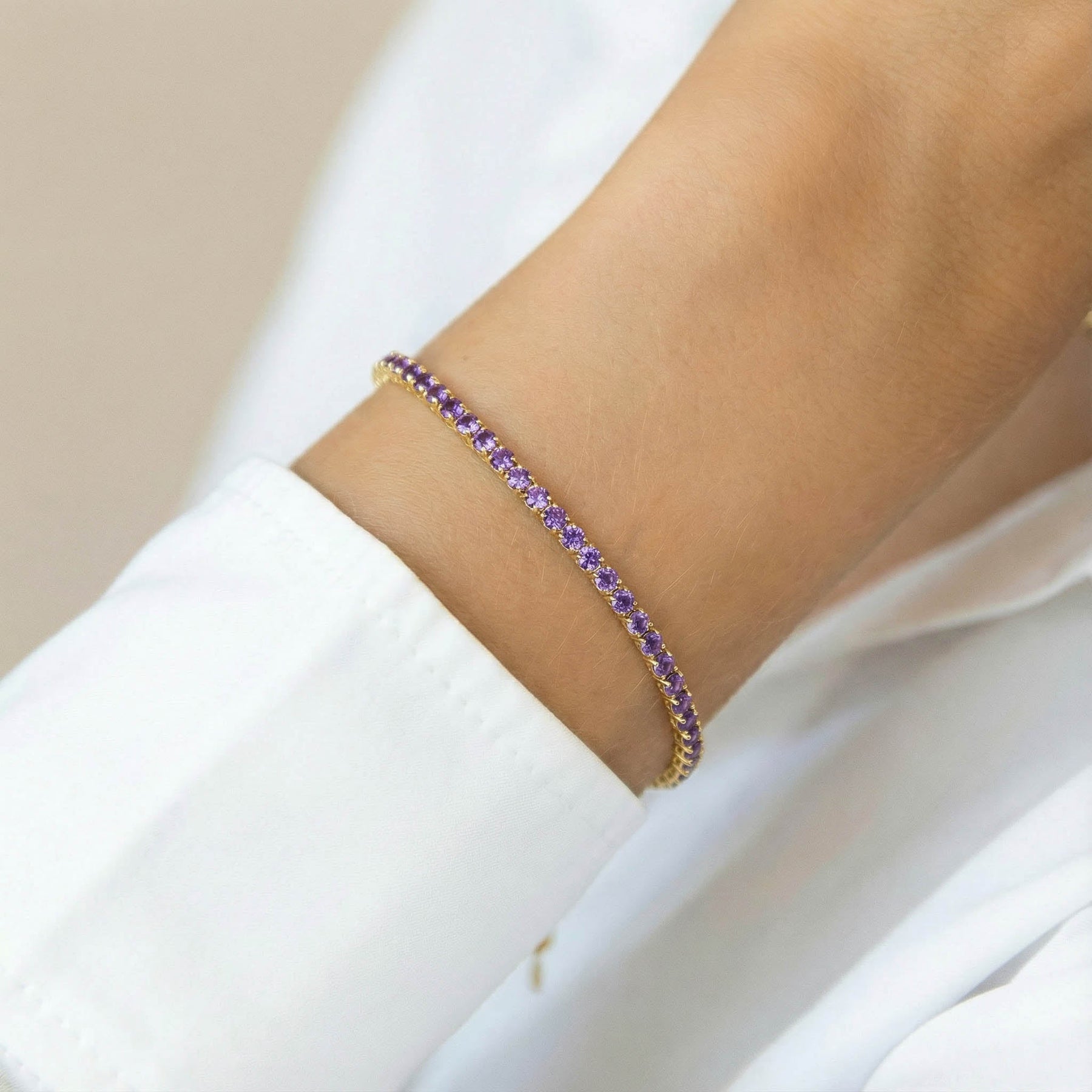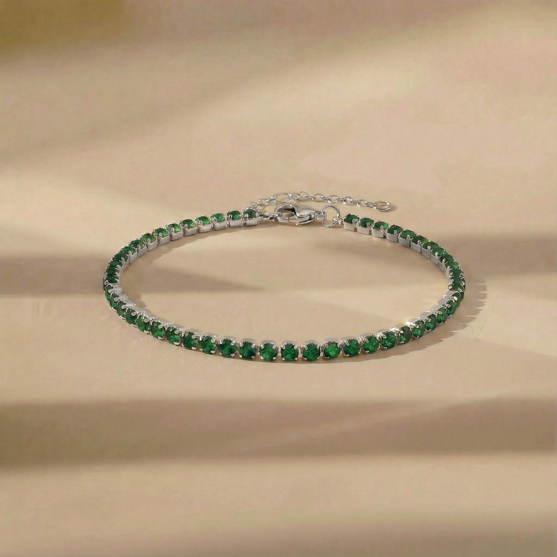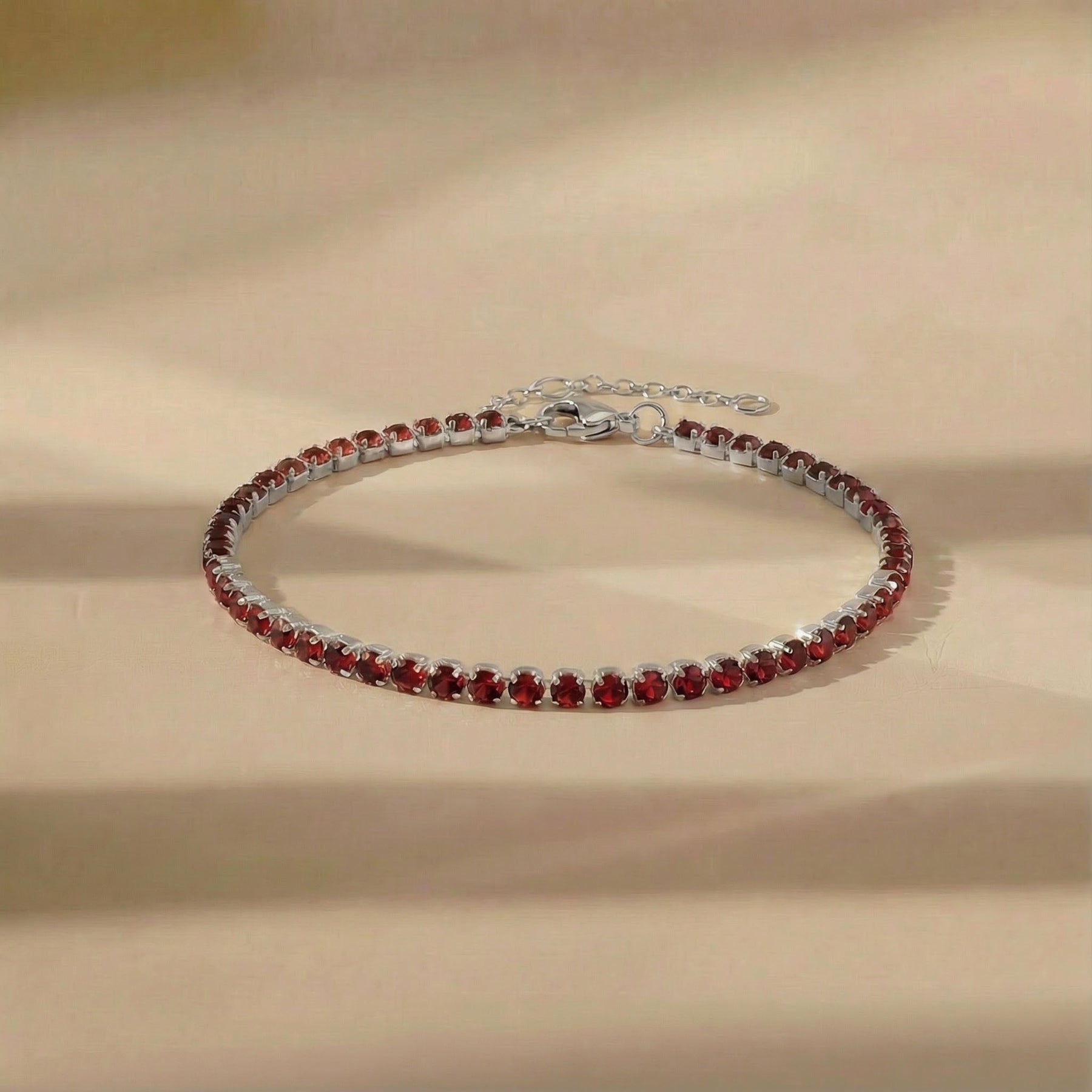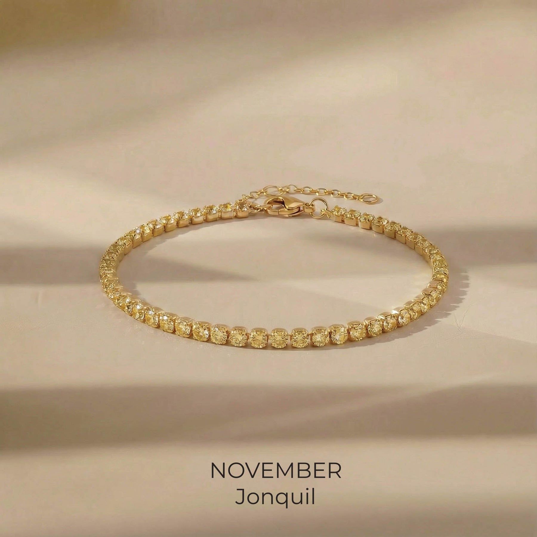 This Birthstone Tennis Bracelet is a timeless piece designed to be worn every day and cherished forever. Set with perfectly aligned, shimmering birthstone crystals, it catches the light beautifully while keeping a refined, delicate look on the wrist.