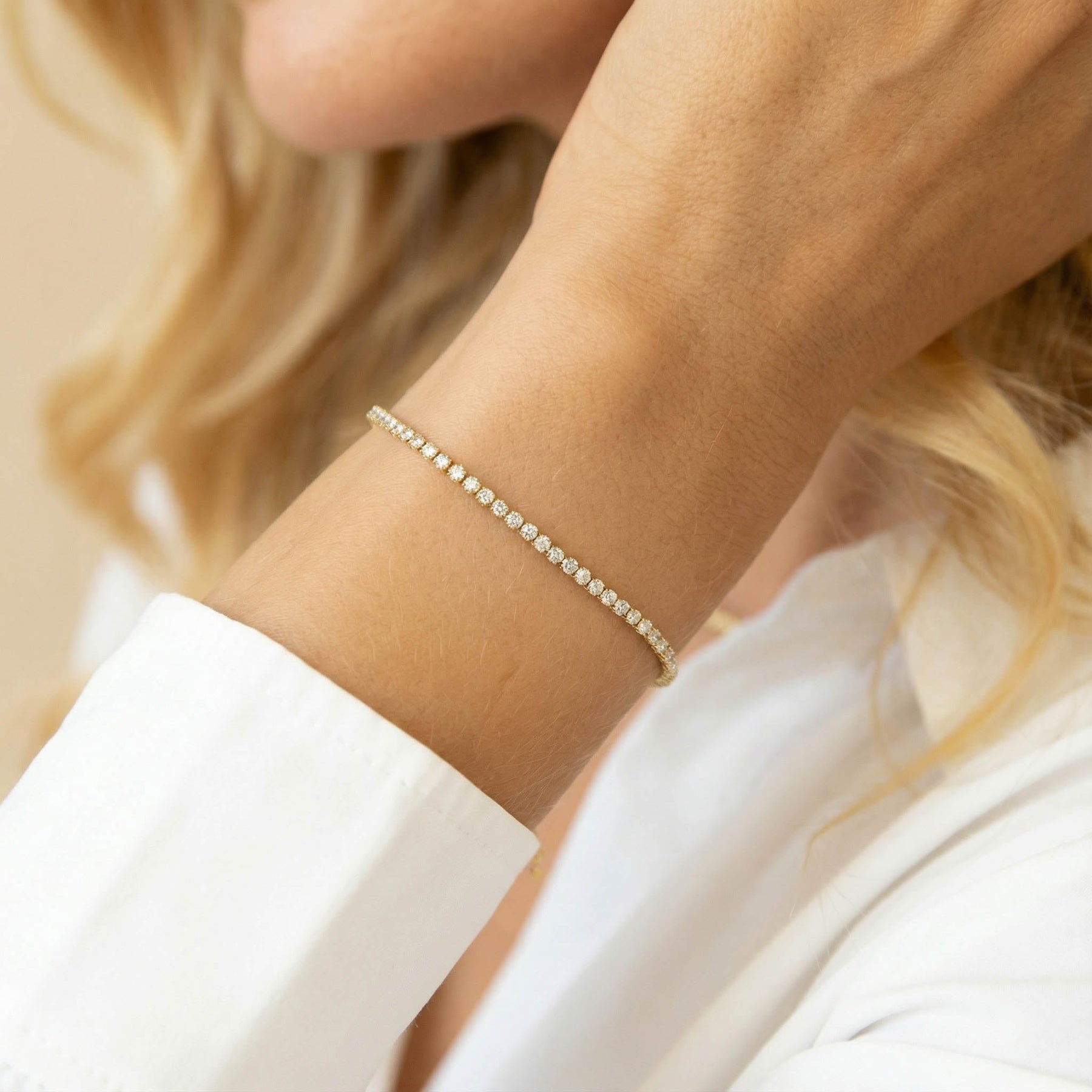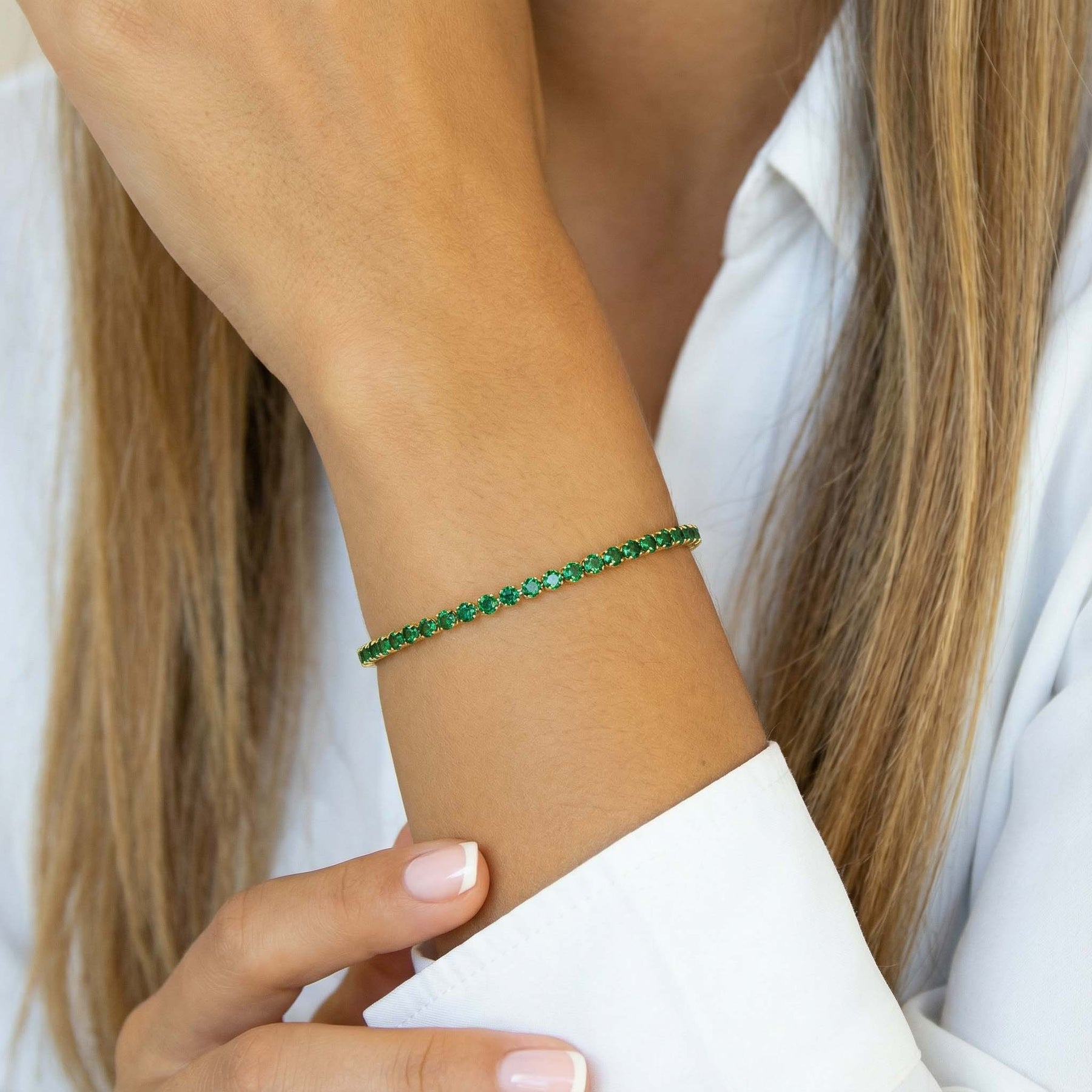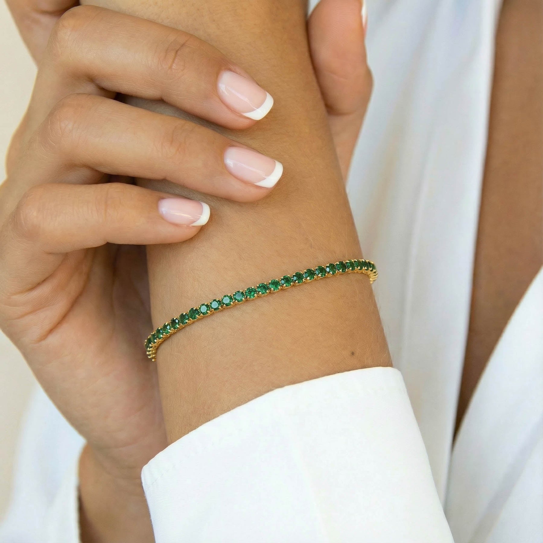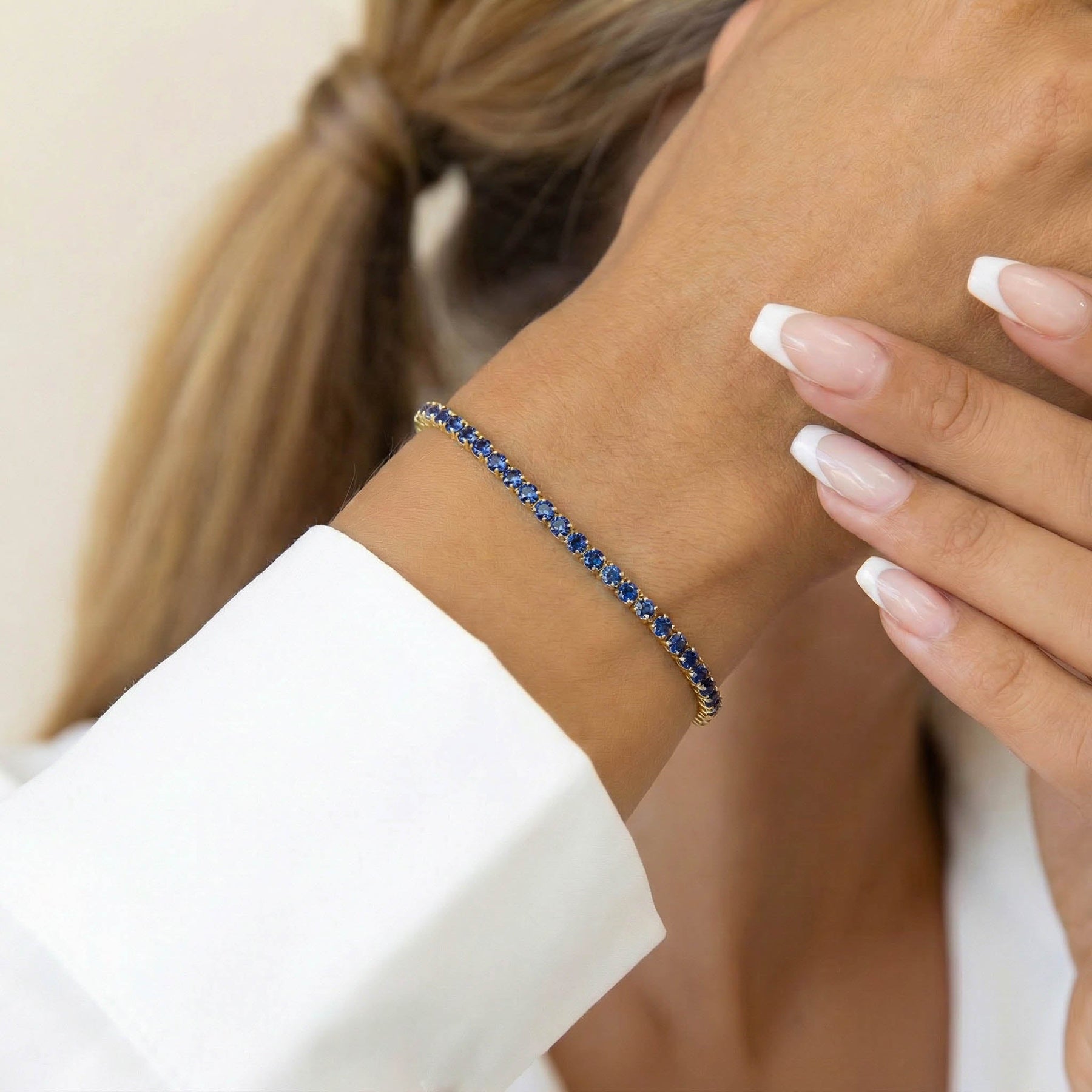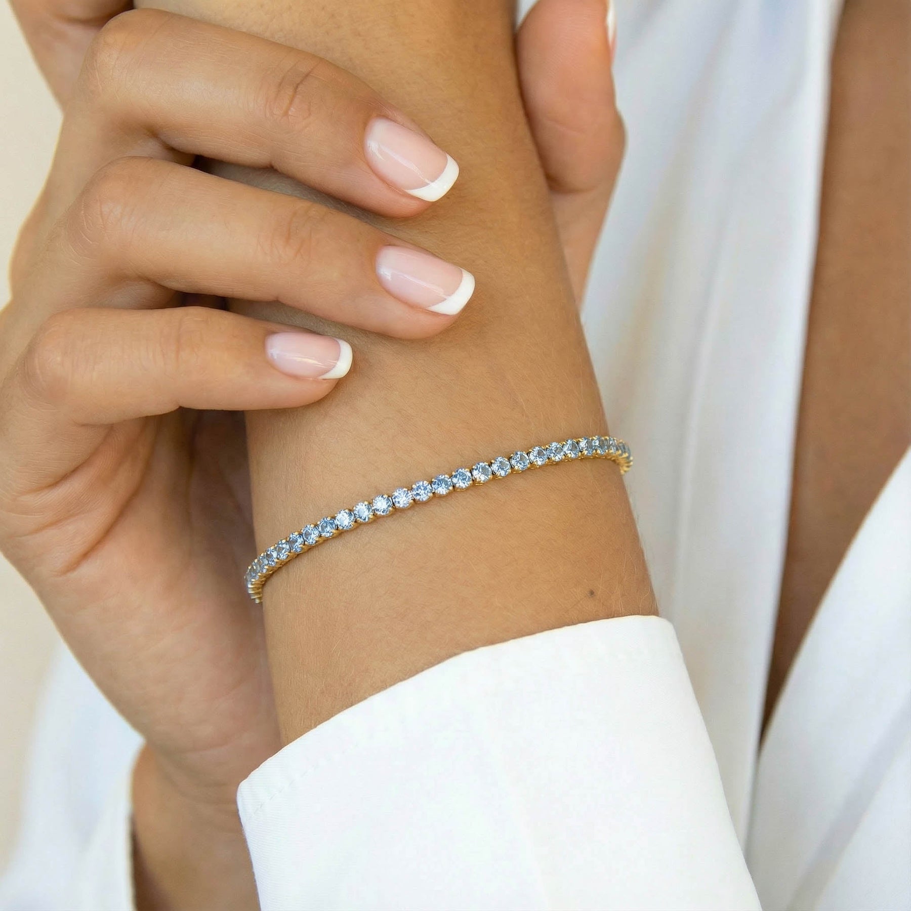 This Birthstone Tennis Bracelet is a timeless piece designed to be worn every day and cherished forever. Set with perfectly aligned, shimmering birthstone crystals, it catches the light beautifully while keeping a refined, delicate look on the wrist.