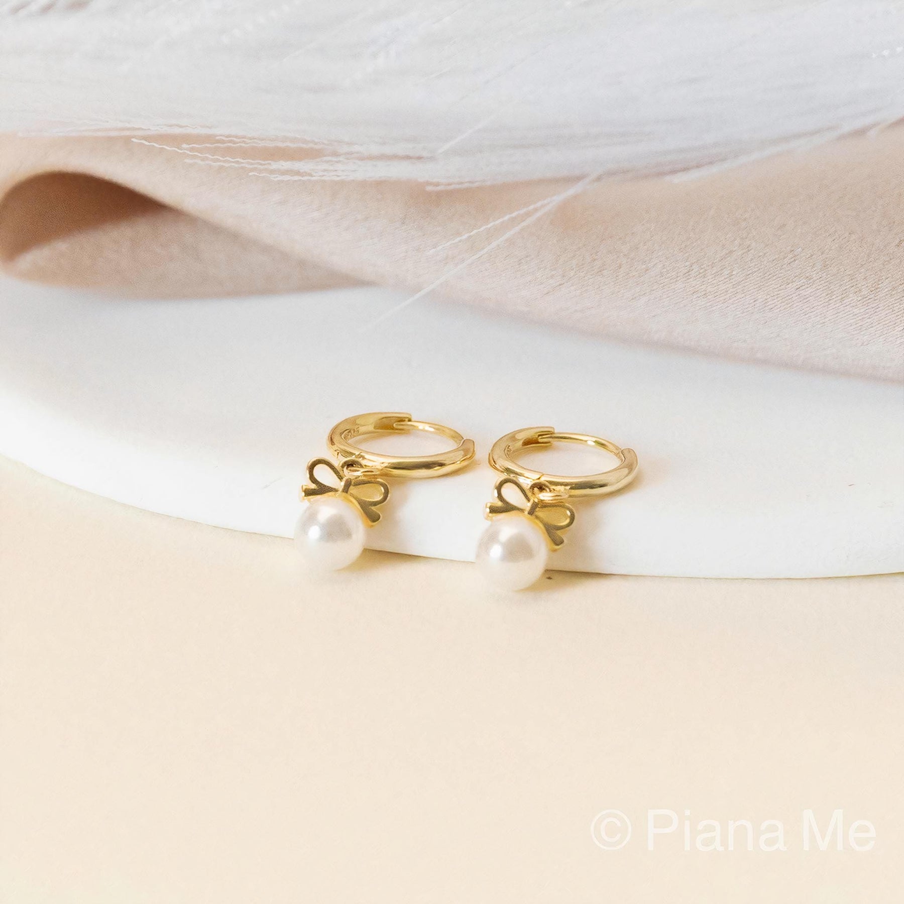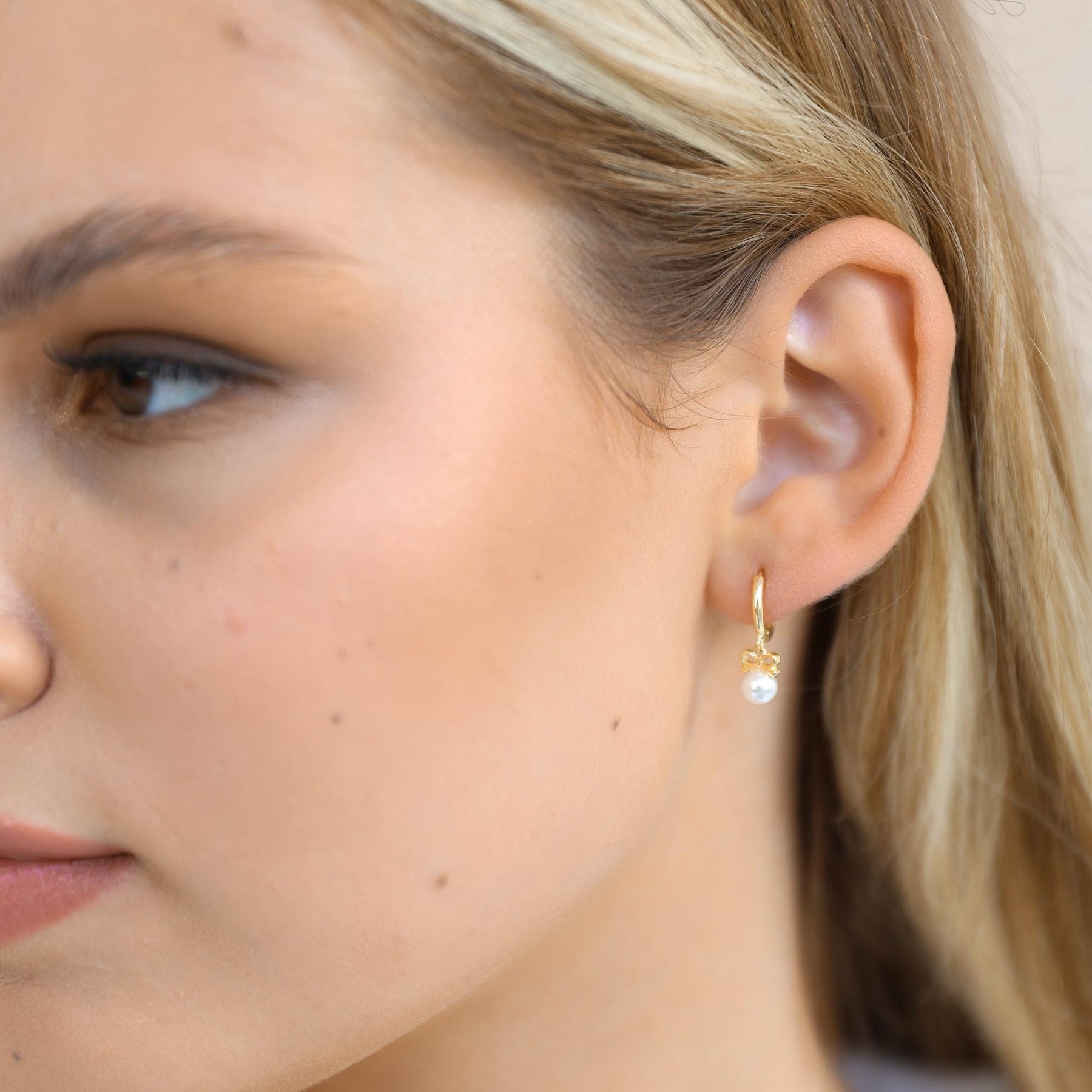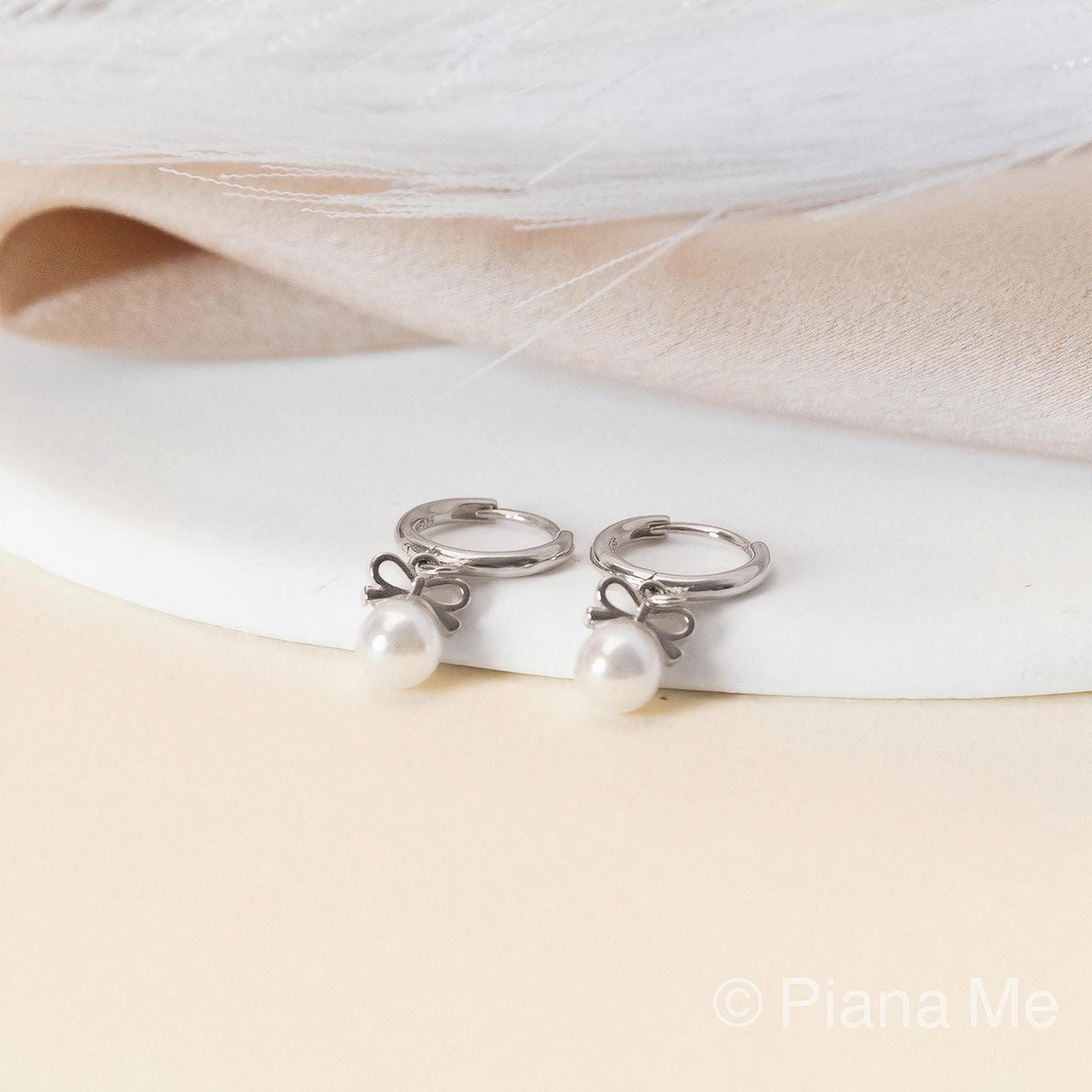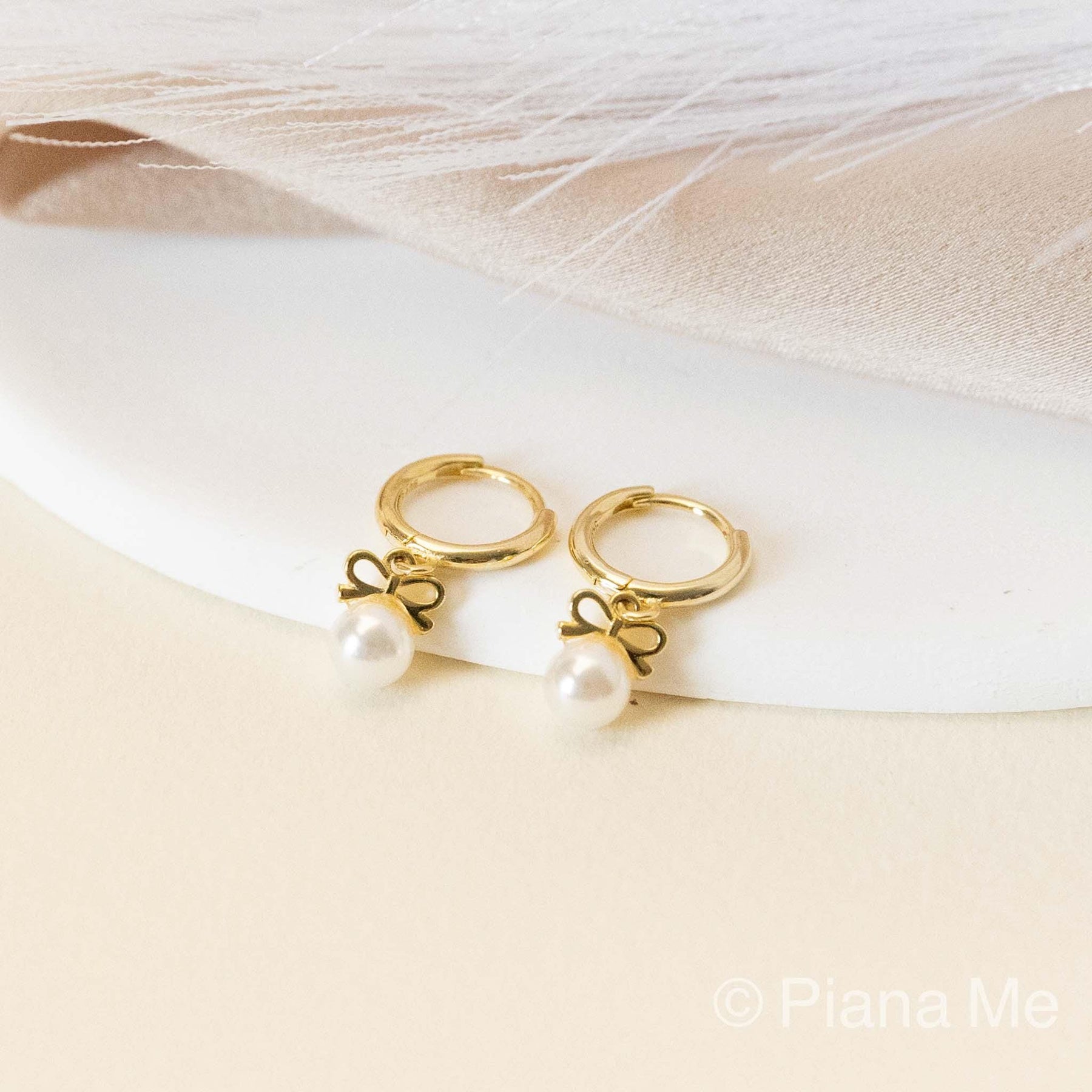 Bow Pearl Hoop Earrings by GracePiana - Grace & Gift
