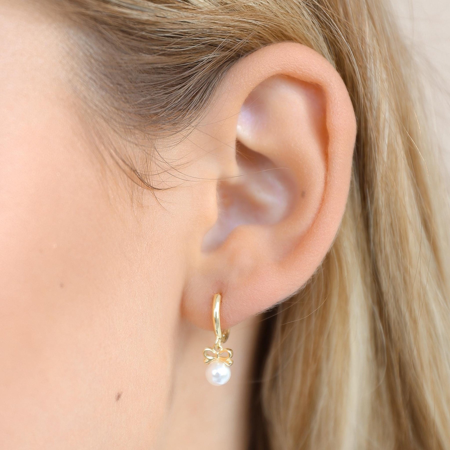These Bow Pearl Hoop Earrings bring a touch of elegance and femininity to any look. Made from premium 925 sterling silver and finished with a high-shine gold plating, each hoop features a delicate bow charm paired with a lustrous freshwater pearl.