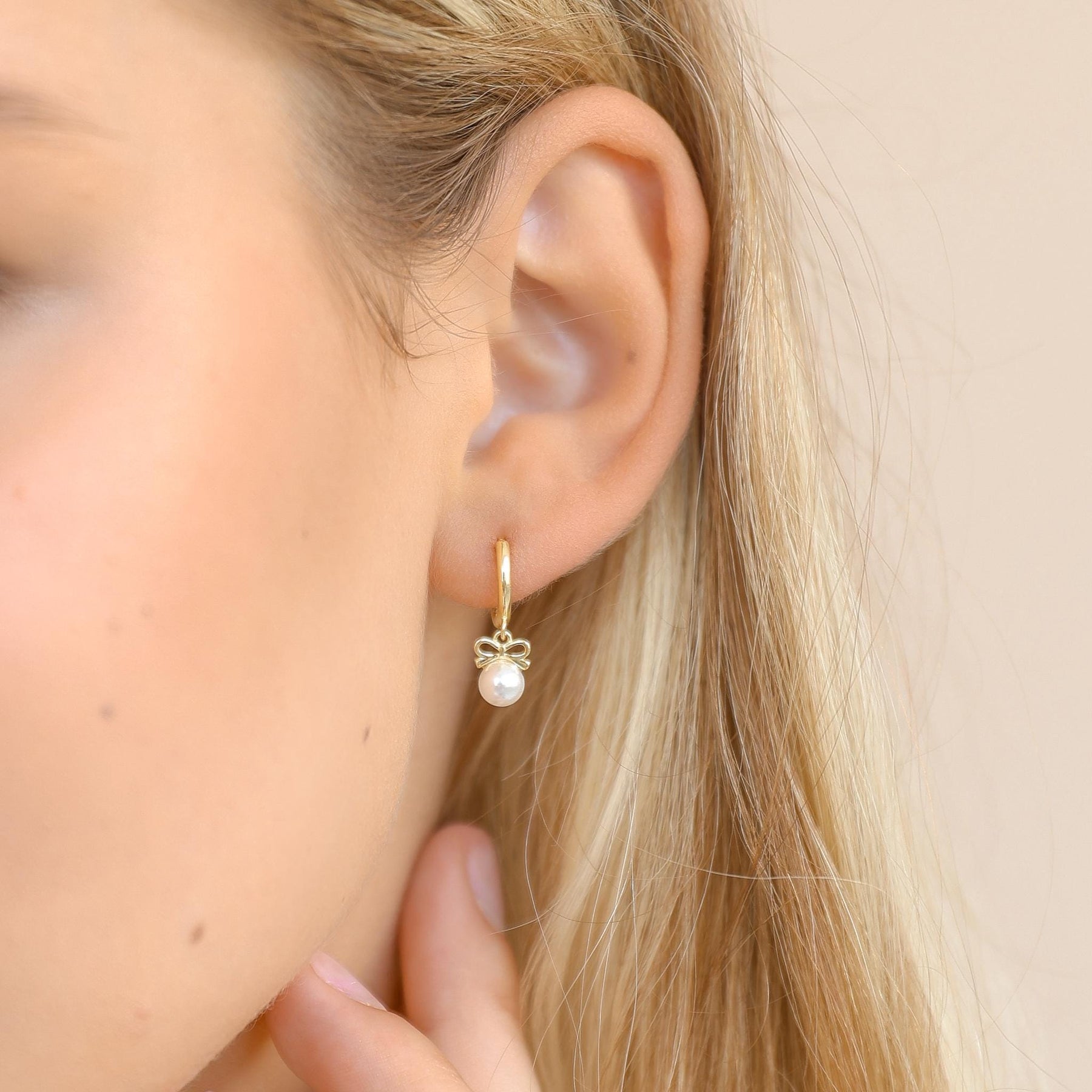 Bow Pearl Hoop Earrings by GracePiana