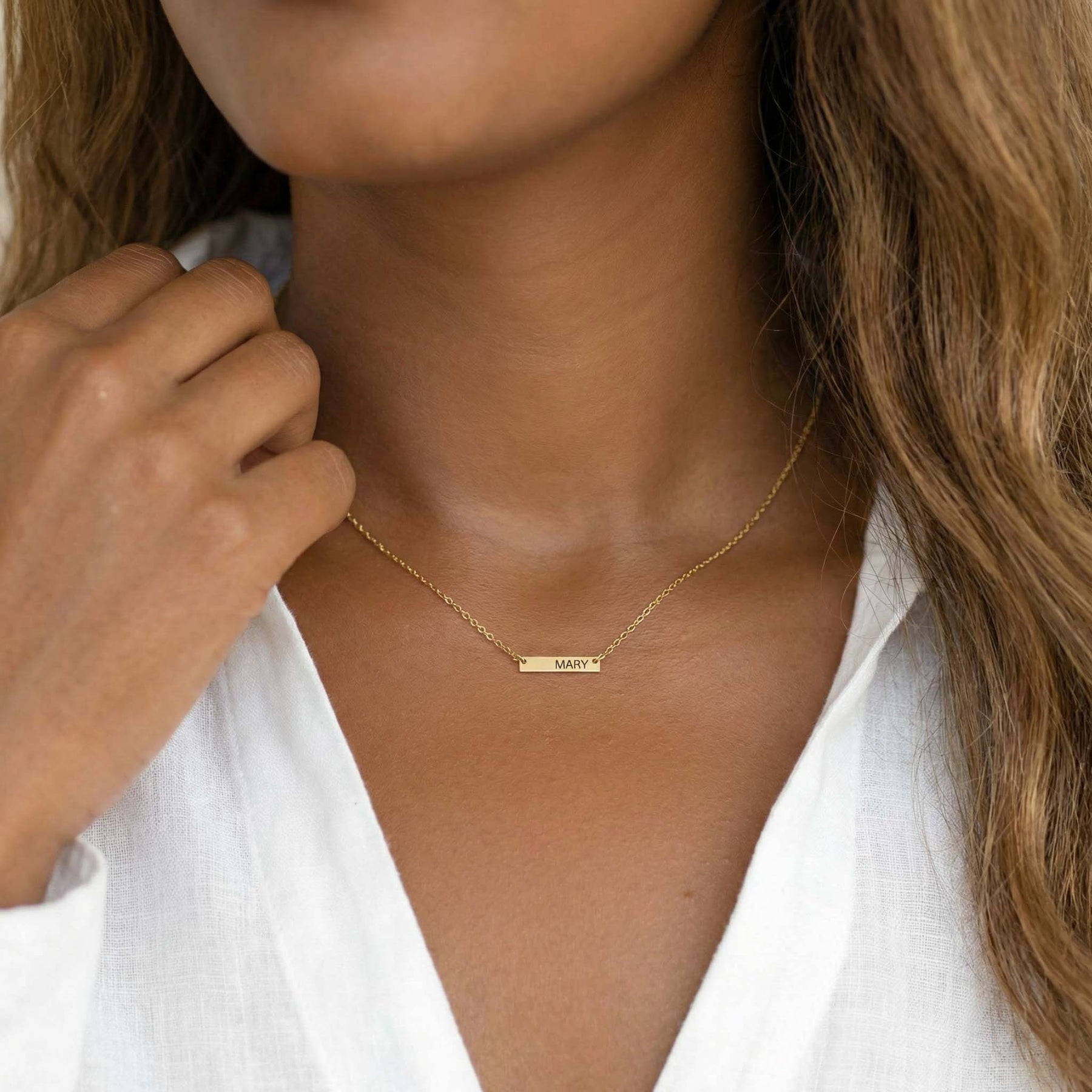 Our Dainty Bar Necklace looks and feels luxurious on, and personalized with the name or phrase of your choice, it’s the perfect way to express yourself! A go-everywhere accessory that makes the most of the popular horizontal bar design.
