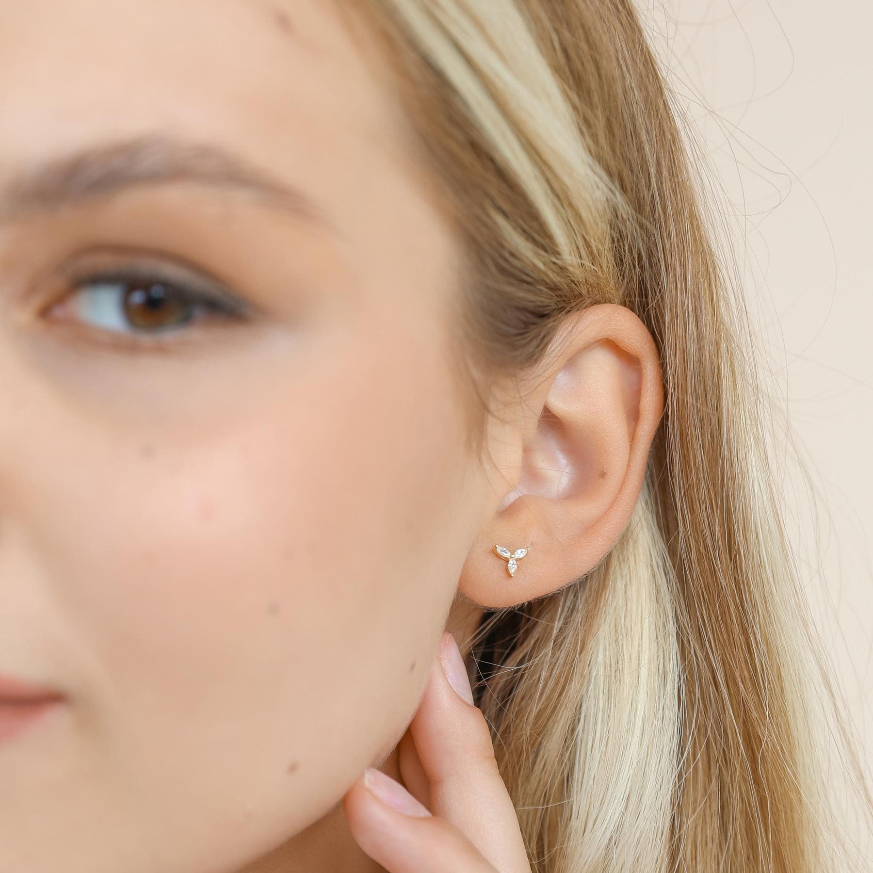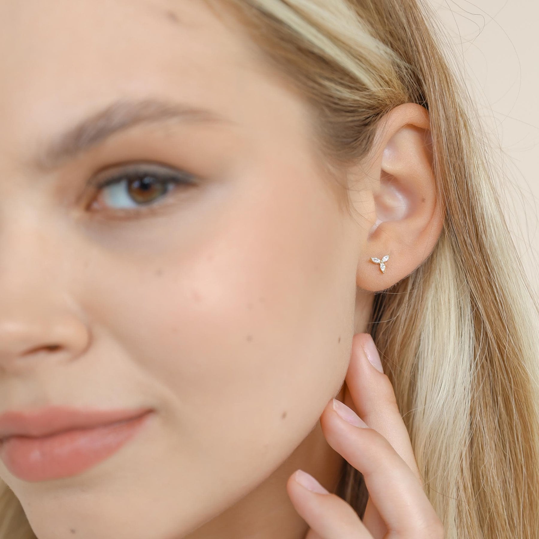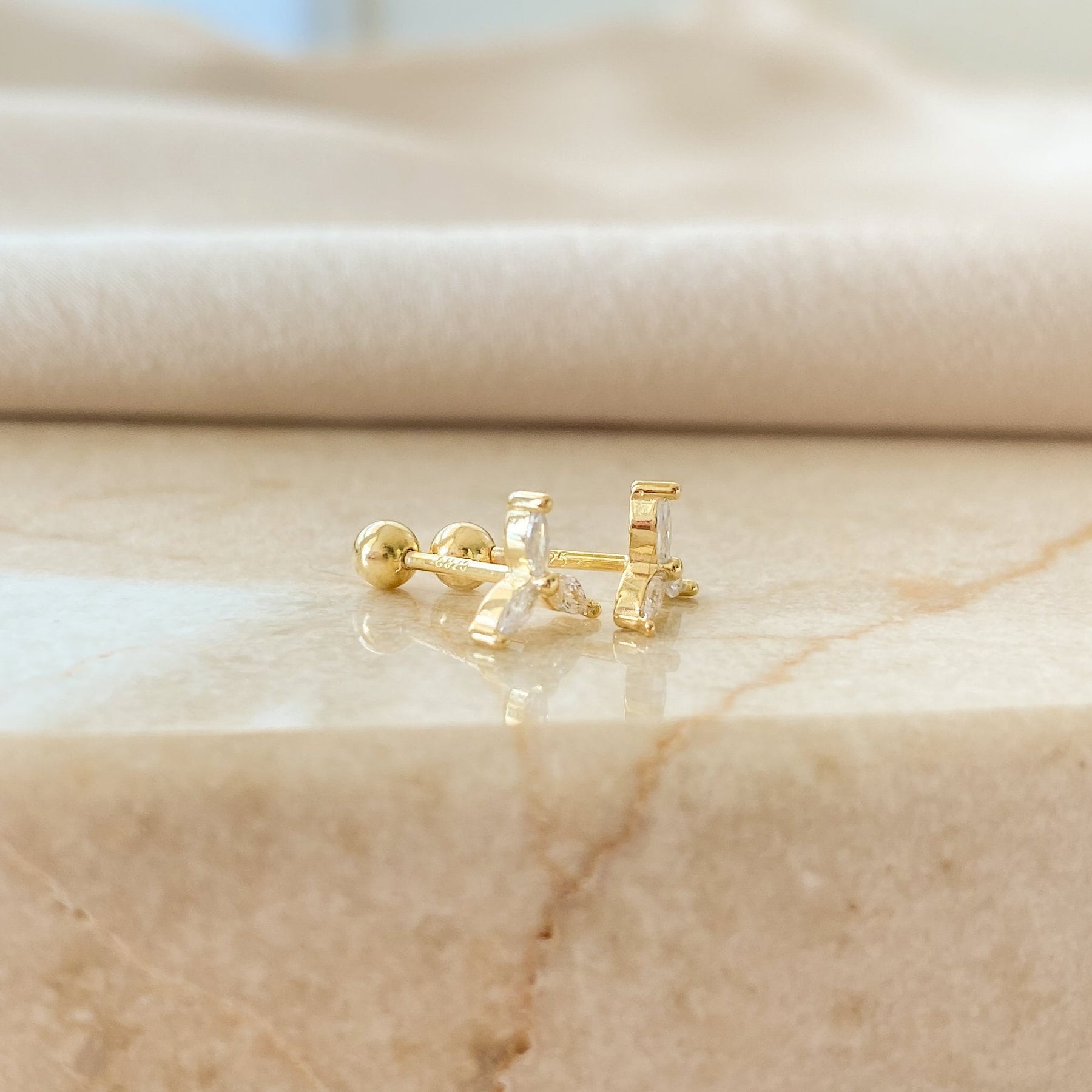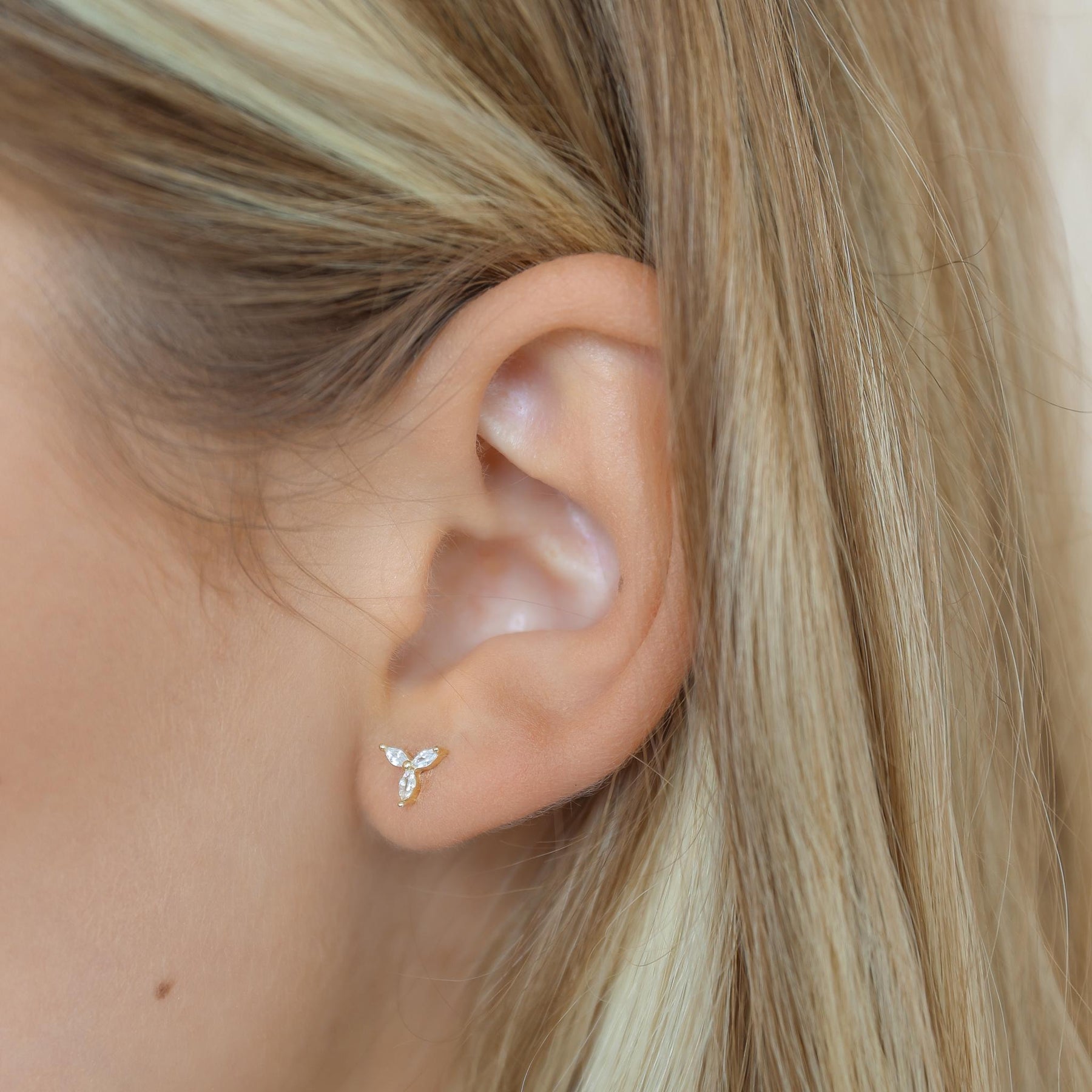 These Dainty Flower Earrings With Diamonds offer a delicate, feminine sparkle perfect for everyday elegance. Crafted from premium 925 sterling silver, each stud features three marquise-cut cubic zirconia stones arranged in a refined floral shape, creating a radiant and polished look.