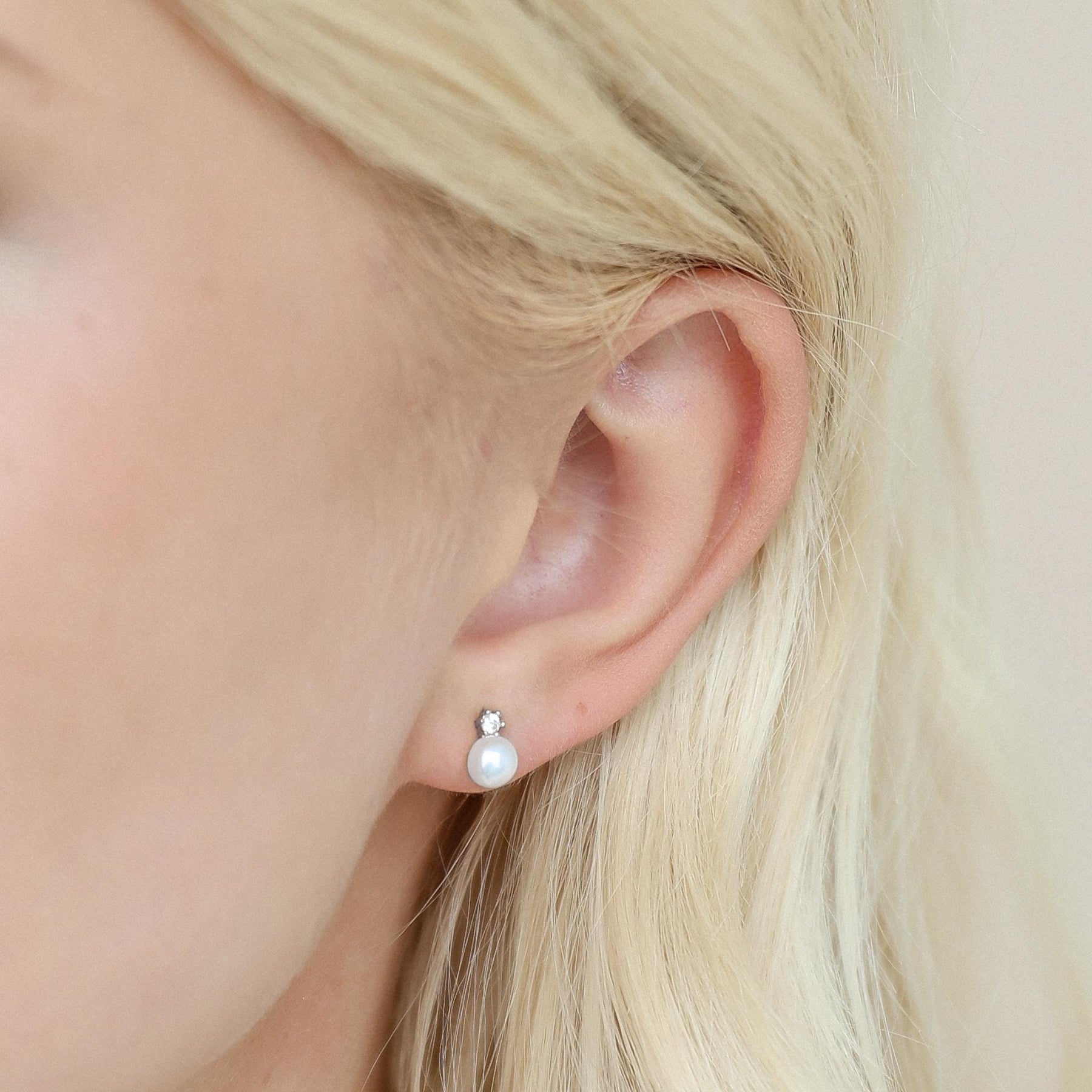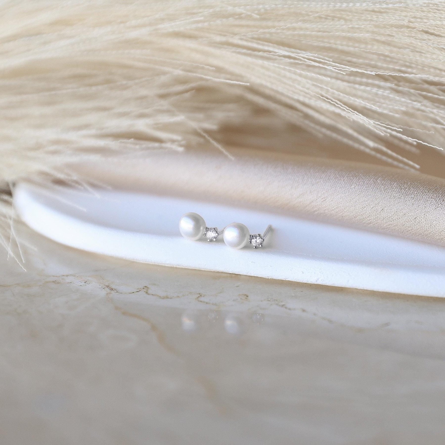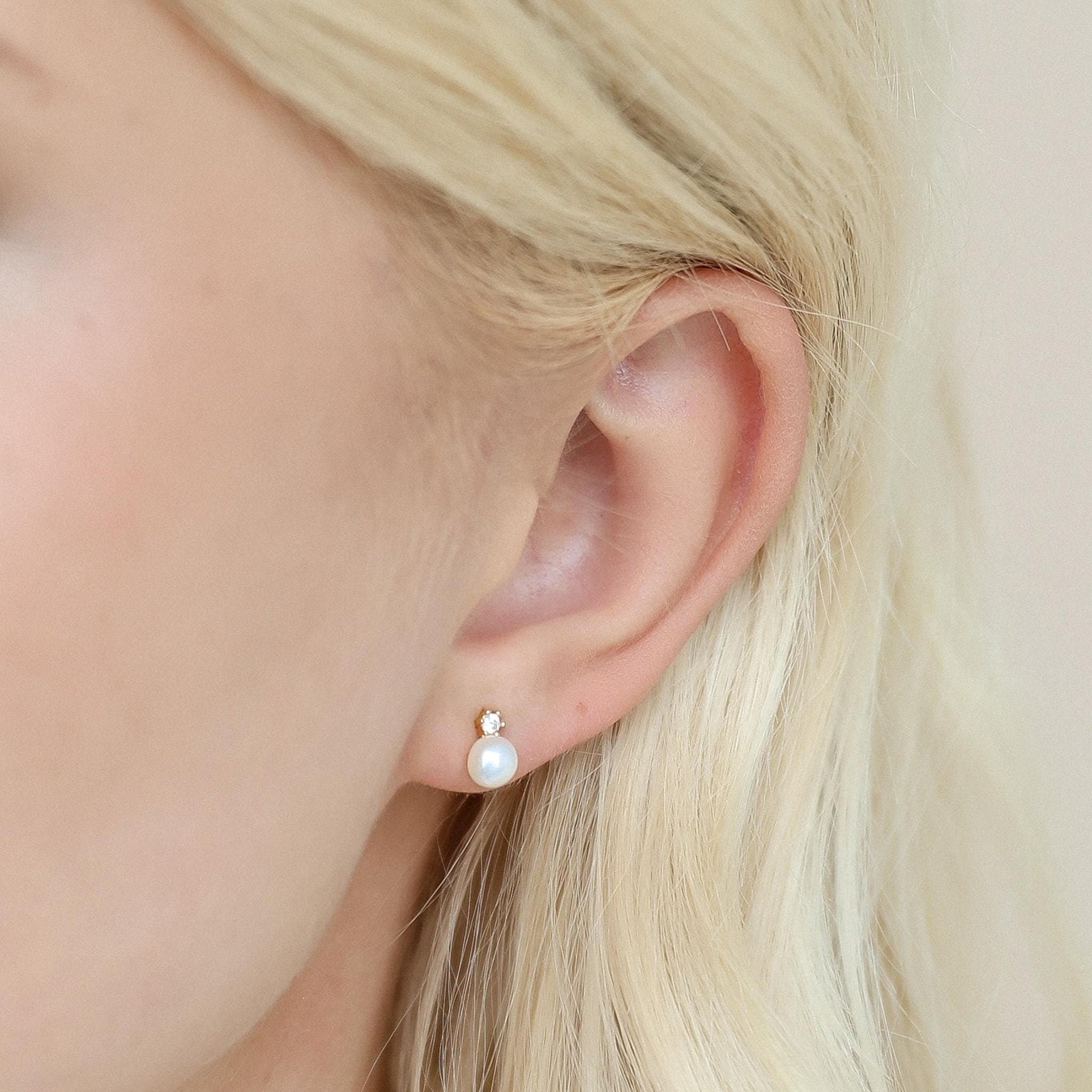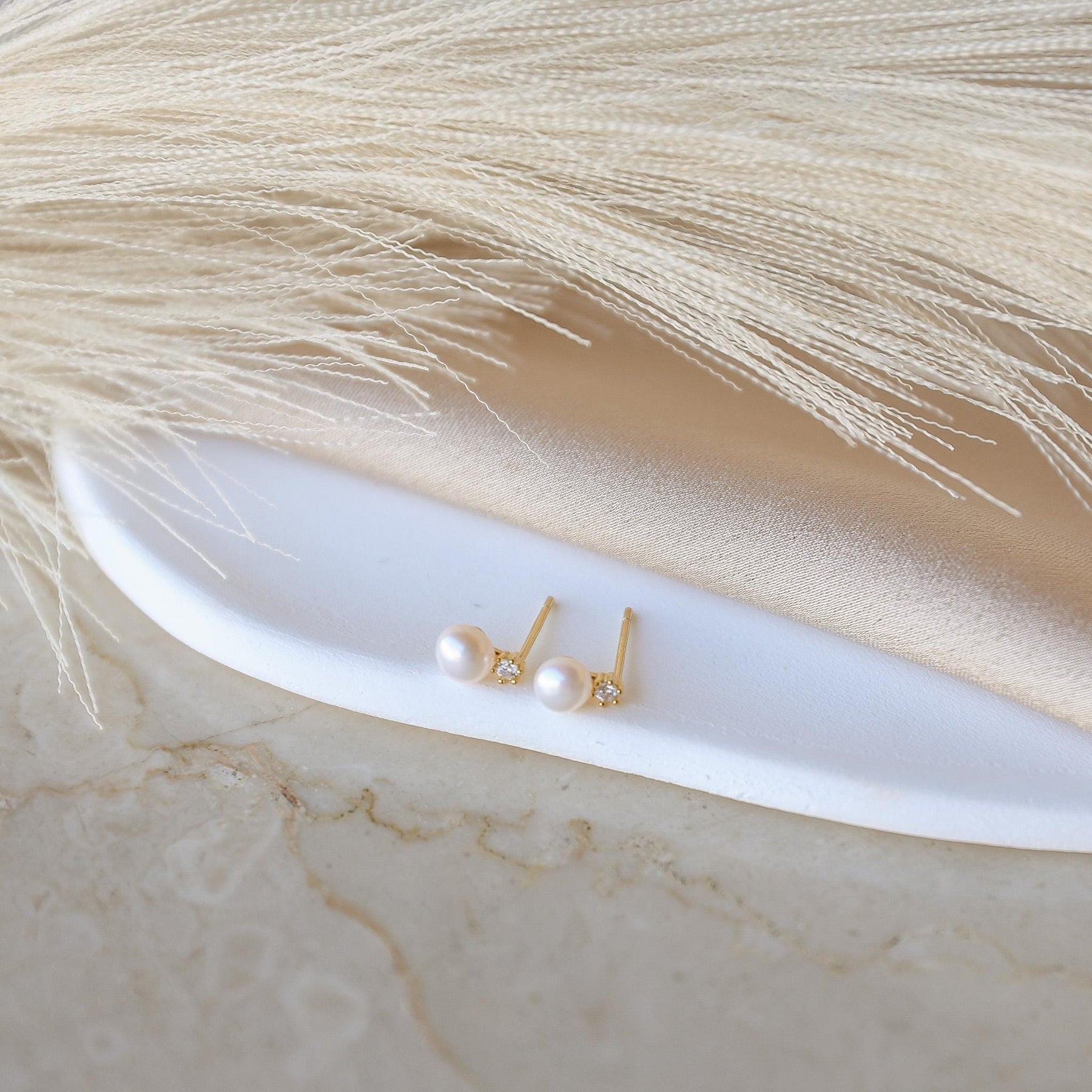 These Diamond Pearl Drop Earrings combine timeless elegance with modern minimalism. Crafted from 925 sterling silver and luxuriously gold-plated, each earring features a sparkling cubic zirconia stone paired with a lustrous freshwater pearl that gently dangles below.
