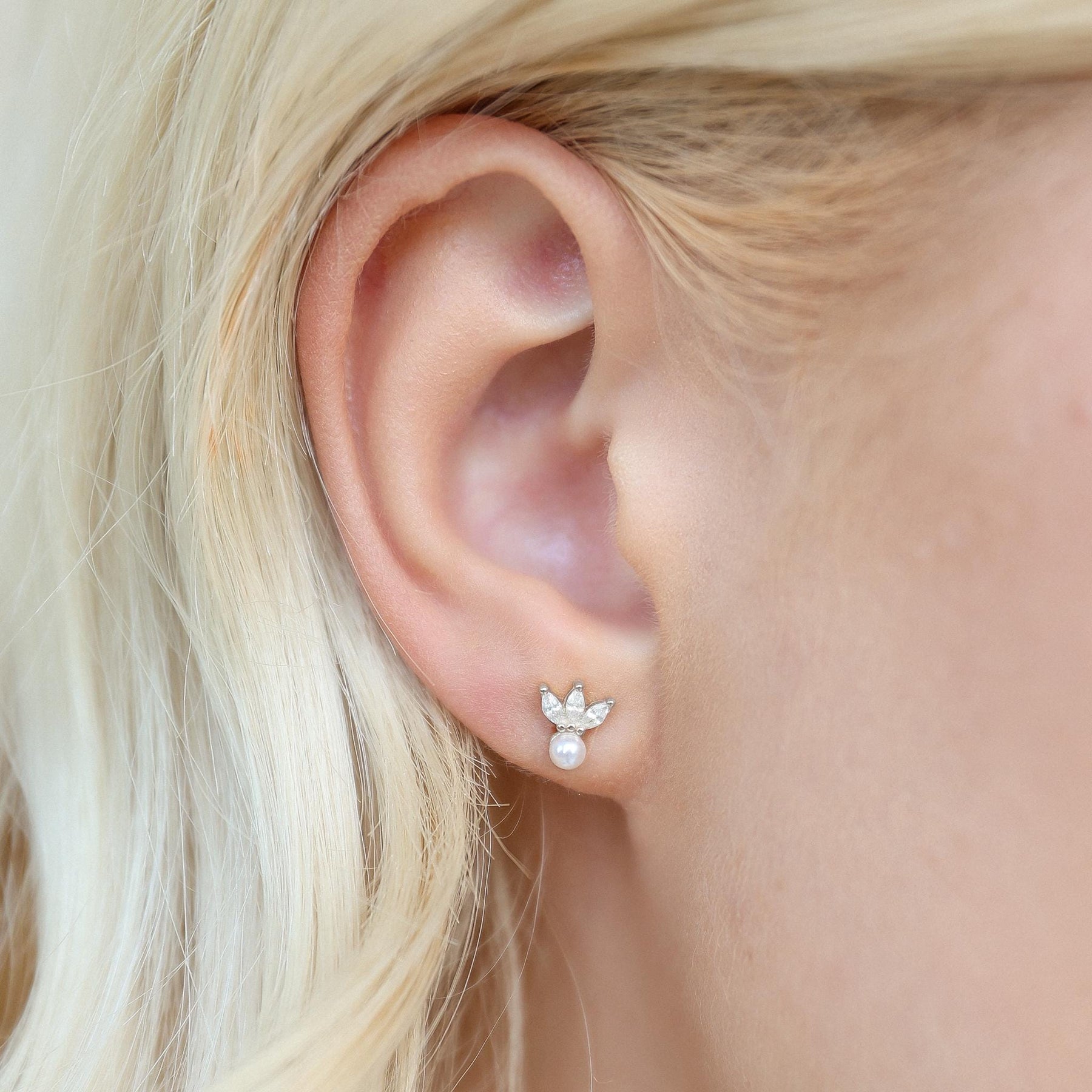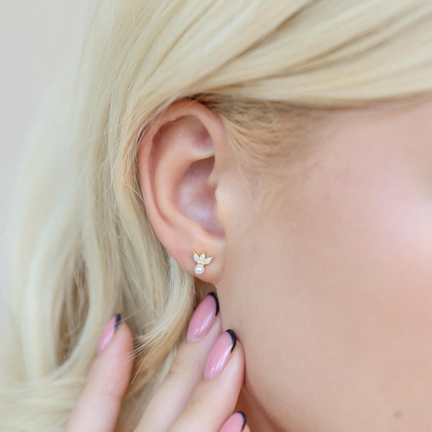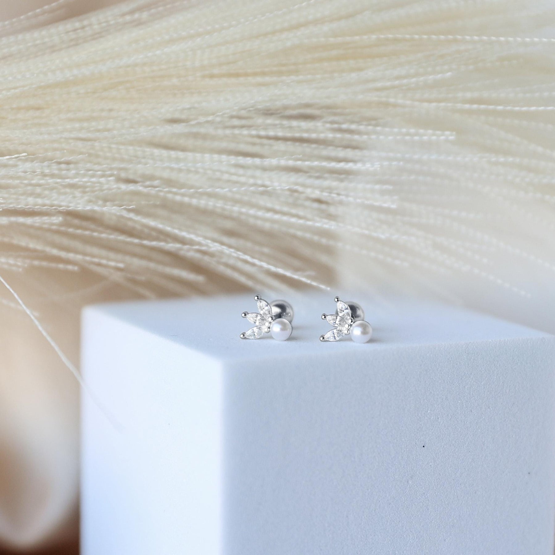 Add a touch of elegance to your everyday look with these Pearl and Crystal Stud Earrings, beautifully crafted from high-quality 925 sterling silver. Each earring features a lustrous freshwater pearl paired with sparkling crystal stones arranged in a delicate floral design, creating a timeless and feminine accessory.